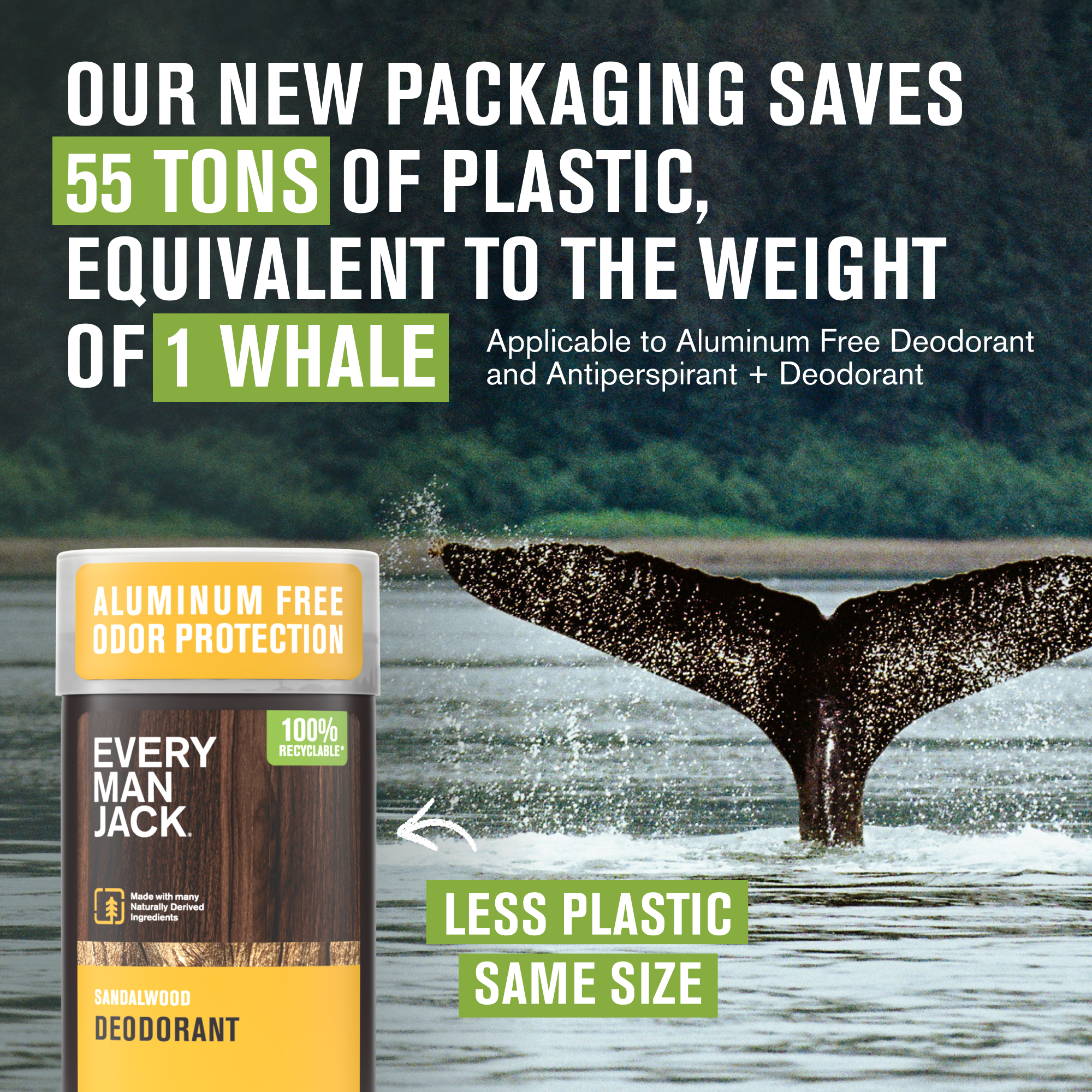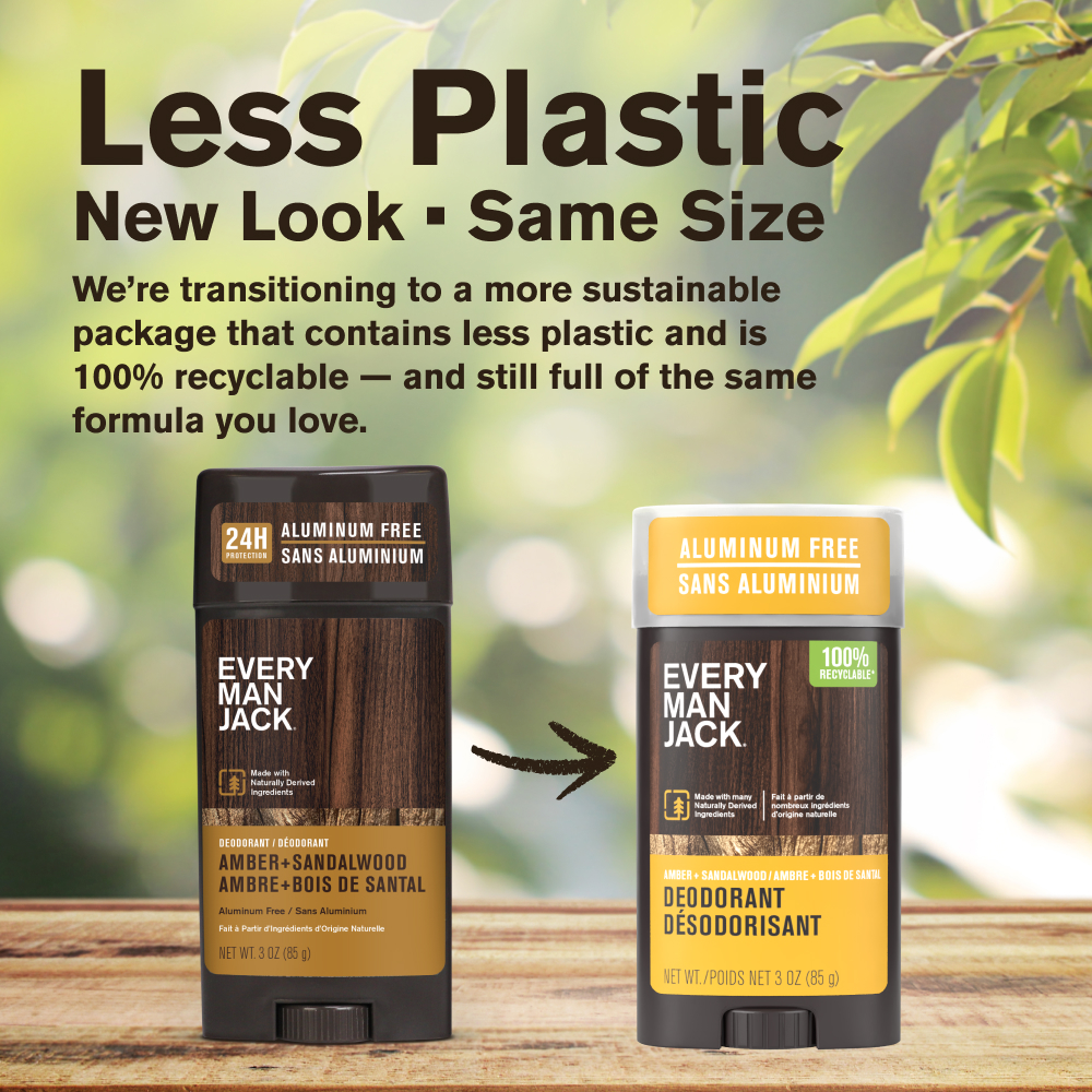 Every Man Jack Amber + Sandalwood Men’s Deodorant - Stay Fresh with Aluminum Free Deodorant For all Skin Types - Odor Crushing, Long Lasting, with Naturally Derived Ingredients - 3oz (3-Pack)