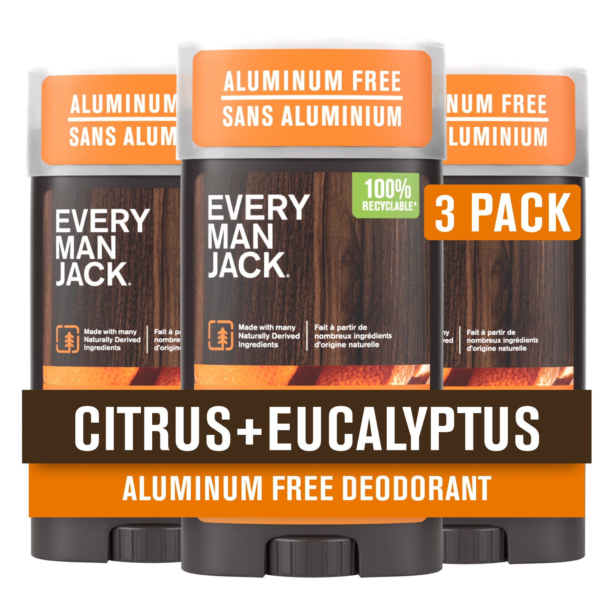 Every Man Jack Citrus + Eucalyptus Men’s Deodorant - Stay Fresh with Aluminum Free Deodorant For all Skin Types - Odor Crushing, Long Lasting, with Naturally Derived Ingredients - 3oz (3-Pack)
