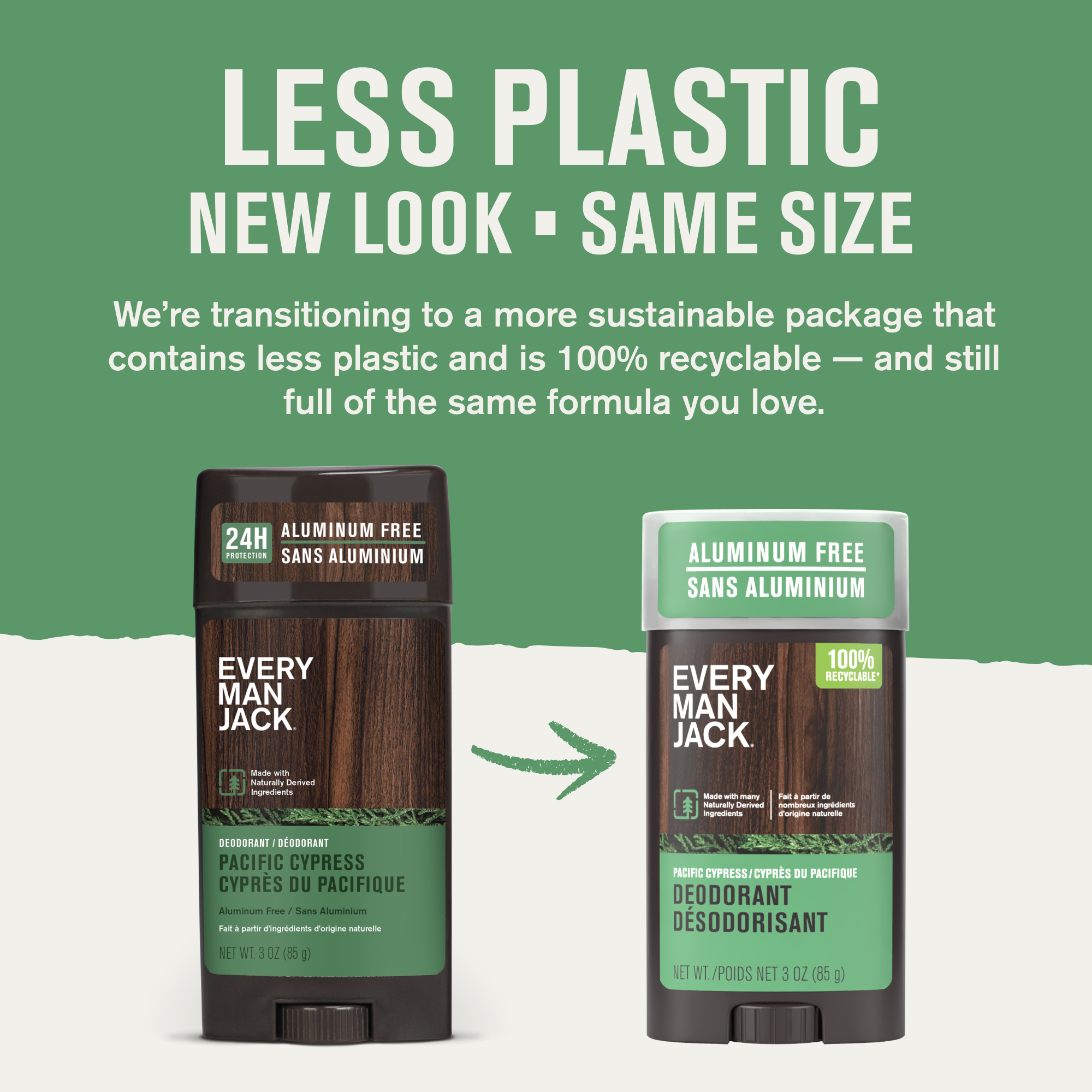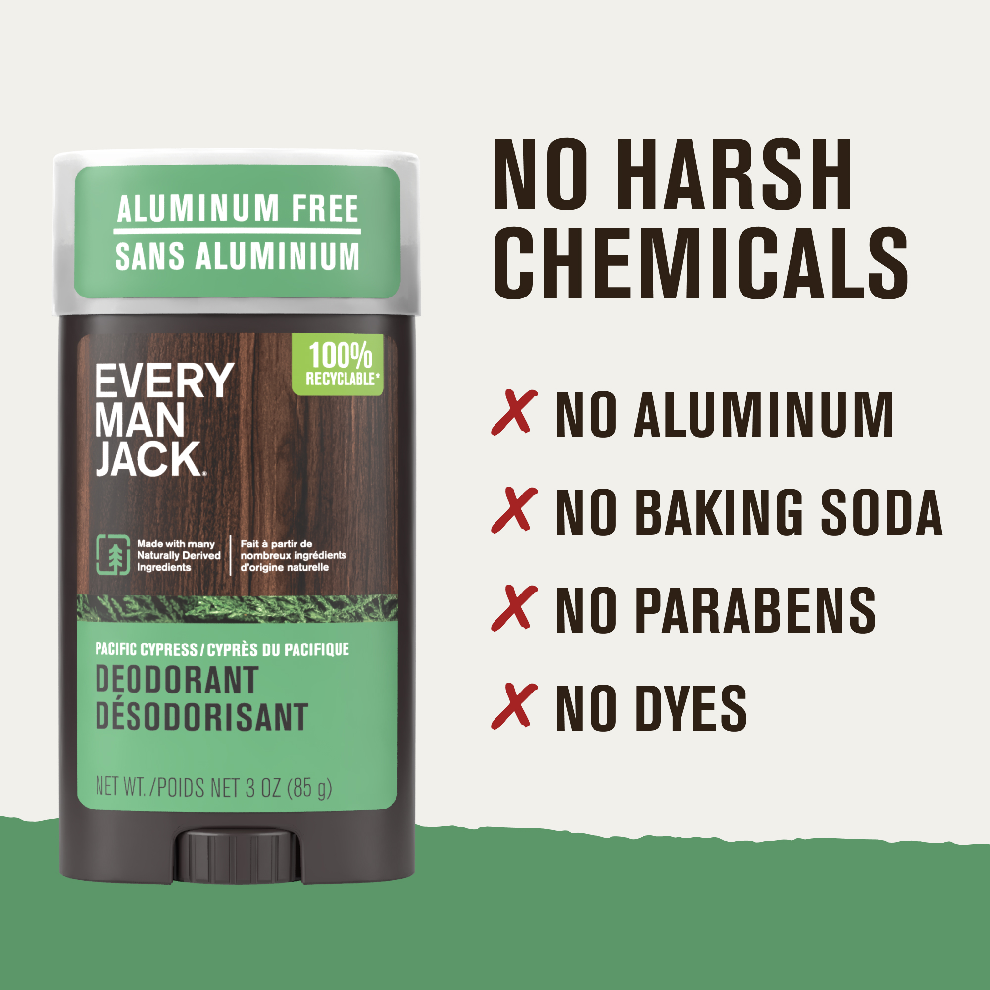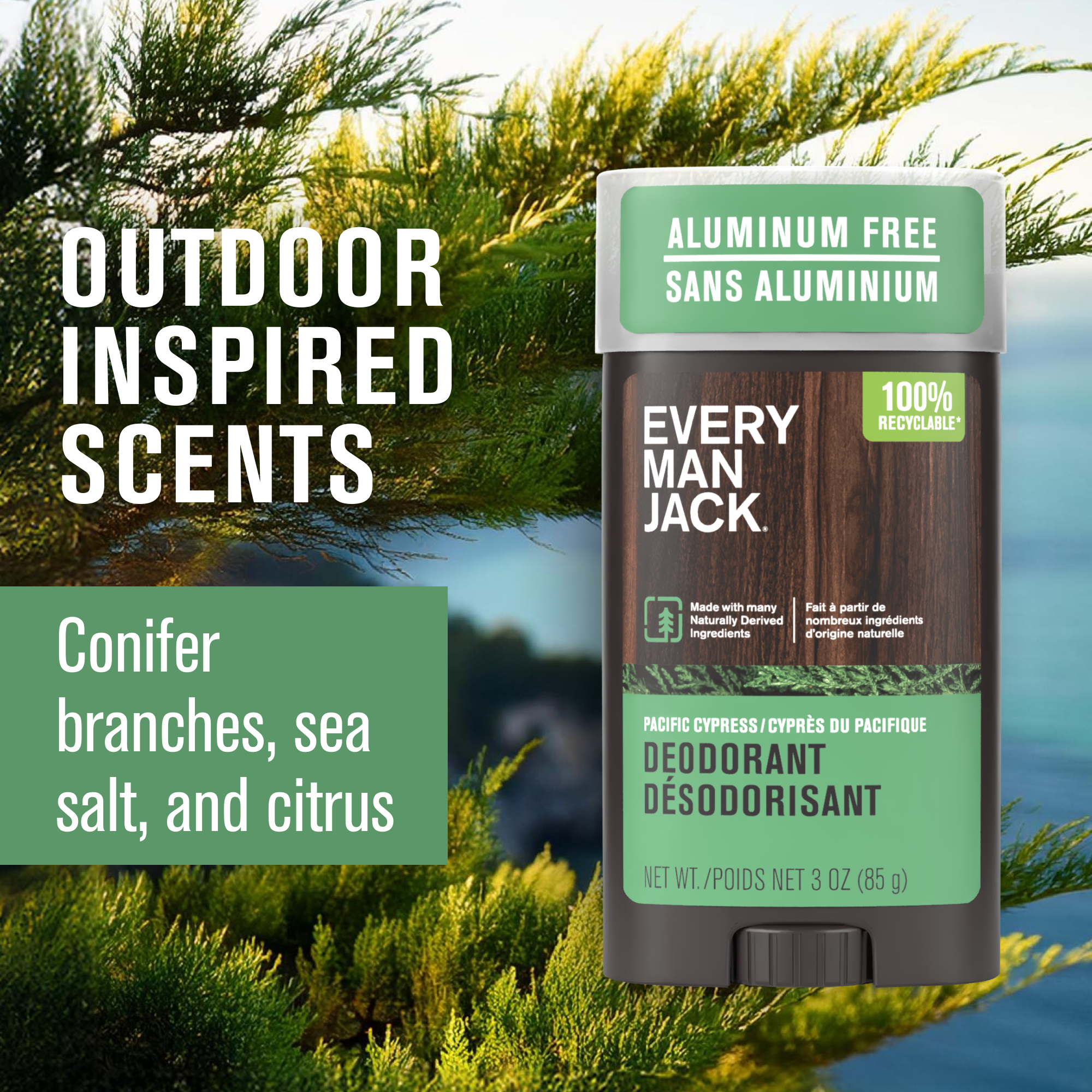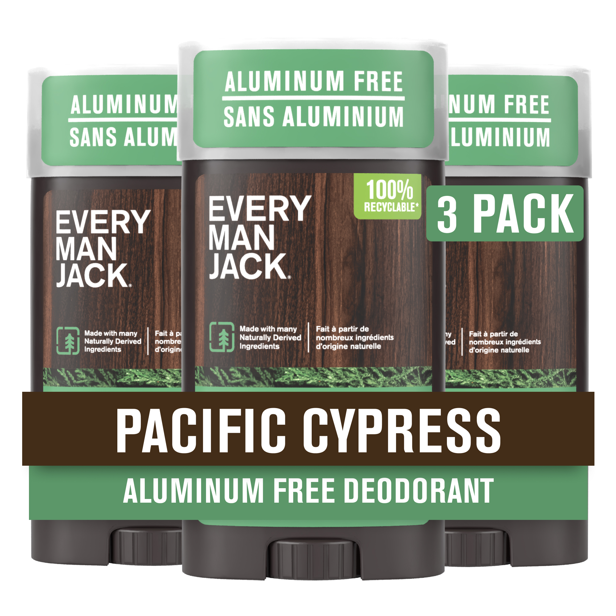 Every Man Jack Pacific Cypress Men’s Deodorant - Stay Fresh with Aluminum Free Deodorant For all Skin Types - Odor Crushing, Long Lasting, with Naturally Derived Ingredients - 3oz (3-Pack)