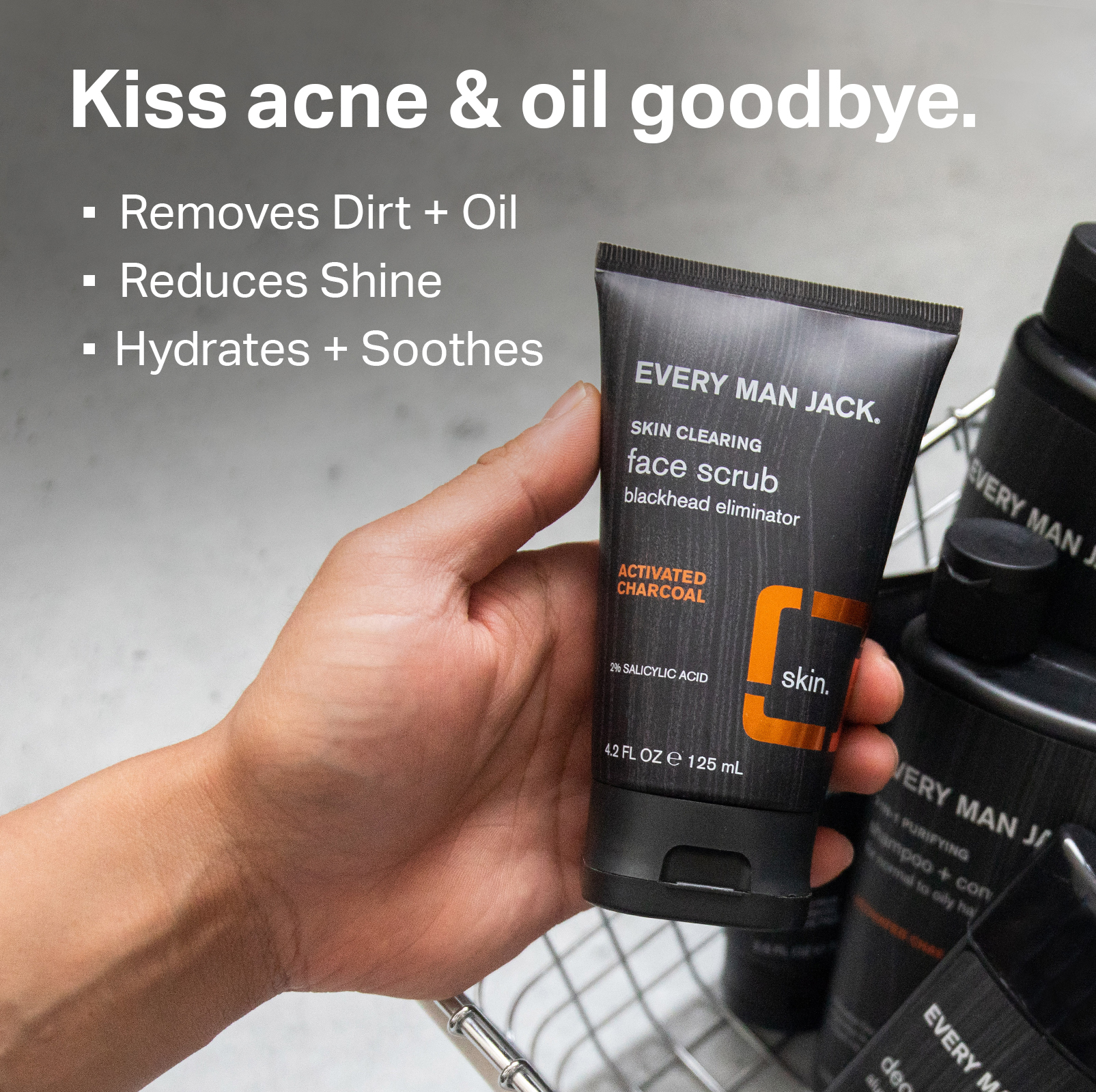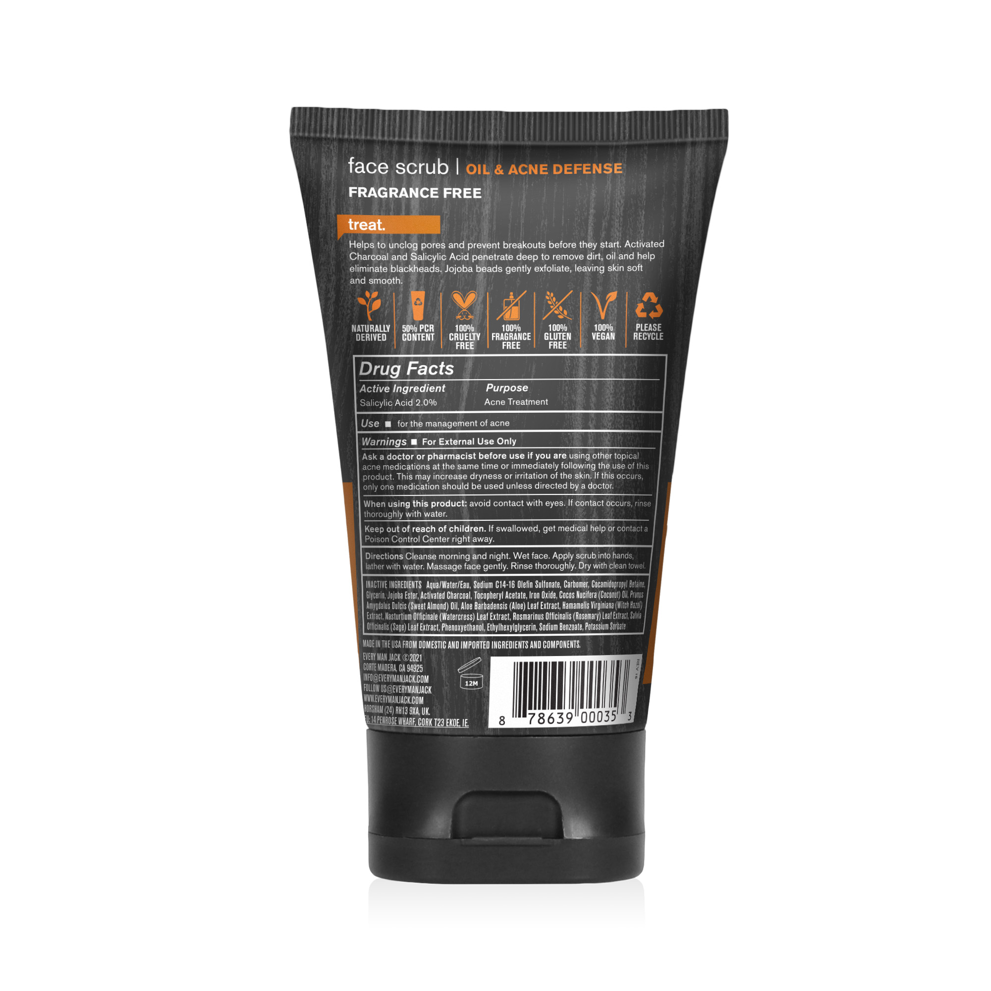 | Product Description | Struggling with oily or acne-prone skin? Bring the purifying power of activated charcoal to your routine with the Every Man Jack Activated Charcoal Face Scrub for Men. Formulated with star ingredient, Activated Charcoal, this exfoliating face scrub is designed to treat common skin concerns like acne-prone or oily skin. Activated Charcoal is a naturally derived powerhouse that acts as a mattifying magnet, deeply penetrating pores to pull out dirt, oil, and impurities from the skin. Let AC work its magic while Salicylic Acid helps eliminate blackheads and natural Jojoba Beads gently exfoliate the skin to uncover a smooth, soft layer that feels fresh and clean. Our men’s facial scrub is the perfect addition to your daily routine pre-shave or shower. Plus, our fragrance-free formulation is great for guys with sensitive skin. Use on wet skin morning and night, and your face is sure to feel soft, smooth, and shine-free. |