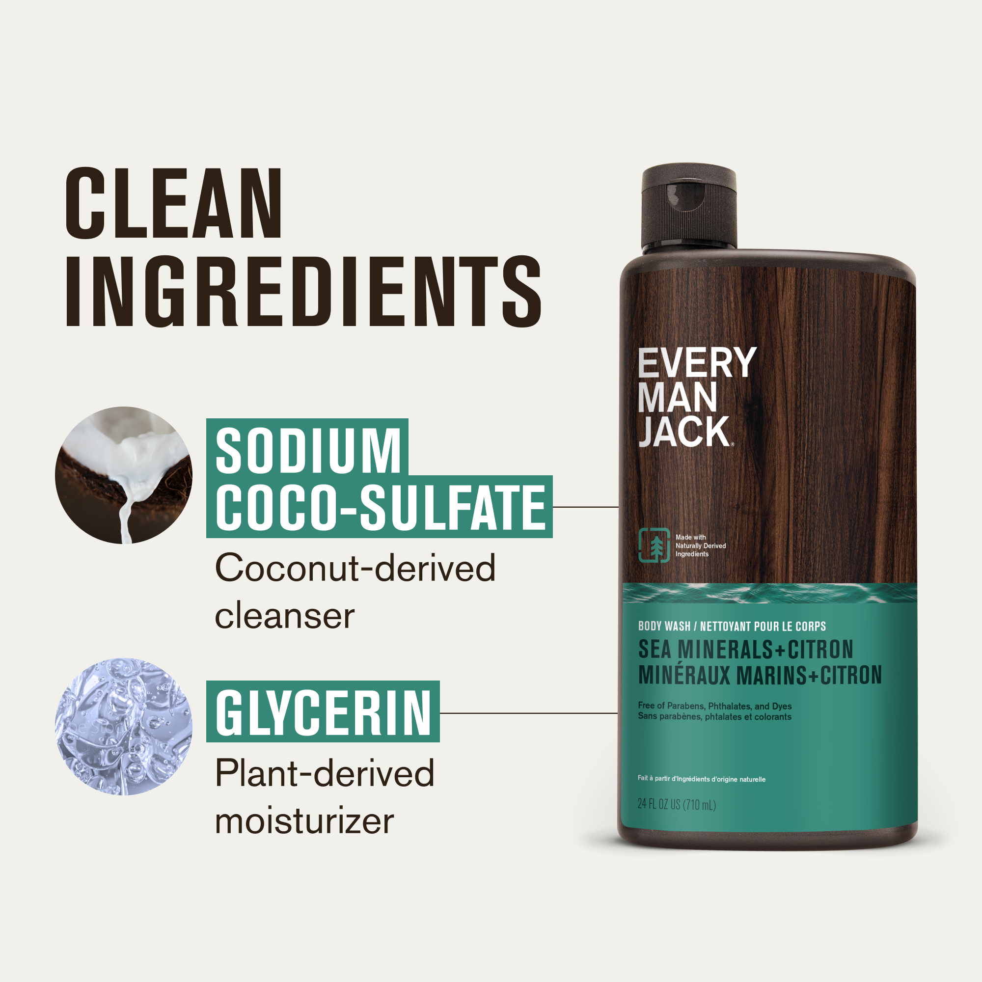 | Amazon CA Title | Every Man Jack Nourishing Sea Minerals + Citron Mens Body Wash for All Skin Types - Naturally Derived Ingredients - Cleanse and Hydrate Skin with Coconut and Glycerin - 710 mL 2 Bottles |