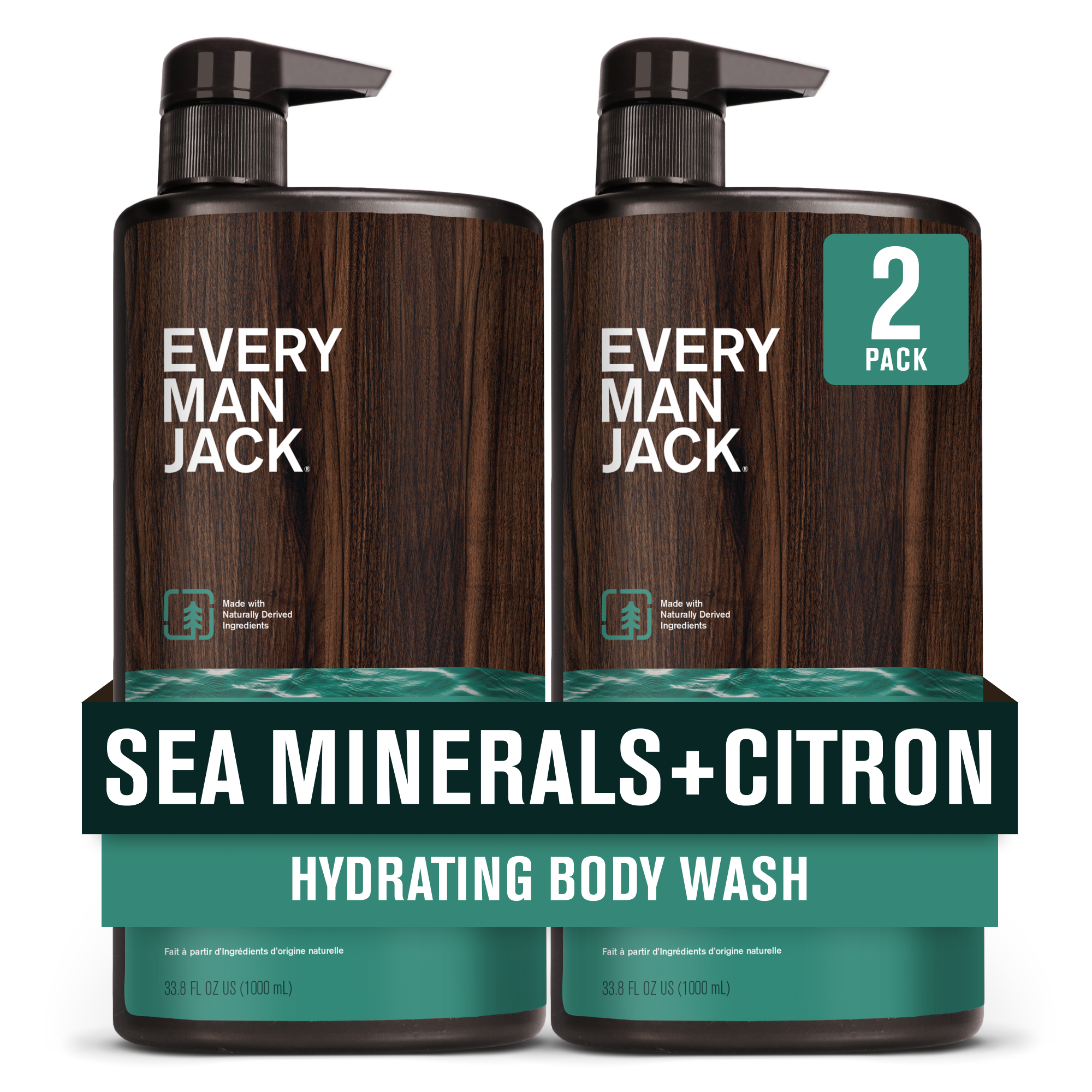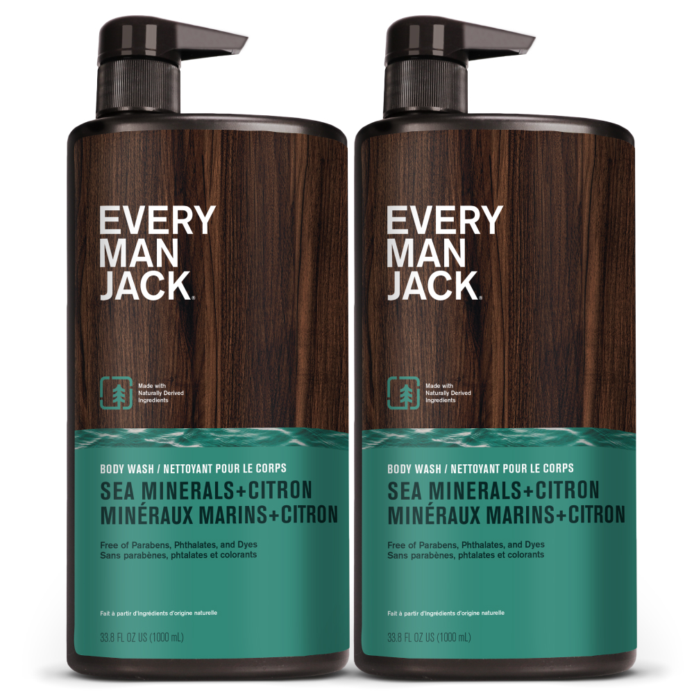 | Amazon CA Title | Every Man Jack Men’s Hydrating Body Wash for All Skin Types - Cleanse and Hydrate Skin with Naturally Derived Marine Extracts, Coconut Oil, and a Sea Minerals + Citron Scent - 1000 mL - 2 Bottles |