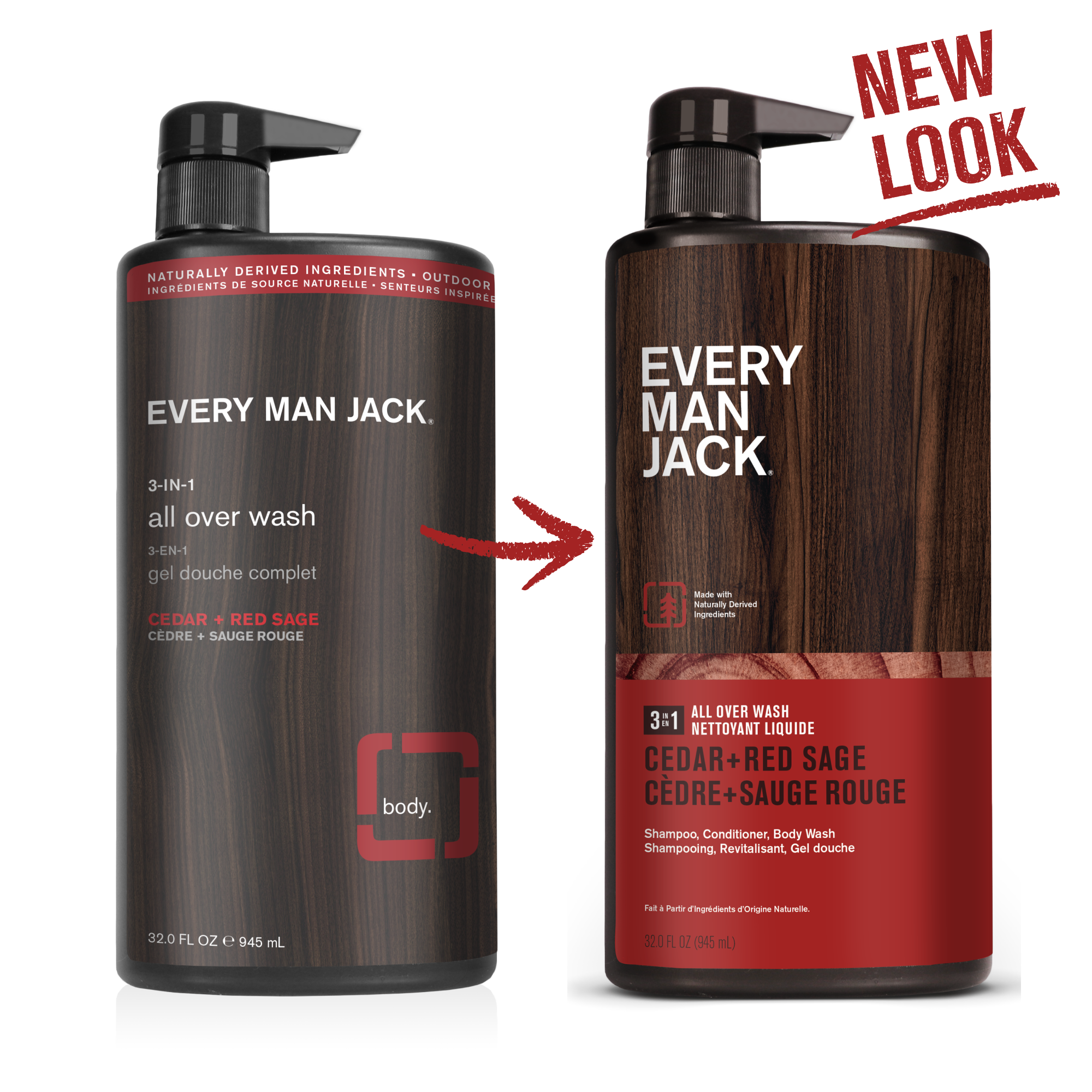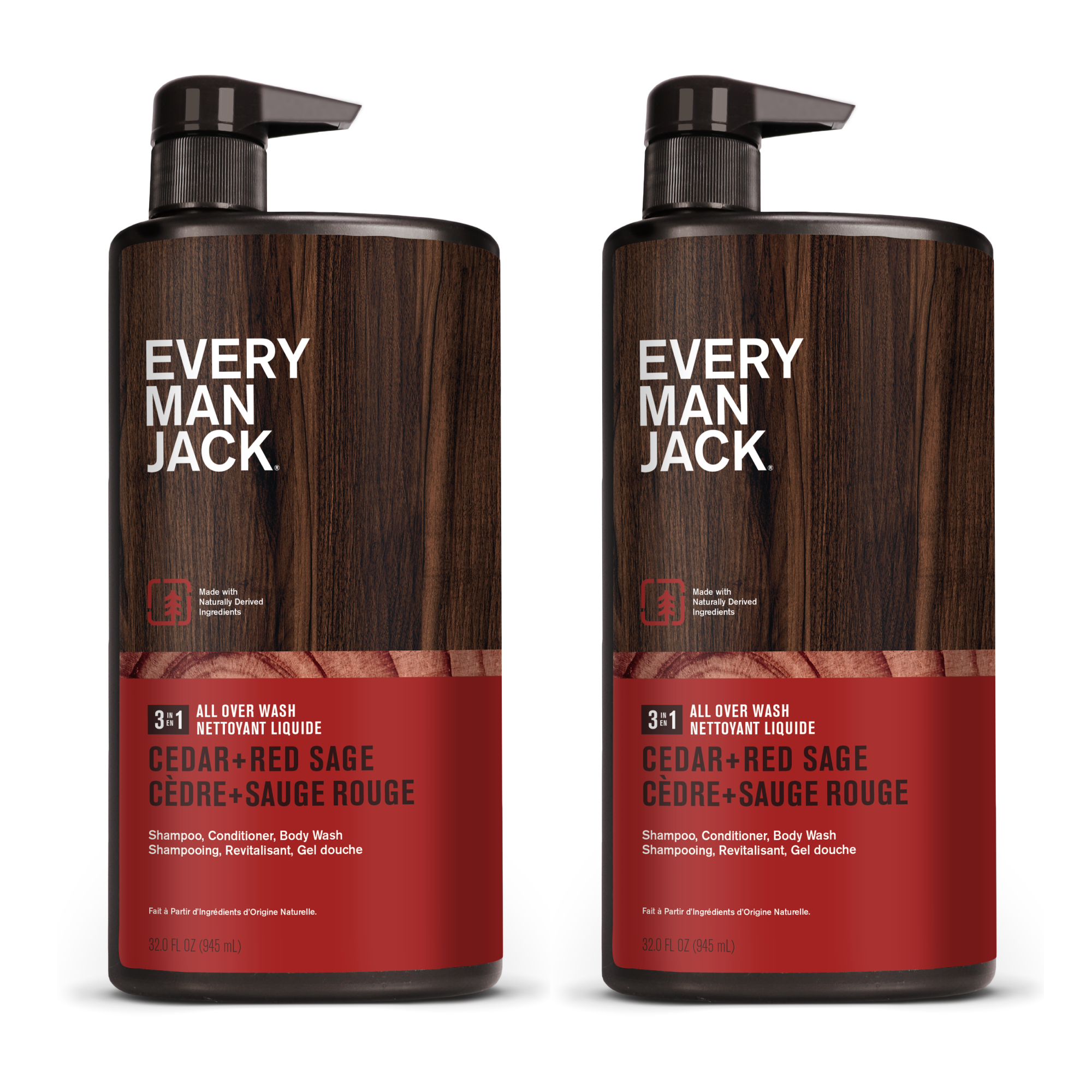 | Amazon CA Title | Every Man Jack Men’s Cleansing 3-in-1 All Over Wash for All Skin and Hair Types - Cleanse and Nourish Skin and Hair with Naturally Derived Soy Proteins, Aloe, and a Cedar + Red Sage Scent - 945 mL - 2 Bottles |