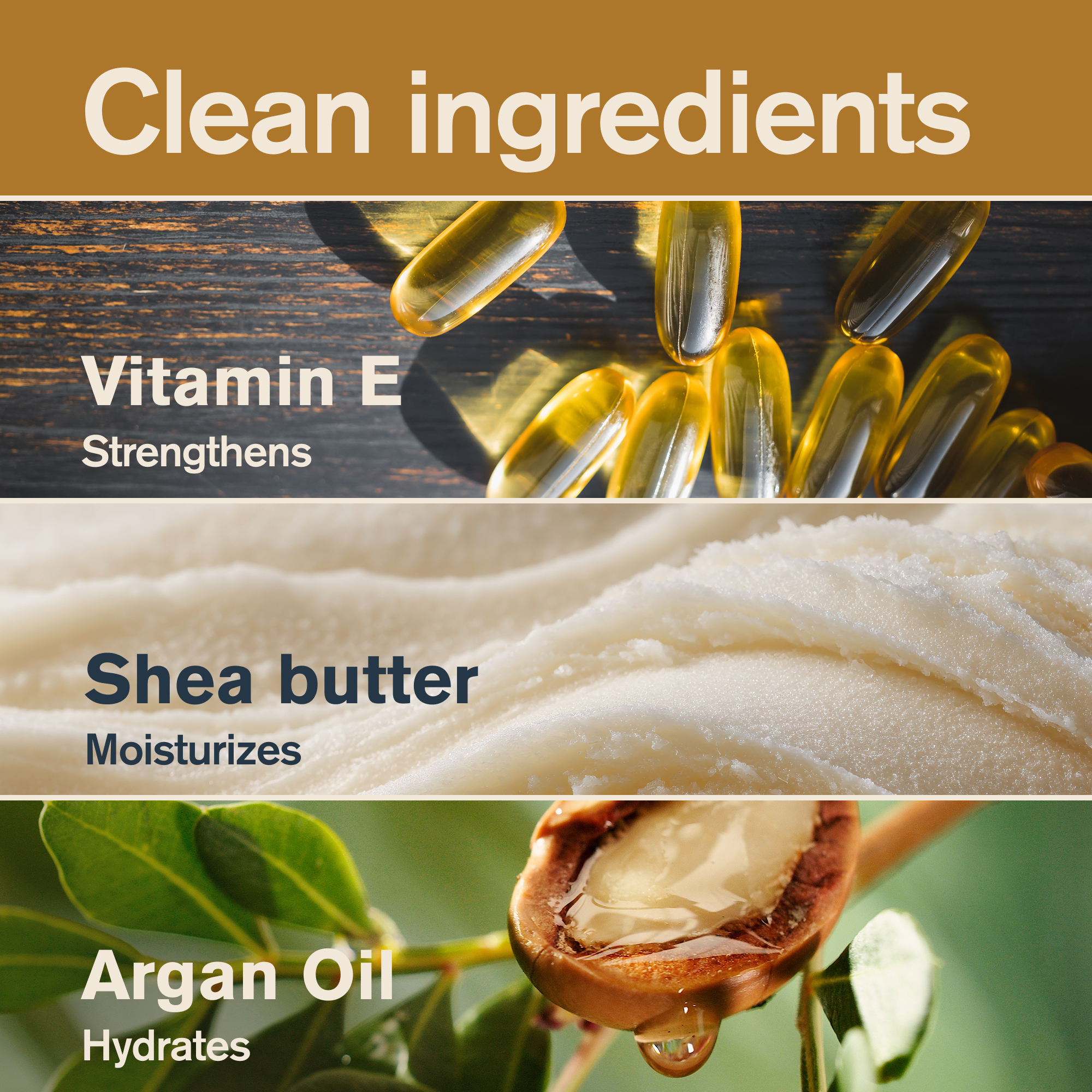 | Bullet Point 3 | NATURALLY DERIVED INGREDIENTS: Rub in our blend of Naturally Derived Vitamin E, Argan, and Borage to soften, nourish, and finish with a healthy shine. |