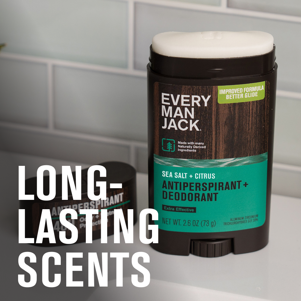 Every Man Jack Men’s Sea Salt + Citrus Antiperspirant Deodorant - Stay Fresh with Antiperspirant Men’s Deodorant - Odor Crushing, Long Lasting, Plant-Based, and No Harsh Chemicals - 2.6 oz