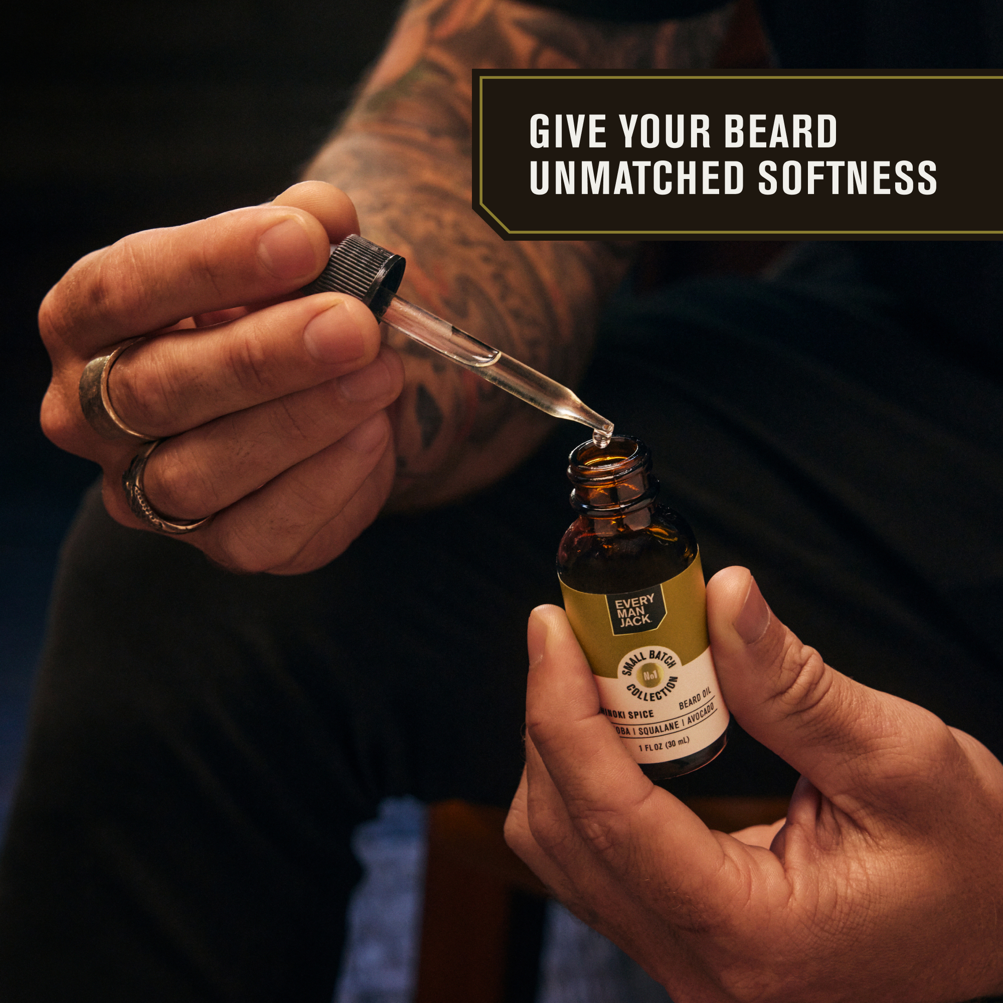 Every Man Jack Small Batch Beard Oil - Hinoki Spice Fragrance - Deeply Moisturizes and Softens Your Beard and Adds a Natural Shine - Naturally Derived with Shea Butter- 1.0-ounce