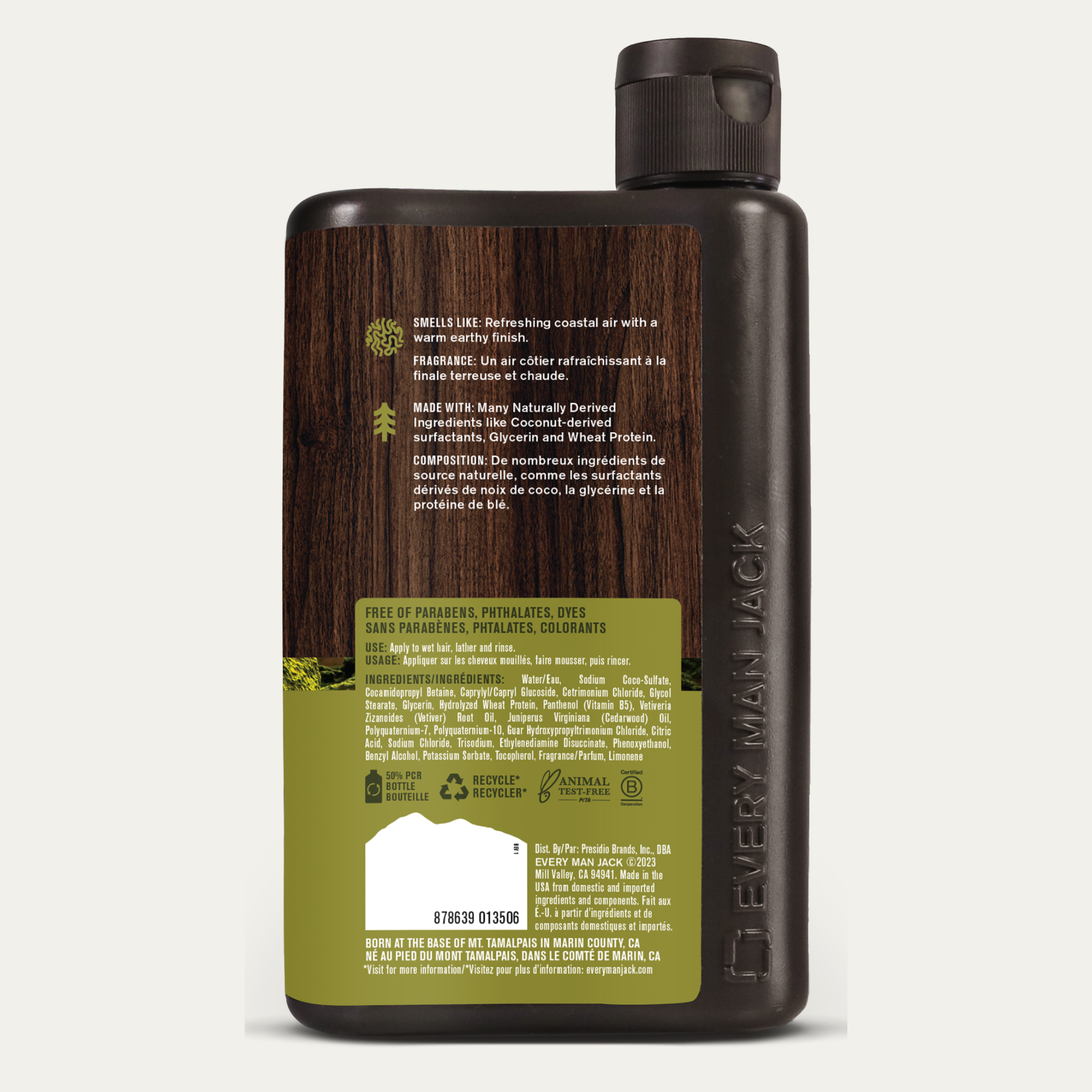 | Product Description | Naturally derived clean and conditioning. Give your hair and scalp a daily refresh with Coconut-Derived Surfactants, moisturizing Glycerin, and strengthening Wheat Protein. We packed all that into one simple product to make your morning routine as simple as possible. Bring the smell of an early morning hike with you wherever you go. Earthy Vetiver dominates this scent with a refreshing coastal Citrus finish. |