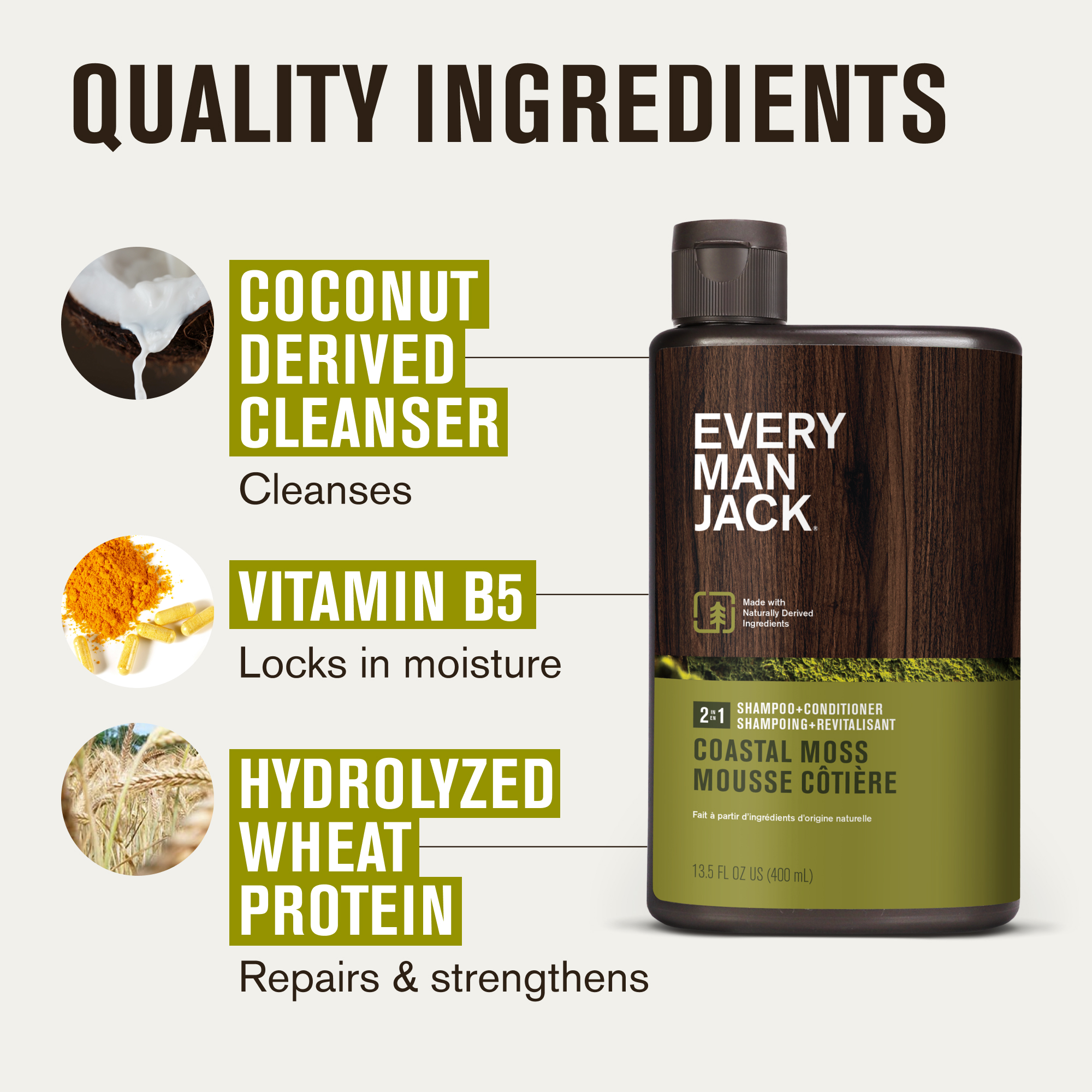 | Name | Every Man Jack 2-in-1 Daily Shampoo + Conditioner - Coastal Moss | Nourishing For All Hair Types, Naturally Derived, Cruelty-Free Shampoo and Conditioner Set for Men - 13.5oz |