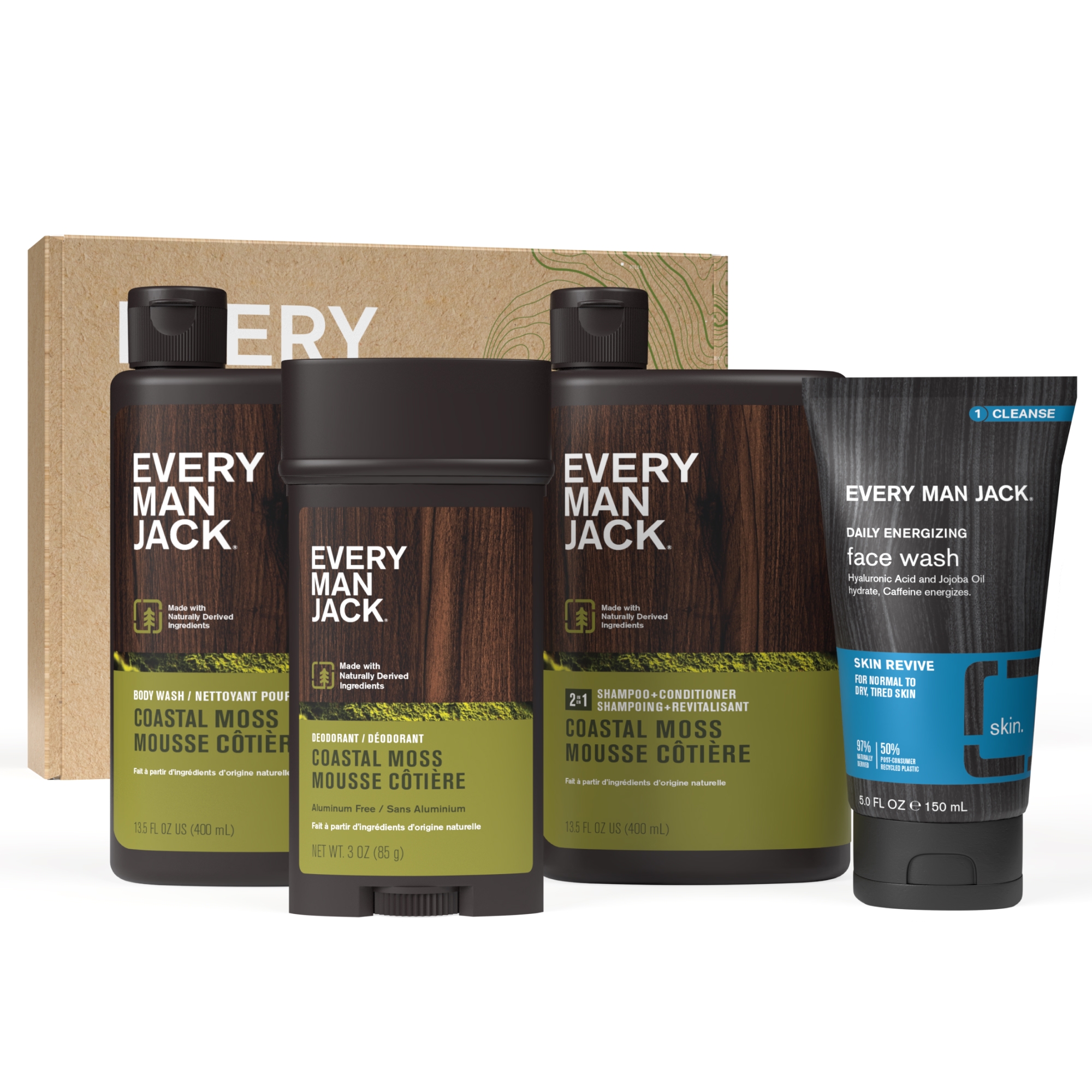 | Amazon Title | Every Man Jack Men’s Coastal Moss Bath and Body Gift Set with Clean Ingredients & Vetiver and Spicy Citrus Scent - Round Out His Routine with Body Wash, 2-in-1 Shampoo, Deodorant & Face Wash |