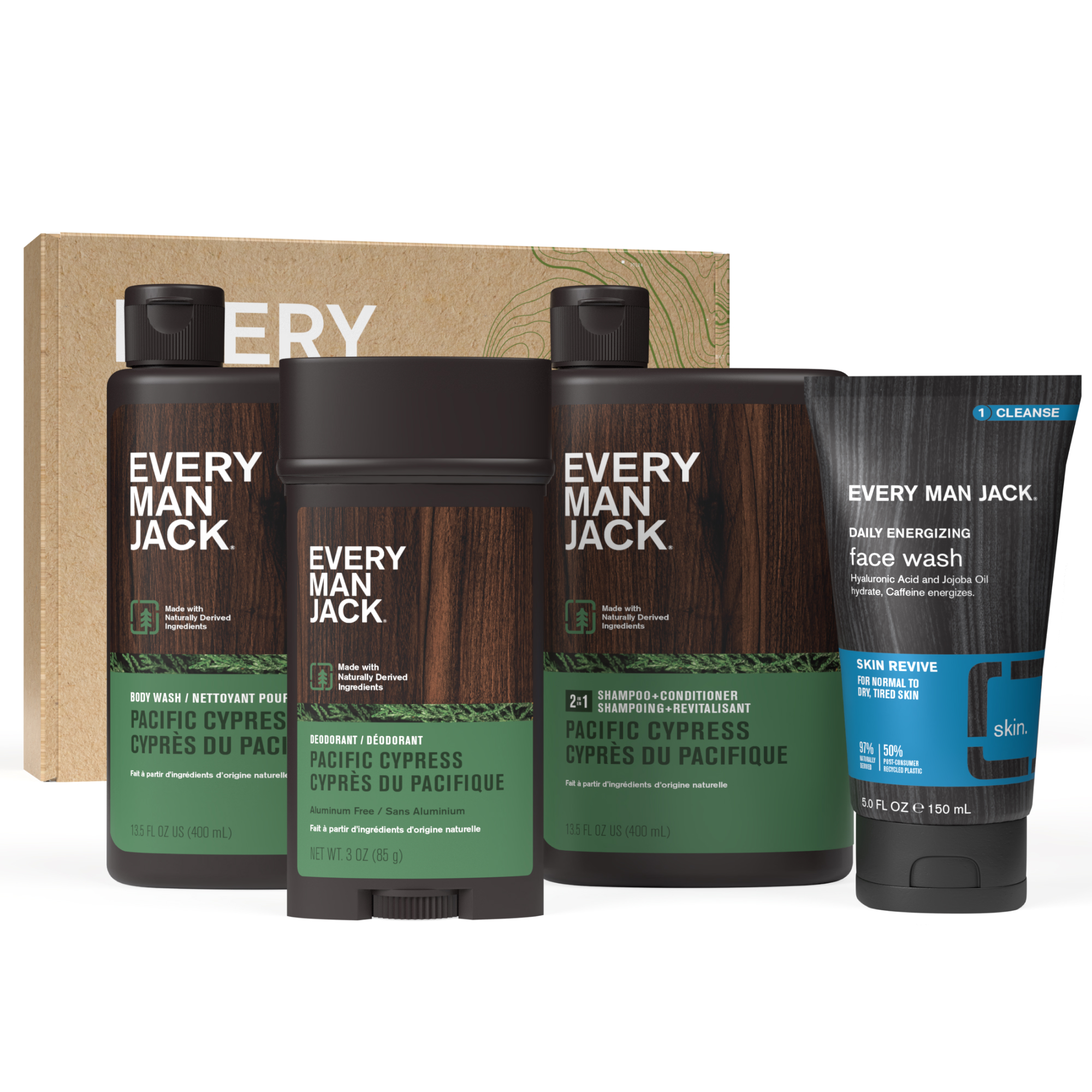 Every Man Jack Men’s Pacific Cypress Body Set - Bath and Body Gift Set with Clean Ingredients & A Conifer Branches, Sea Salt, and Citrus Scent - Round Out His Routine with Body Wash, 2-in-1 Shampoo, Deodorant & Face Wash