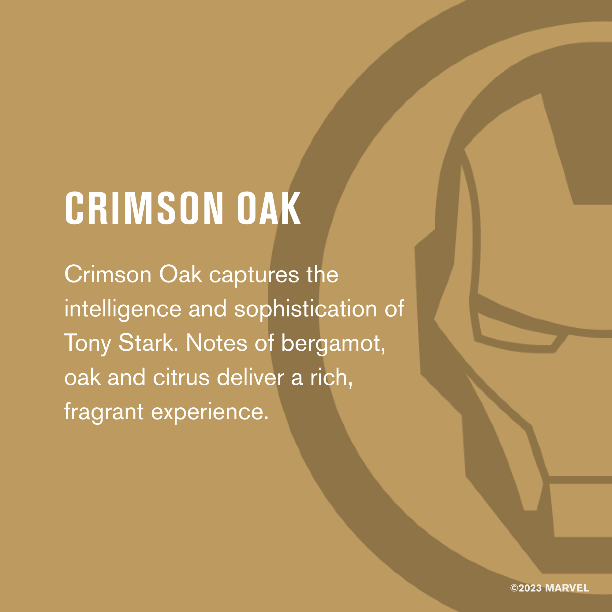 | Bullet Point 3 | INCREDIBLE SCENTS: Inspired by the Marvel character Iron Man. - An elevated blend of fierce Crimson spices and strong gilded Amber takes flight with notes inspired by Stark leather and robust Oak Wood barrel, and all followed by a sophisticated hint of Scotch. |