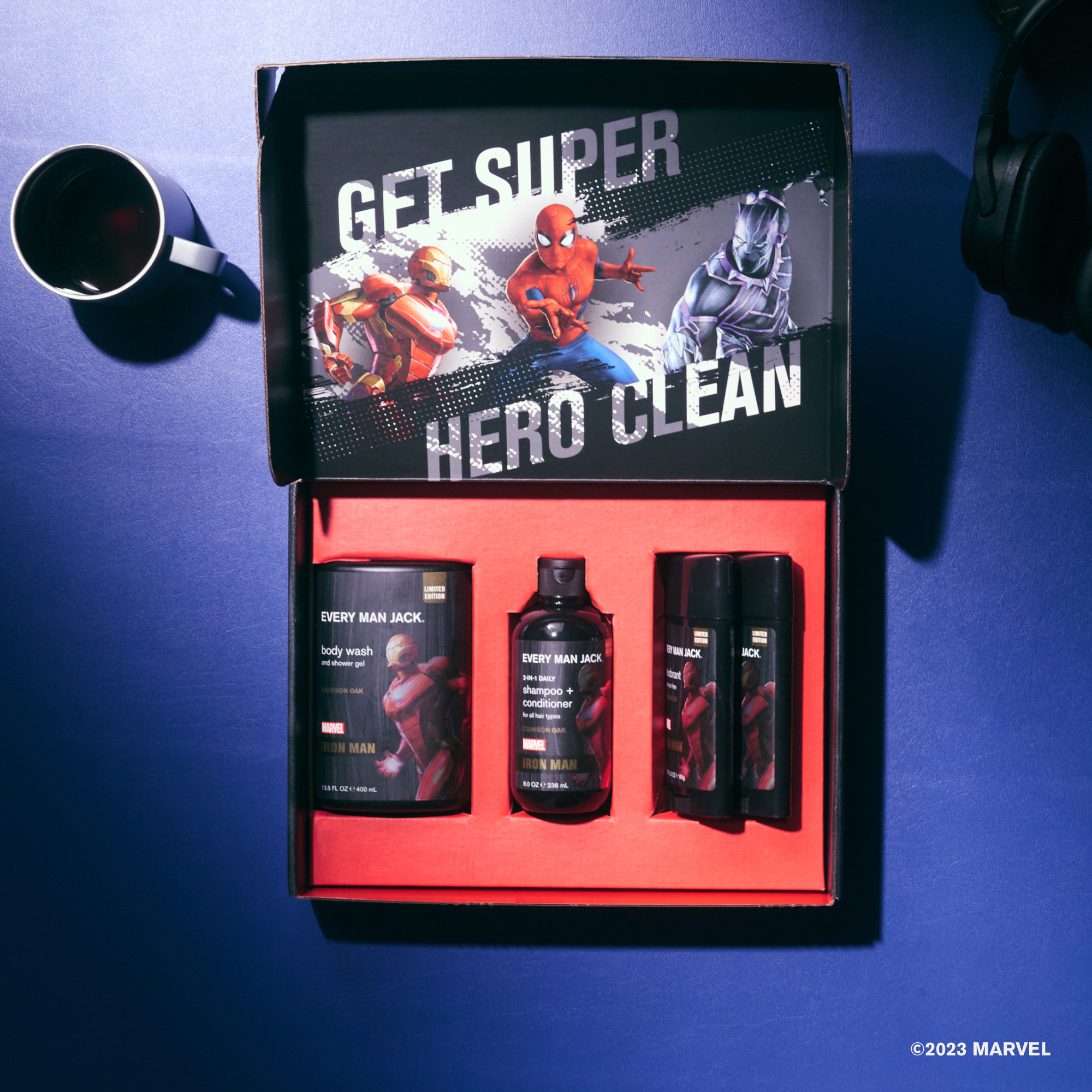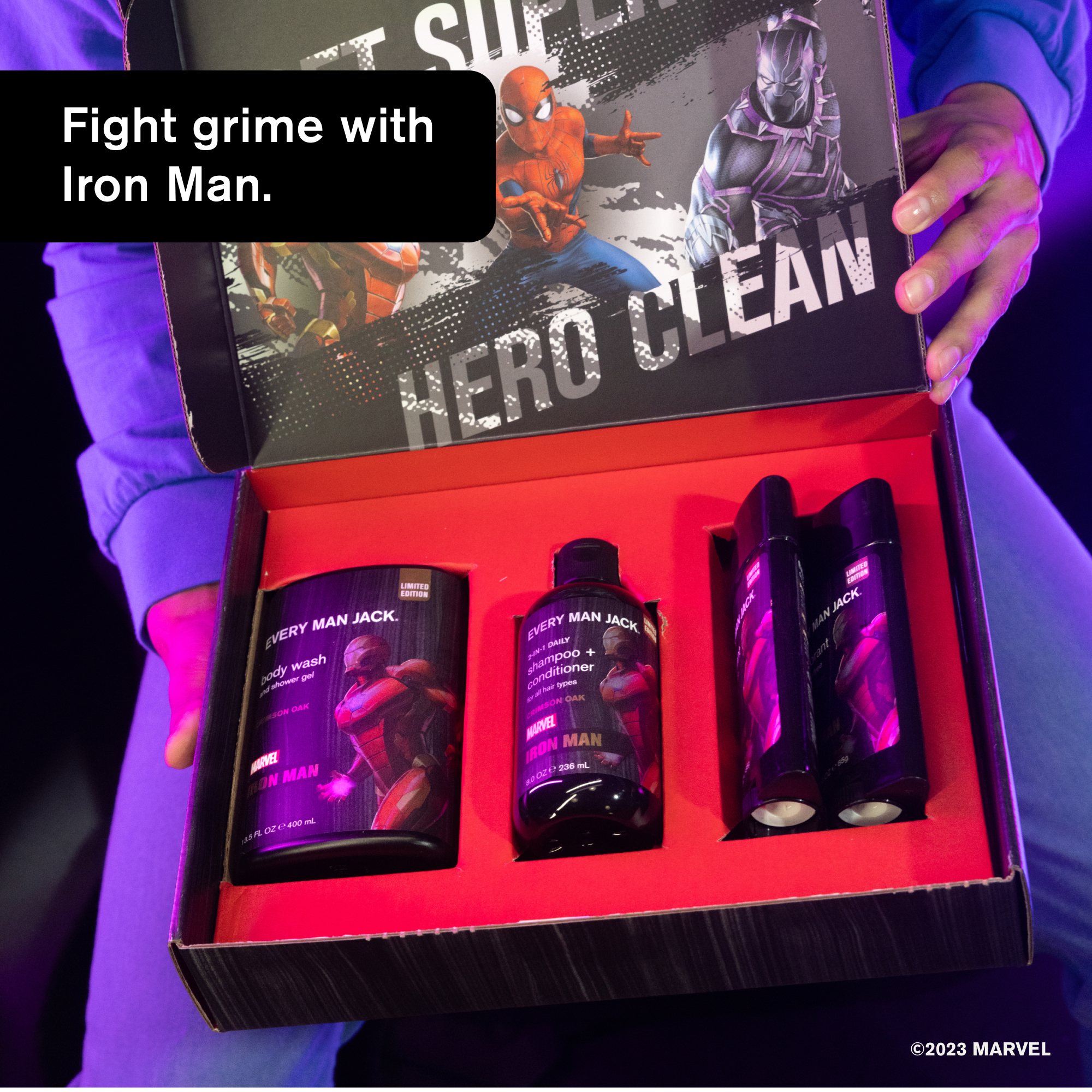 Every Man Jack Iron Man Body Set - Perfect for Every Guy & Marvel-Lover - Bath and Body Marvel Gift Set with Clean Ingredients & Incredible Scents - Includes Body Wash, Shampoo & Deodorant 2-Pack