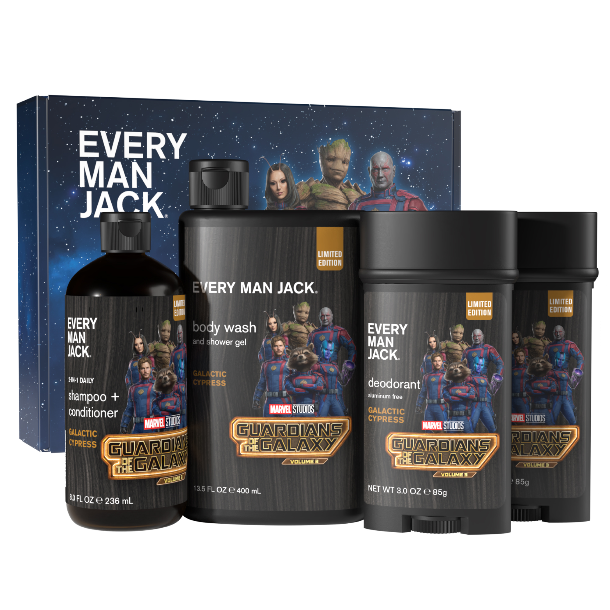 | Name | Every Man Jack Guardians of the Galaxy Body Set - Perfect for Every Guy & Marvel-Lover - Bath and Body Marvel Gift Set with Clean Ingredients & Incredible Scents - Includes Body Wash, Shampoo & Deodorant 2-Pack |