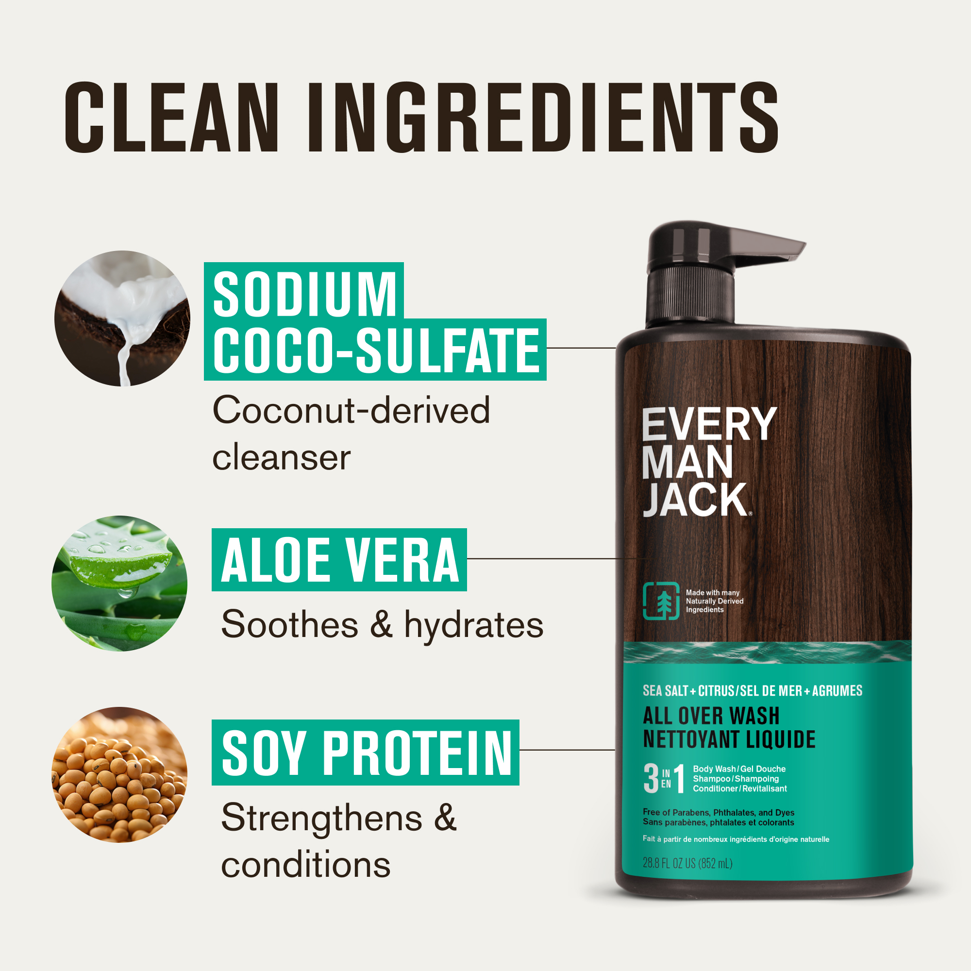 | Name | Every Man Jack Hydrating Sea Salt + Citrus 3-in-1 All Over Wash for Men, Naturally Derived, 852ml |