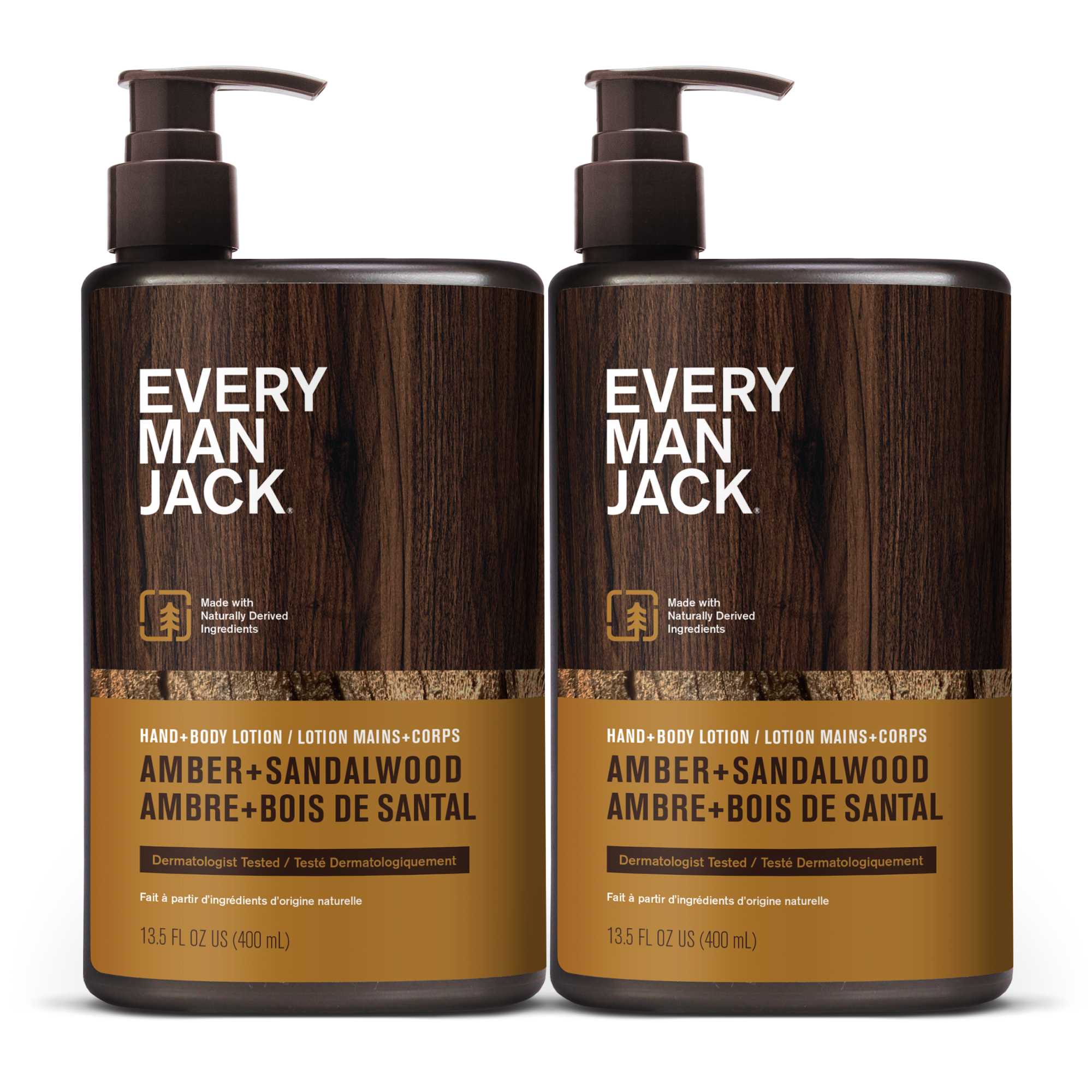 | Amazon Title | Every Man Jack Mens Amber + Sandalwood Hand & Body Lotion for All Skin Types - Dermatologist Tested & Hypoallergenic - Nourish Skin with Lightweight Fast Absorbing Lotion - 13.5oz 2 Bottles |