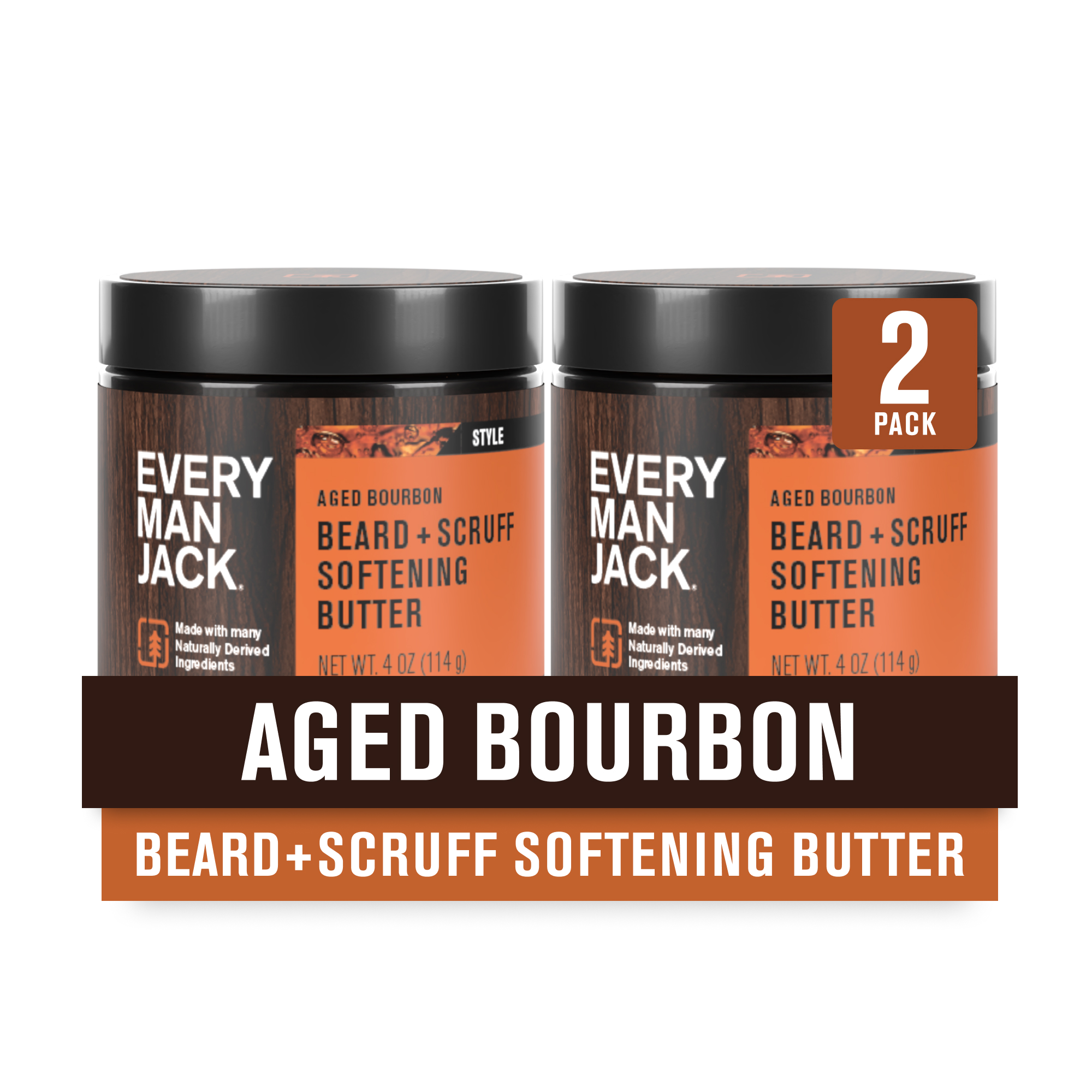 Every Man Jack Beard Butter- Aged Bourbon Fragrance - Hydrates and Styles Dry, Unruly Beards While Relieving Itch - Naturally Derived with Shea Butter and Coconut Oil - 4-ounce (2 Pack)