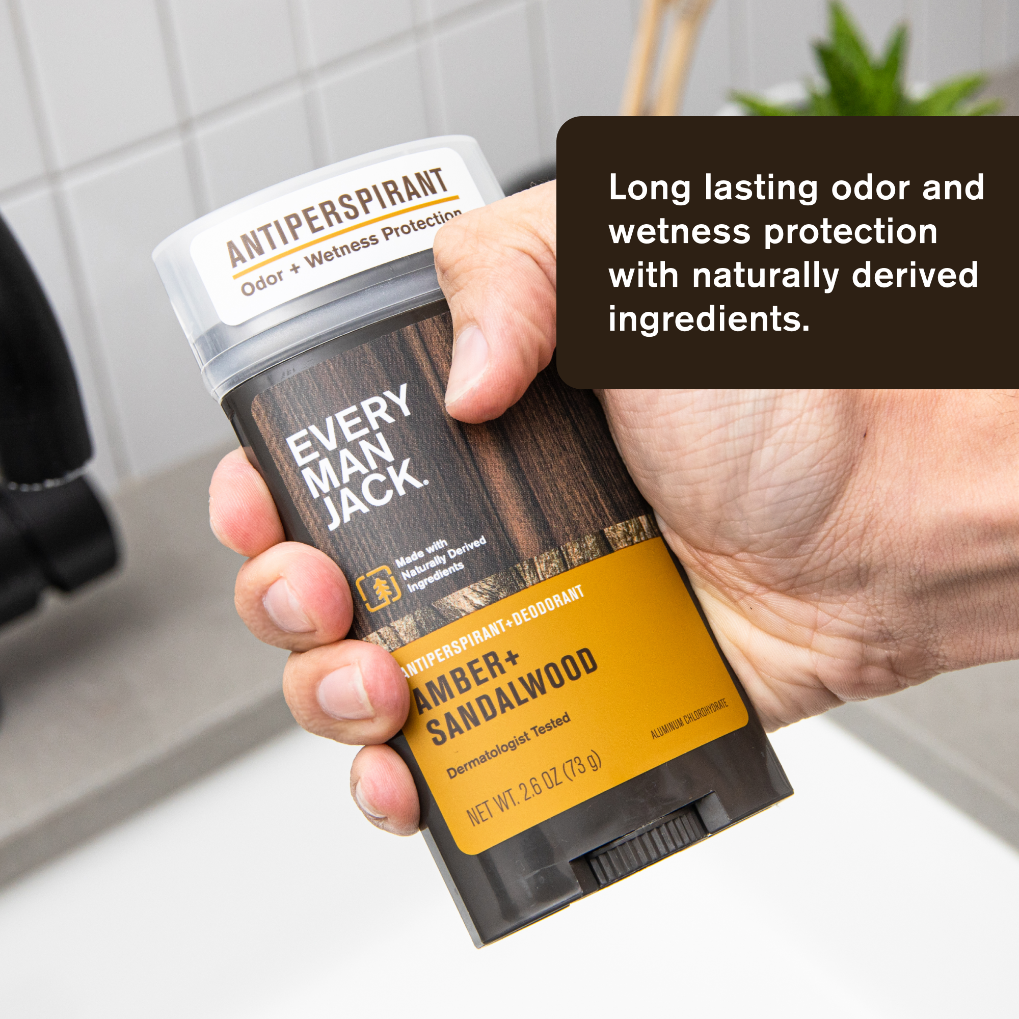| Name | Every Man Jack Men’s Amber + Sandalwood Antiperspirant Deodorant - Stay Fresh with Antiperspirant Men’s Deodorant - Odor Crushing, Long Lasting, Plant-Based, and No Harsh Chemicals - 73 grams - 2 Pack |