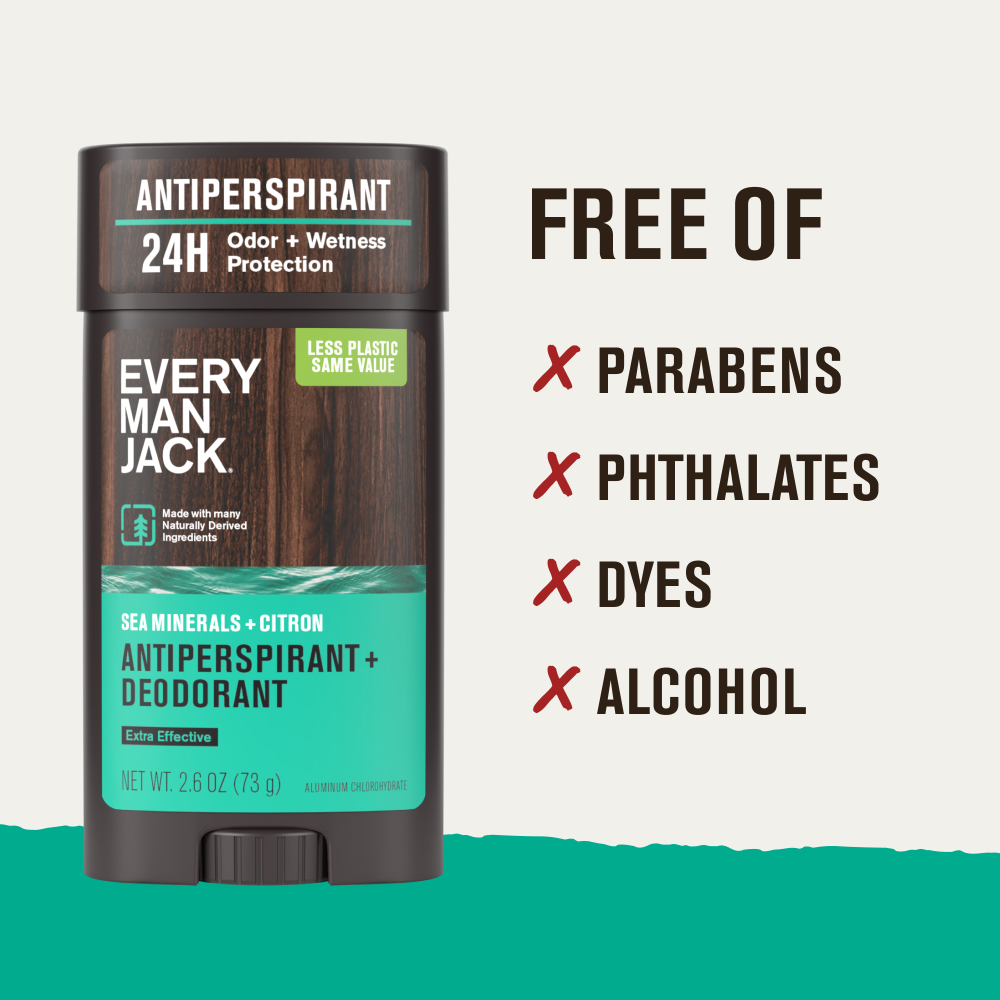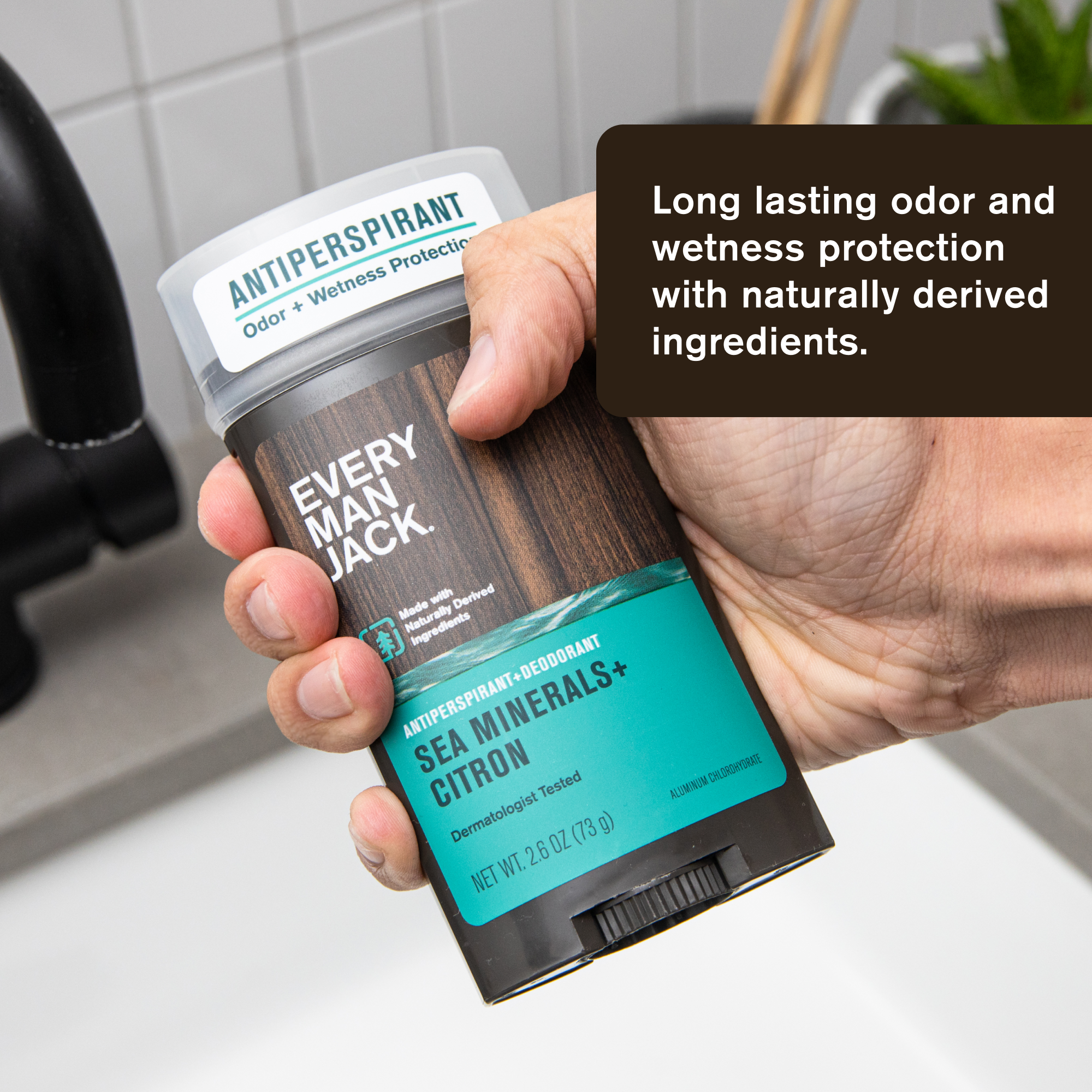 | Name | Every Man Jack Men’s Sea Minerals + Citron Antiperspirant Deodorant - Stay Fresh with Antiperspirant Men’s Deodorant - Odor Crushing, Long Lasting, Plant-Based, and No Harsh Chemicals - 73 grams - 2 Pack |