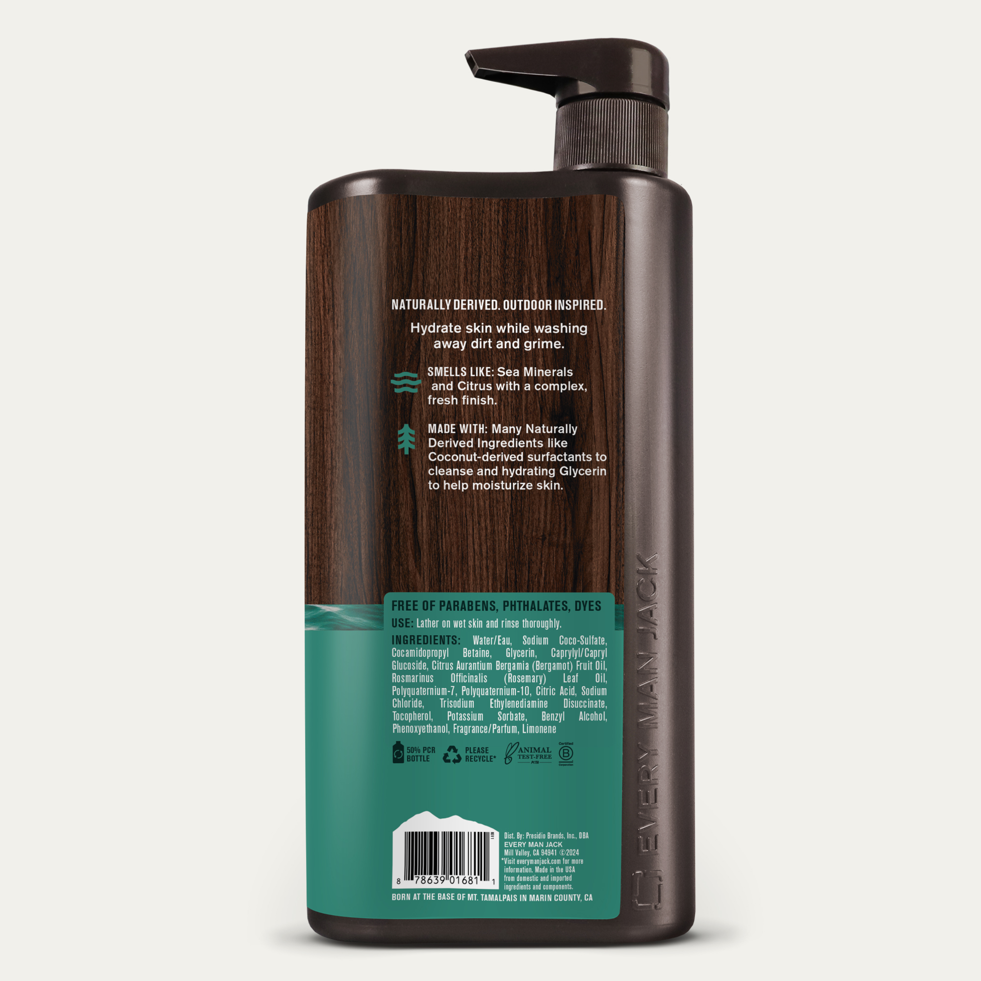 Every Man Jack Sea Salt + Citrus Mens Body Wash for All Skin Types - Cleanse, Hydrate, and Smell Great - Free of Parabens, Phtalates, and Dyes - 33.8 fl oz