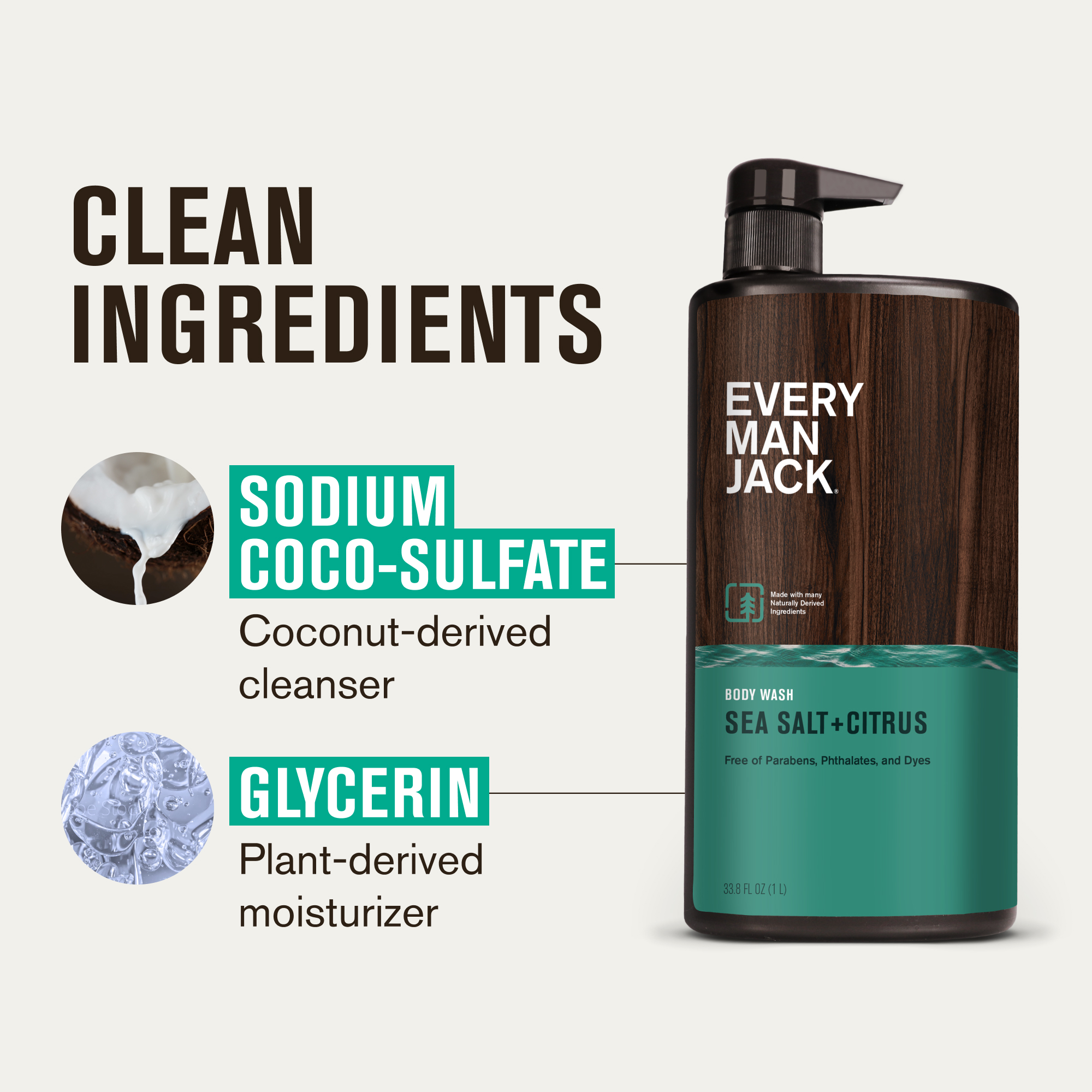 | Name | Every Man Jack Sea Salt + Citrus Mens Body Wash for All Skin Types - Cleanse, Hydrate, and Smell Great - Free of Parabens, Phtalates, and Dyes - 33.8 fl oz |