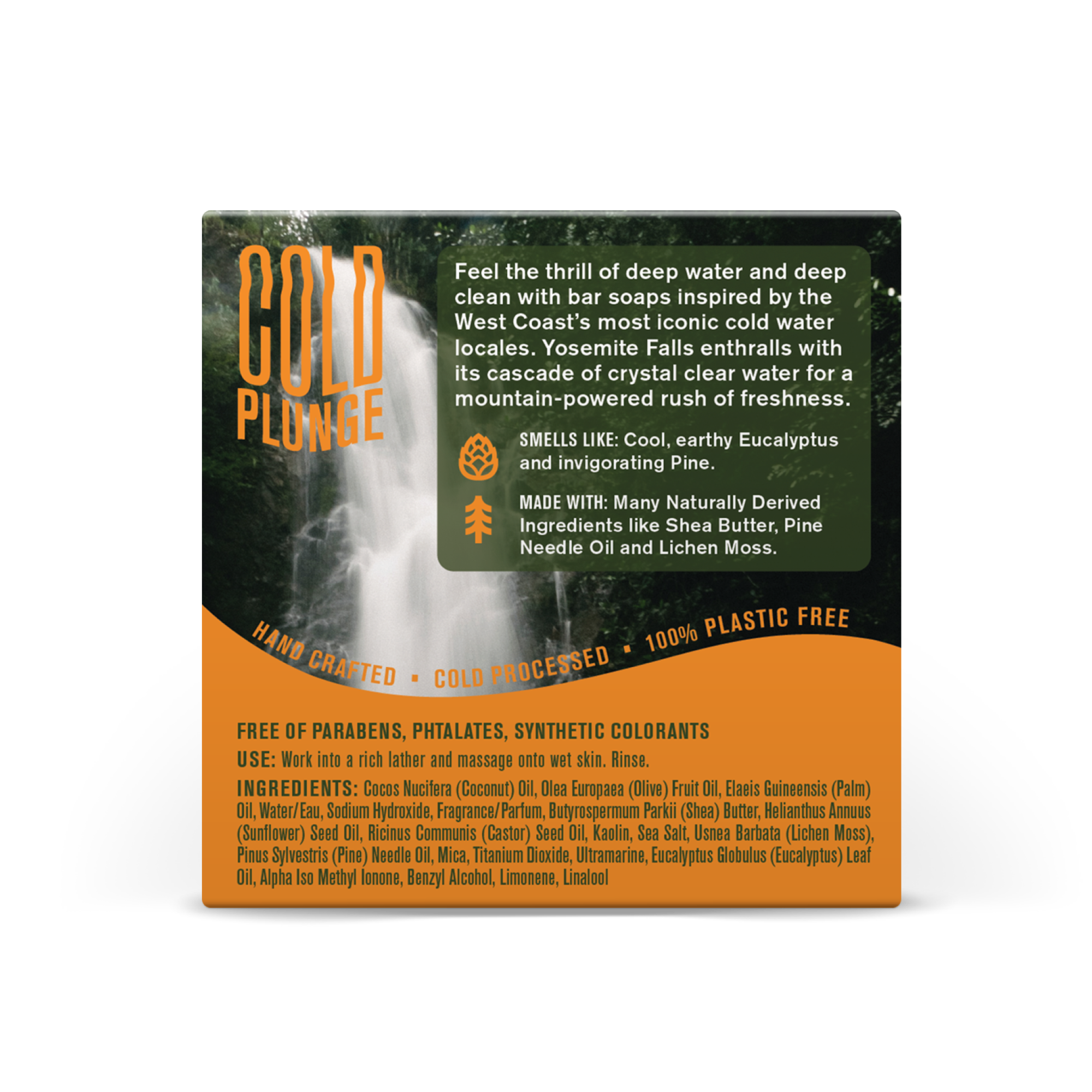 | Product Description | Like stepping under a torrent of mountain-powered freshness, Yosemite Falls gives your skin the cool, earthy scent of Eucalyptus and invigorating Pine. Plus it’s made with a cold process from start to finish, ensuring the preservation of Naturally Derived Ingredients that provide a breathtaking clean. |