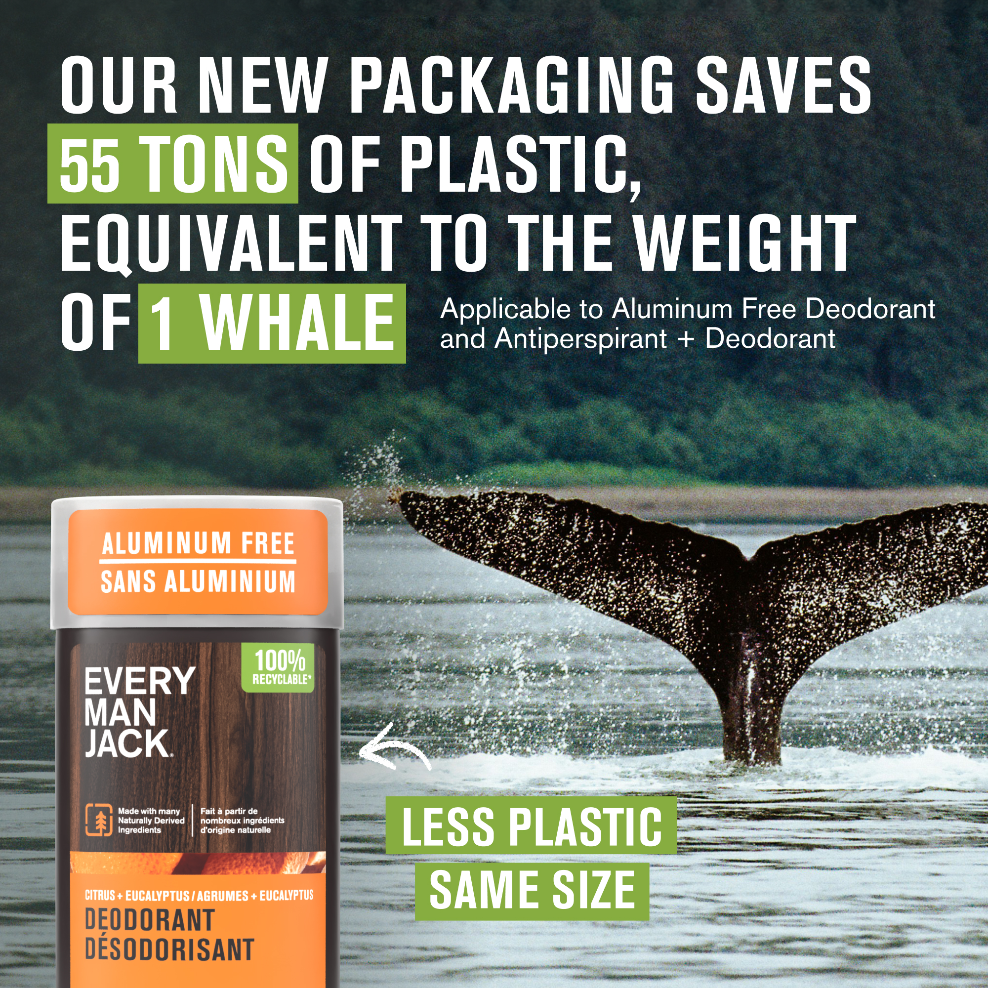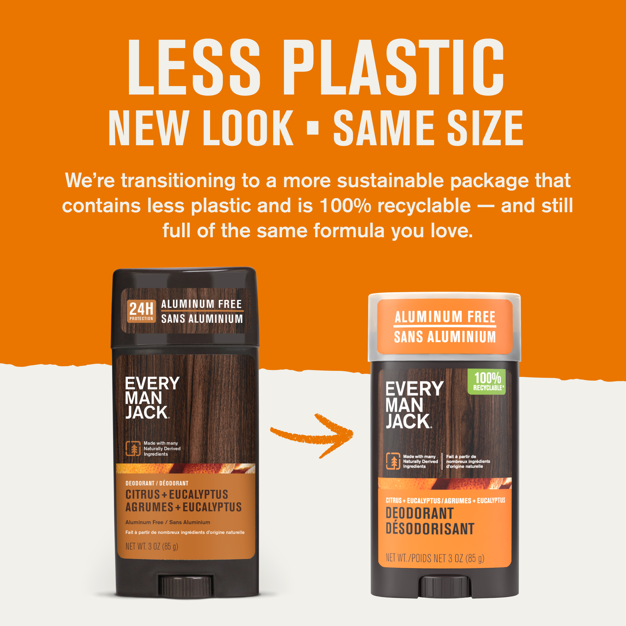 Every Man Jack Citrus + Eucalyptus Men’s Deodorant - Stay Fresh with Aluminum Free Deodorant For all Skin Types - Odor Crushing, Long Lasting, with Naturally Derived Ingredients - 3oz (2 Pack)