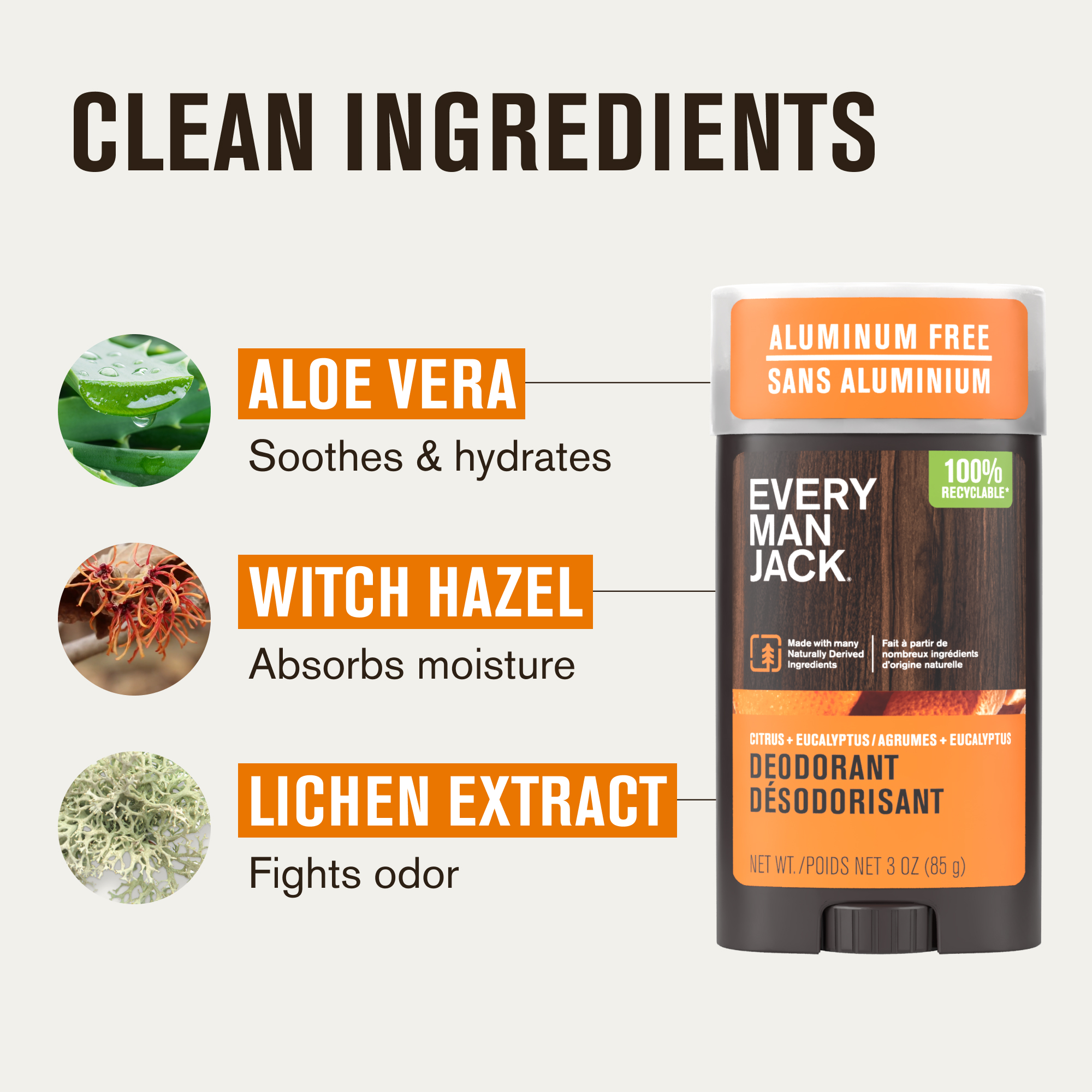 | Name | Every Man Jack Citrus + Eucalyptus Men’s Deodorant - Stay Fresh with Aluminum Free Deodorant For all Skin Types - Odor Crushing, Long Lasting, with Naturally Derived Ingredients - 3oz (2 Pack) |