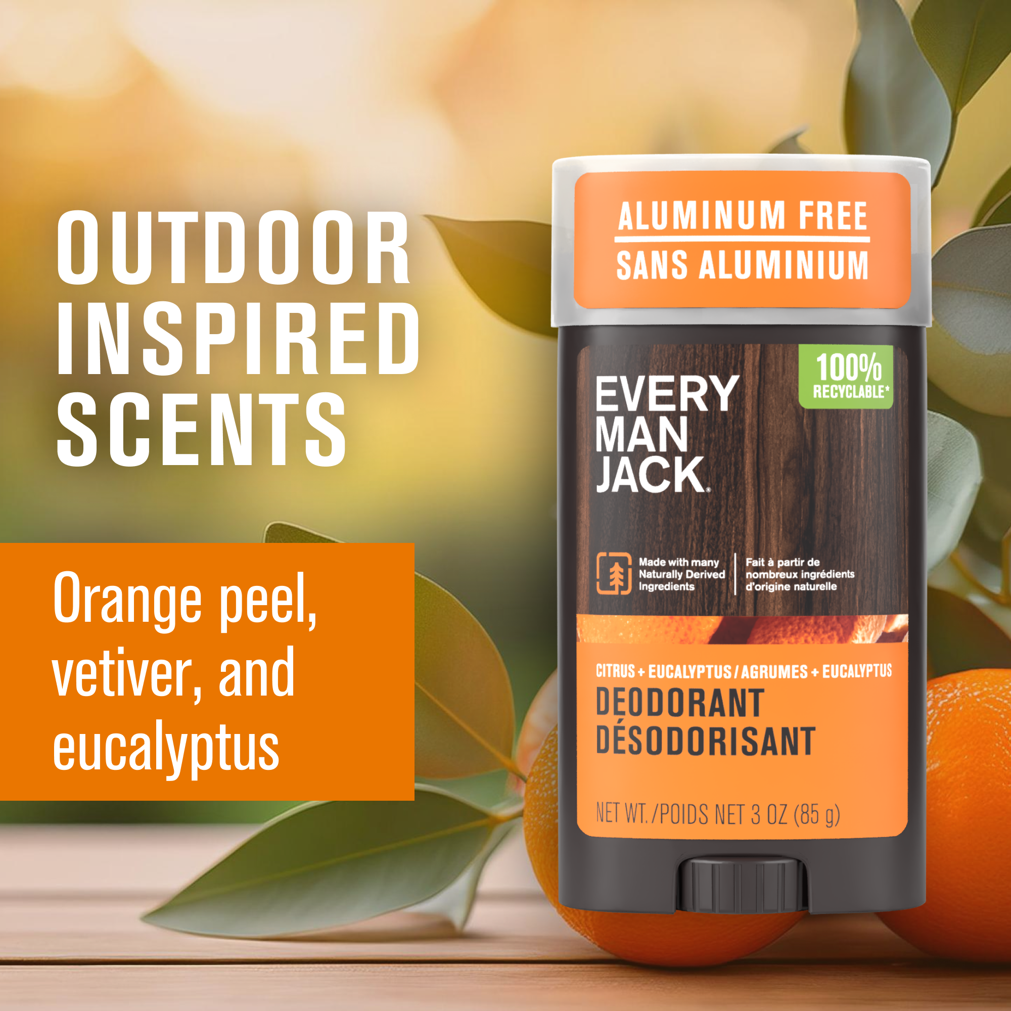 | Amazon Title | Every Man Jack Citrus + Eucalyptus Men’s Deodorant - Stay Fresh with Aluminum Free Deodorant For all Skin Types - Odor Crushing, Long Lasting, with Naturally Derived Ingredients - 3oz (2 Pack) |