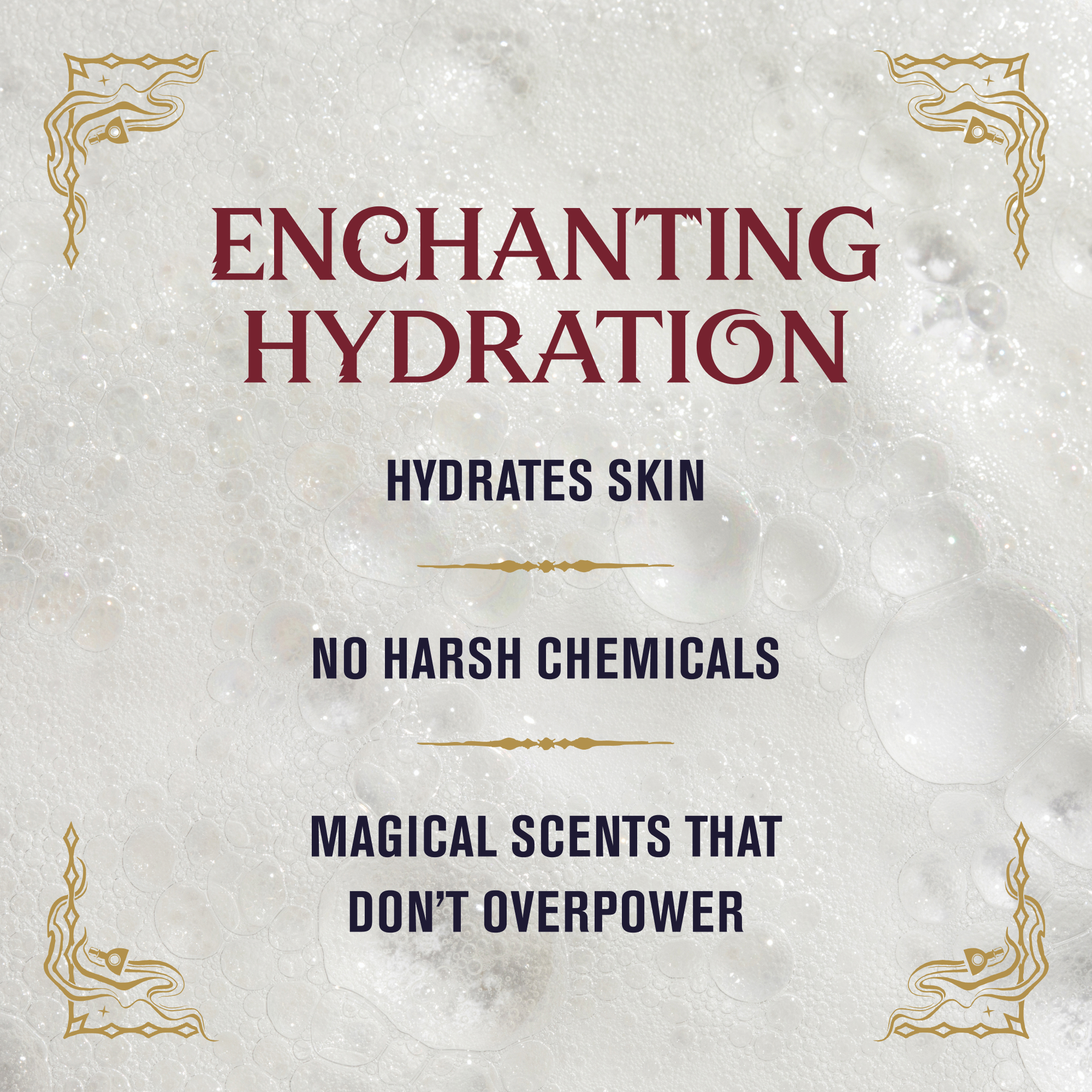 | Bullet Point 1 | SPELLBINDING MOISTURE: Dry skin? Our formulas are packed with Naturally Derived Ingredients that leave your skin magically smooth, moisturized, and hydrated – all while delivering a deep clean without harsh chemicals. |