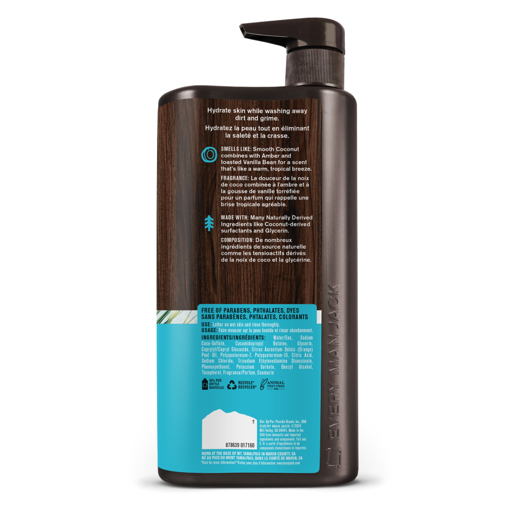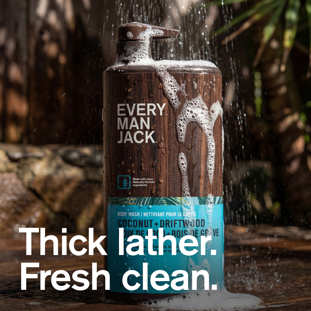 | Amazon Title | Every Man Jack Coconut + Driftwood Mens Body Wash for All Skin Types - Cleanse, Hydrate, and Smell Great - Free of Parabens, Phtalates, and Dyes - 33.8 fl oz (2 Pack) |