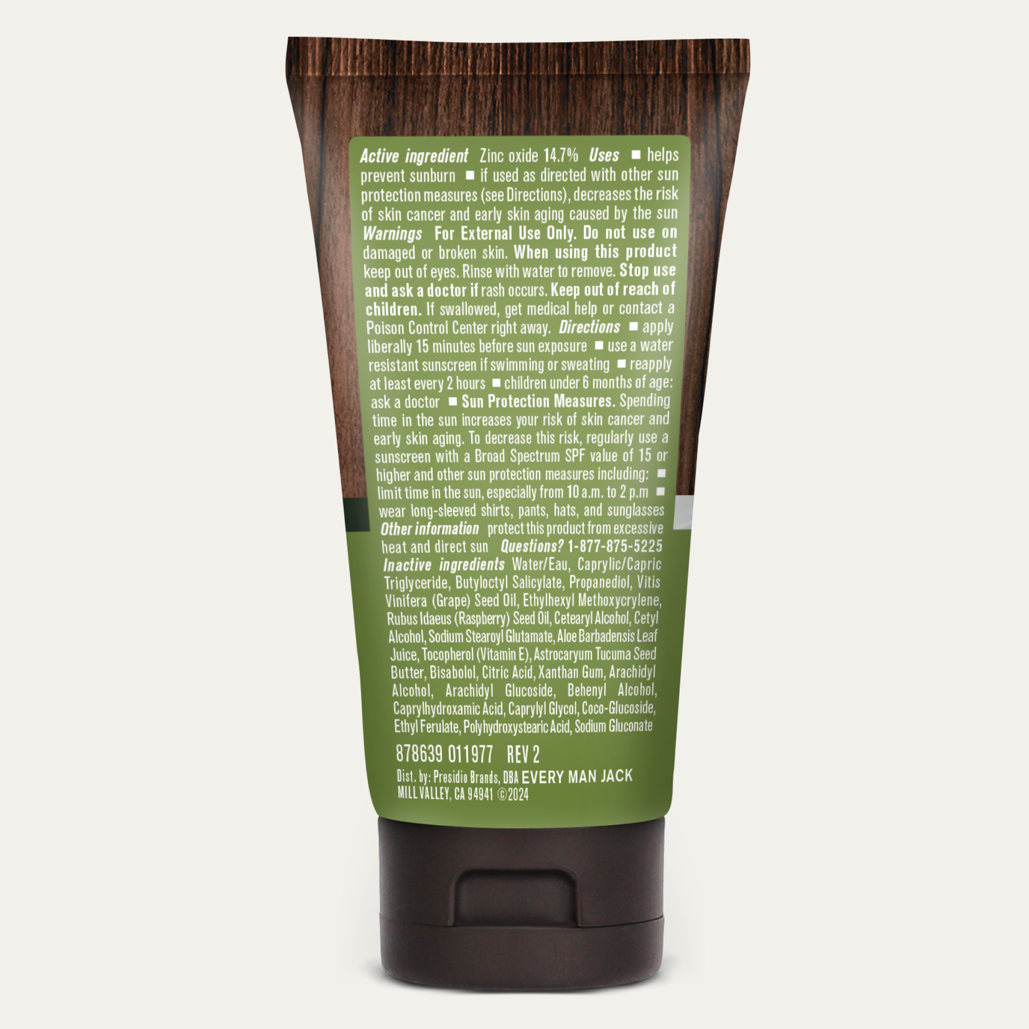 | Product Description | Protect your number one asset with Every Man Jack Mineral Face Lotion. Rub in a dollop before you hit the beach, slopes, or anywhere else for long lasting moisture and full spectrum UV protection. It goes on light, absorbs quick, and leaves a refreshing minty tingle. So, go ahead and face the day. Every Man Jack has your back—and face. |