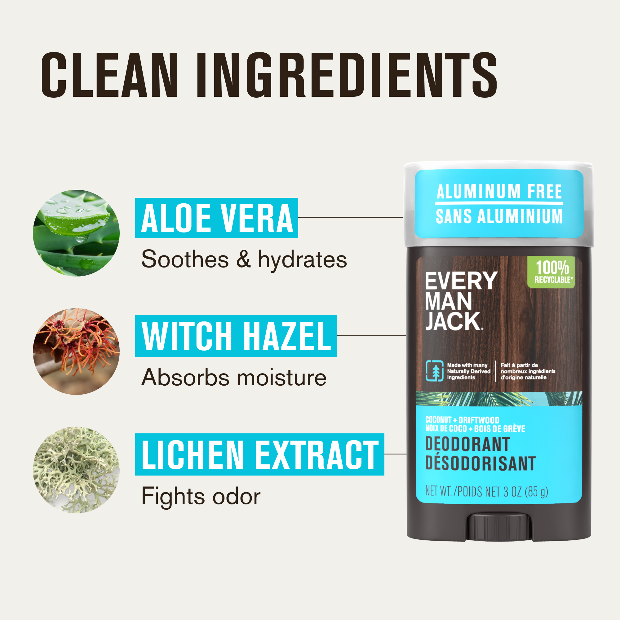 | Amazon Title | Every Man Jack Coconut Driftwood Men’s Deodorant - Stay Fresh with Aluminum Free Deodorant For all Skin Types - Odor Crushing, Long Lasting, with Naturally Derived Ingredients - 3oz (2 Pack) |