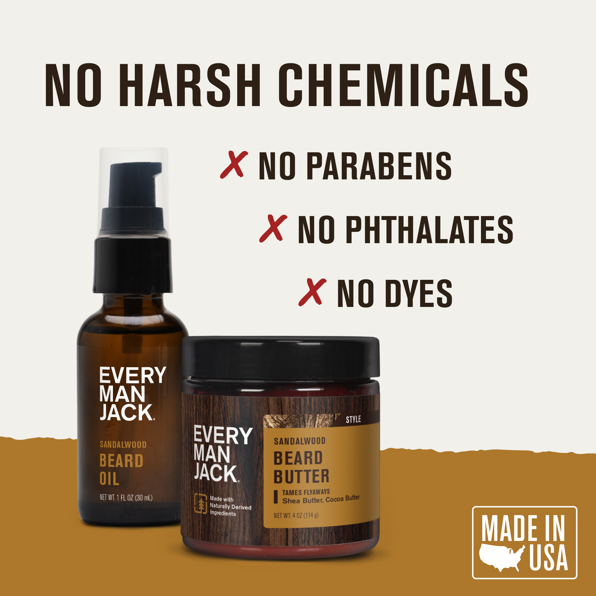 | Name | Every Man Jack Beard Oil & Beard Butter Bundle - Sandalwood Fragrance - Softens, Hydrates & Styles Dry Beards - Naturally Derived with Cocoa Butter and Shea Butter |