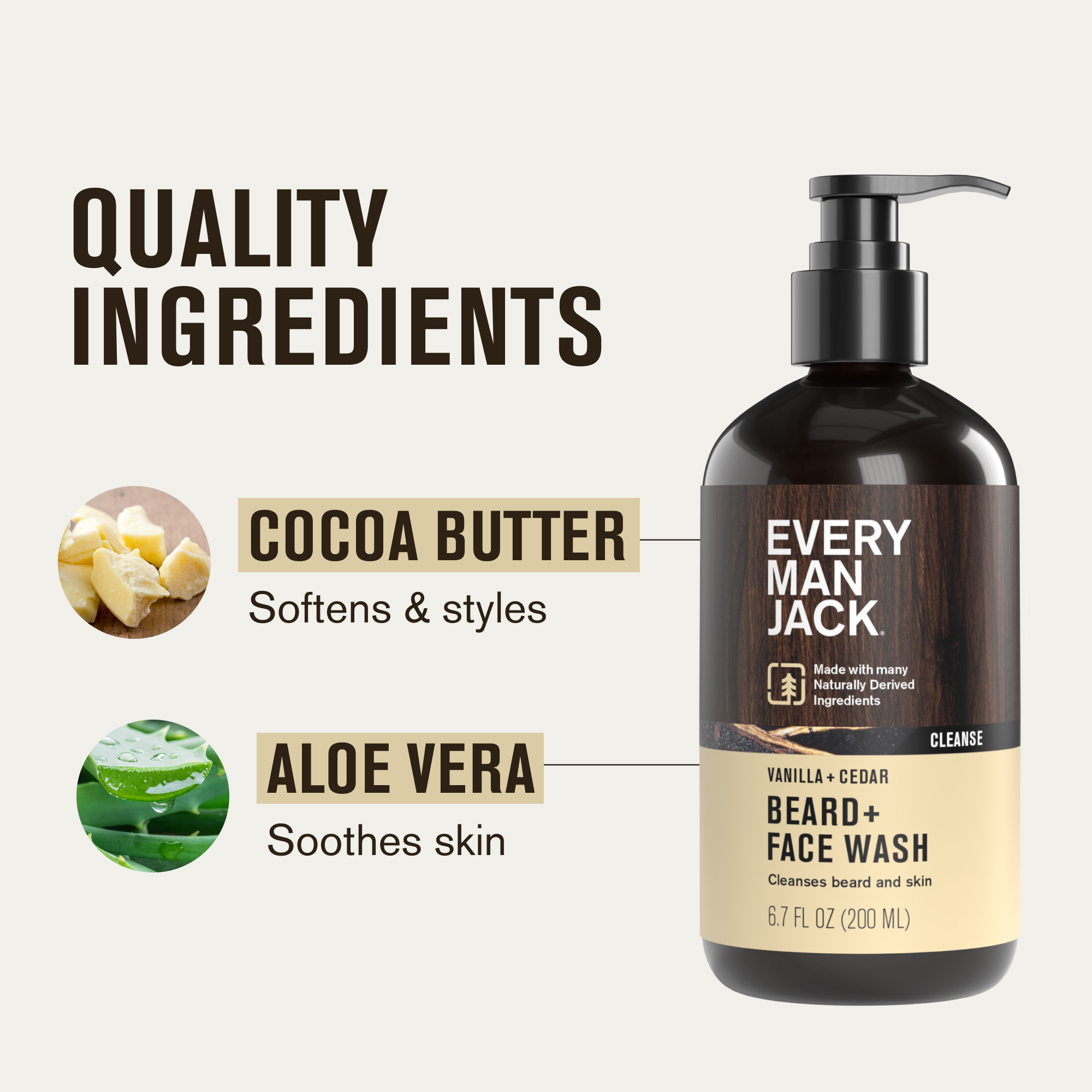 | Name | Every Man Jack Beard + Face Wash - Vanilla & Cedar Fragrance - Cleans & Softens Your Beard and Skin - Naturally Derived w/ Aloe and Glycerin- 6.7 fl oz |