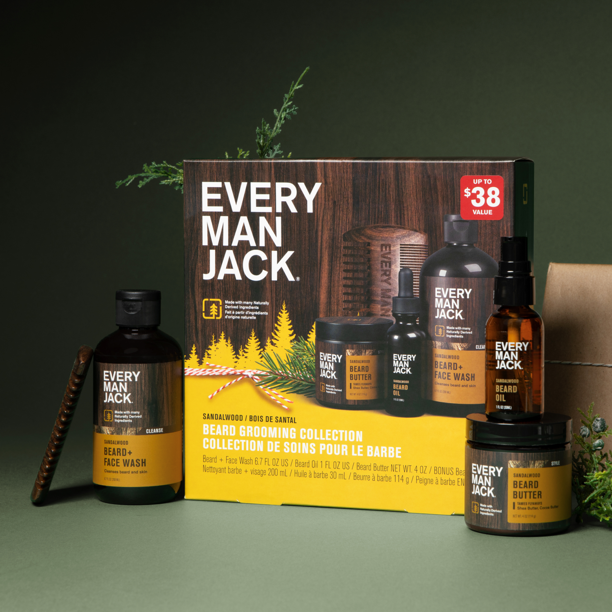 | Walmart Title | Every Man Jack Sandalwood Beard Care Kit Christmas Holiday Gift Set for All Skin Types, 1 Count |