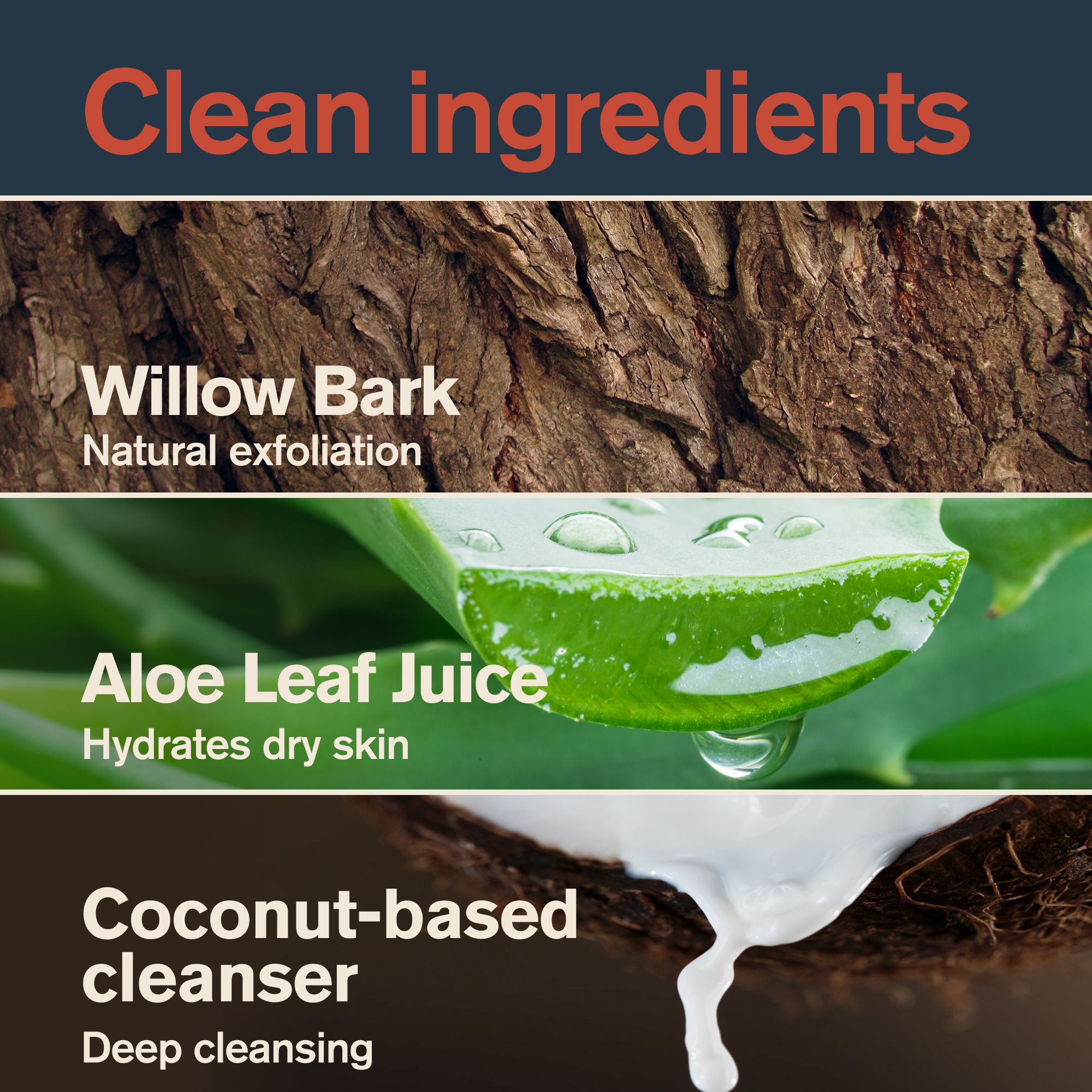 | Ingredients Statement | Water/Eau, Sodium Coco-Sulfate, Hydrated Silica, Caprylyl/Capryl Glucoside, Glycerin, Cocamidopropyl Betaine, Acrylates Copolymer, Salix Alba (Willow) Bark Extract, Cocos Nucifera (Coconut) Shell Powder, Aloe Barbadensis Leaf Juice, Polyquaternium-10, Polyquaternium-7, Potassium Sorbate, Tetrasodium Glutamate Diacetate, Citric Acid, Sodium Chloride, Sodium Hydroxide, Ethylhexylglycerin, Chlorphenesin, Phenoxyethanol, Fragrance/Parfum, Limonene |
