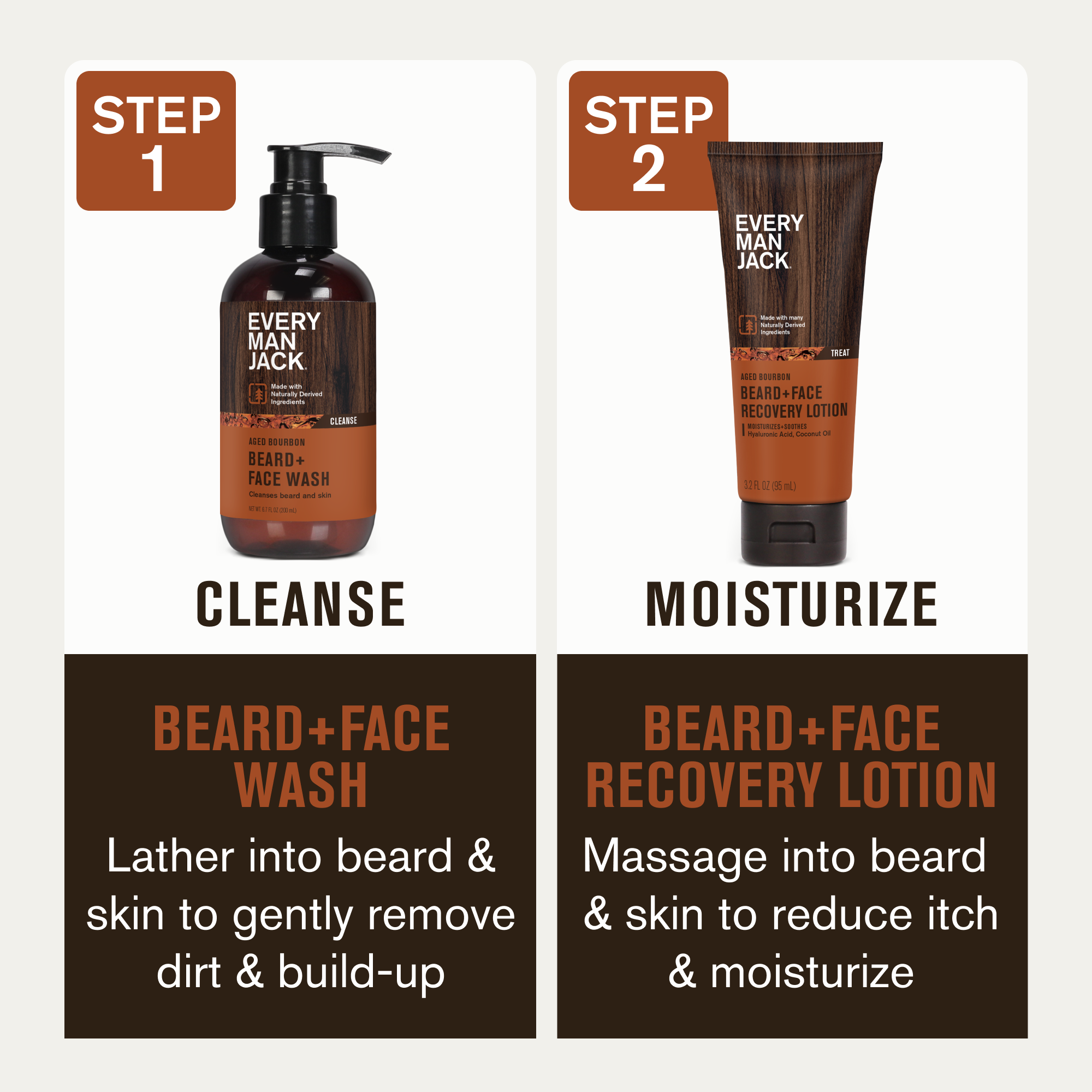 | Amazon Title | Every Man Jack Men's Beard + Face Wash & Scruff Face Lotion Set - Subtle Aged Bourbon Scent - Naturally Cleanse, Hydrate, and Soothe Your Beard & Skin |