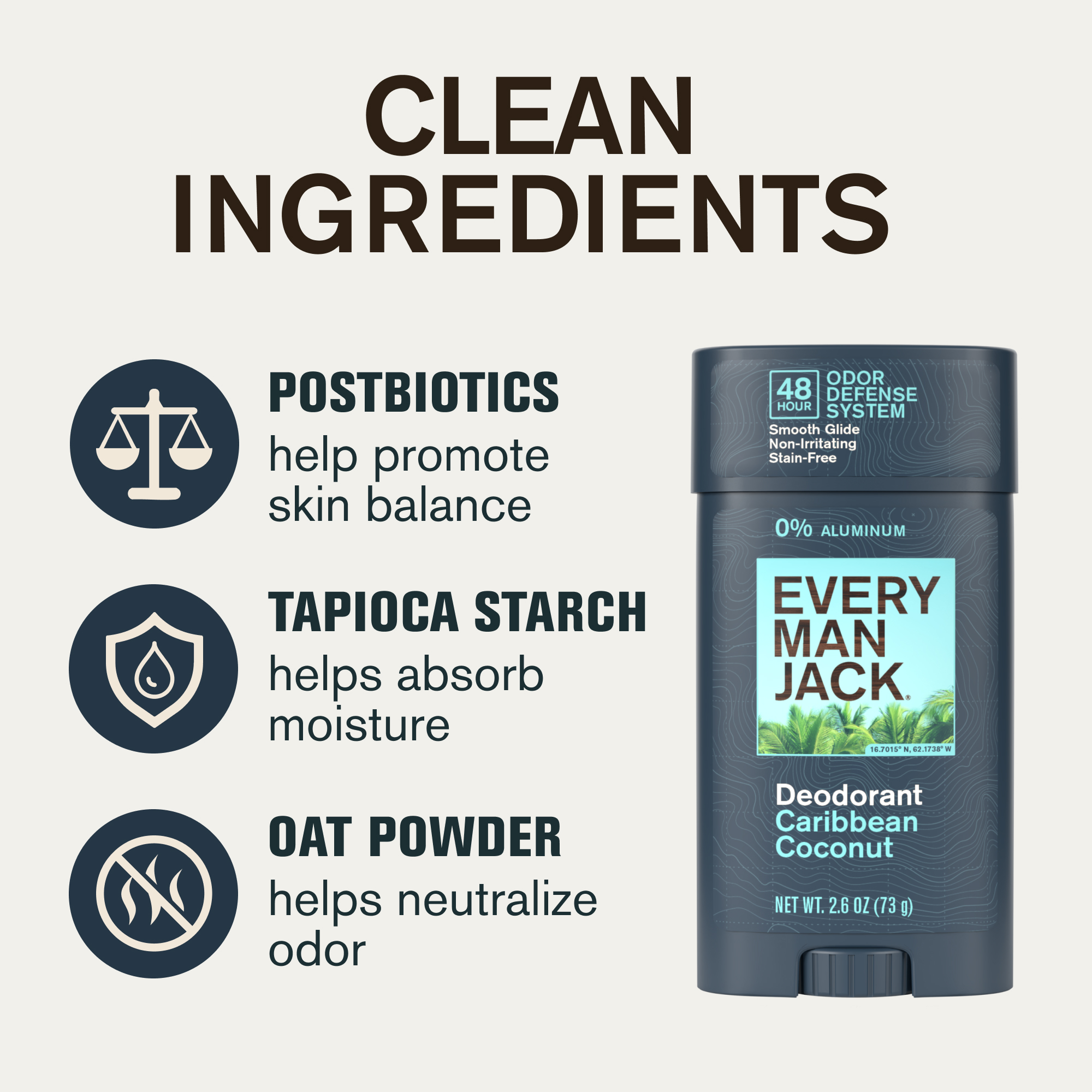 | Name | Every Man Jack Men's Deodorant - 48-Hour Odor Defense - Aluminum Free - Caribbean Coconut Scent - 2.6 oz |