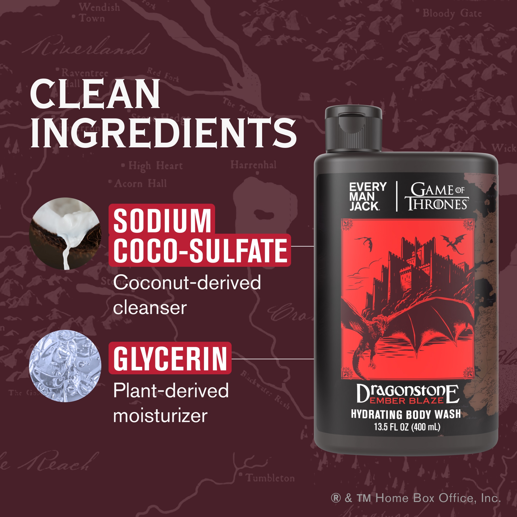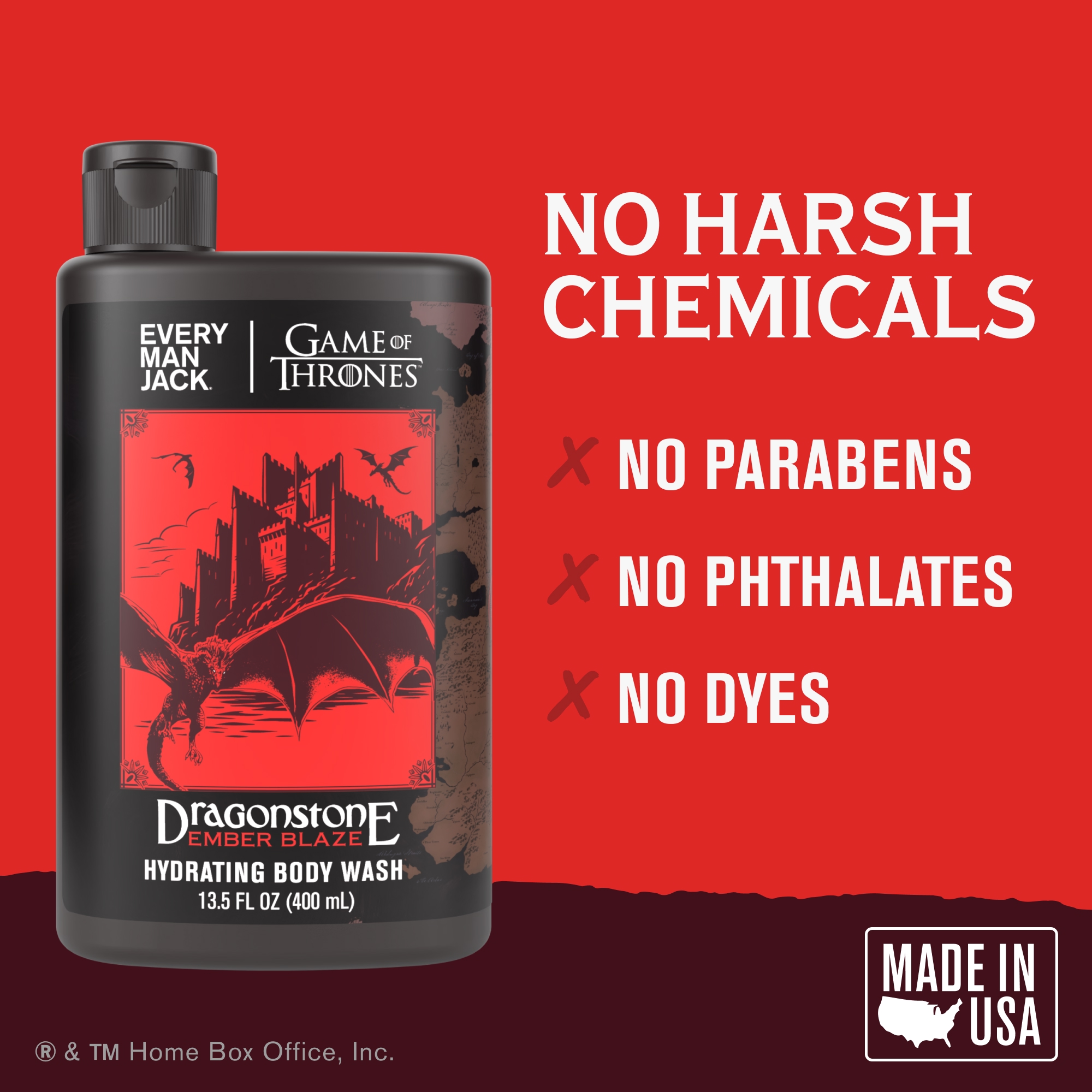 | Name | Every Man Jack Game of Thrones Collectors Body Wash - Clean Ingredients - Dragonstone - Ember Blaze Scent - 13.5 oz (Pack of 2) |