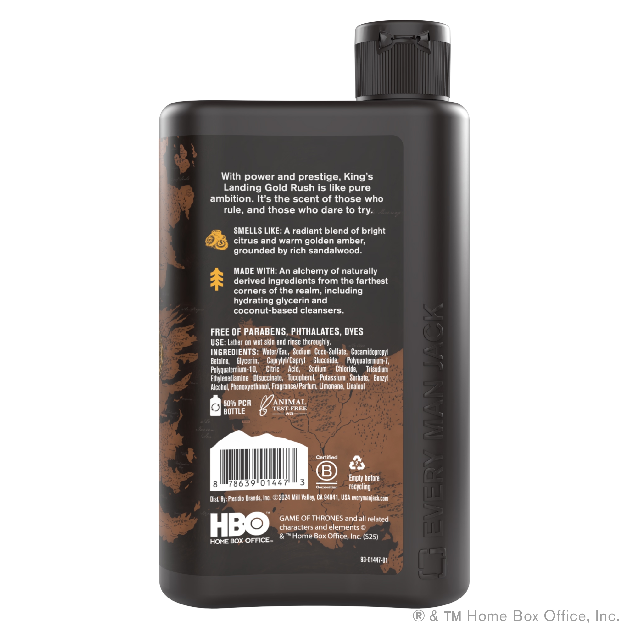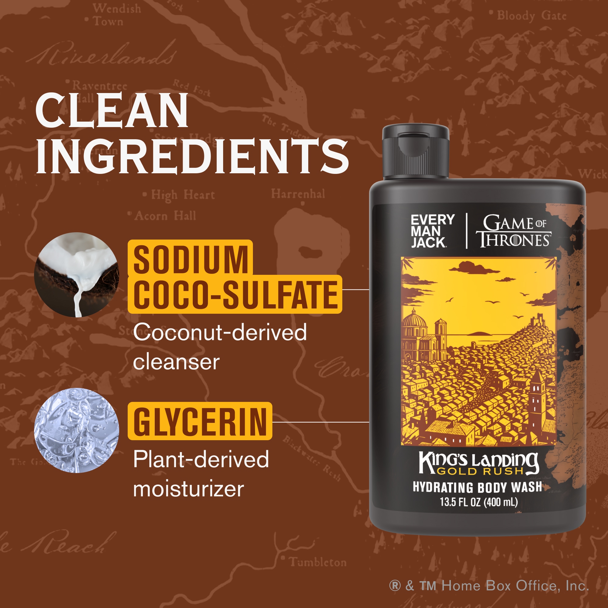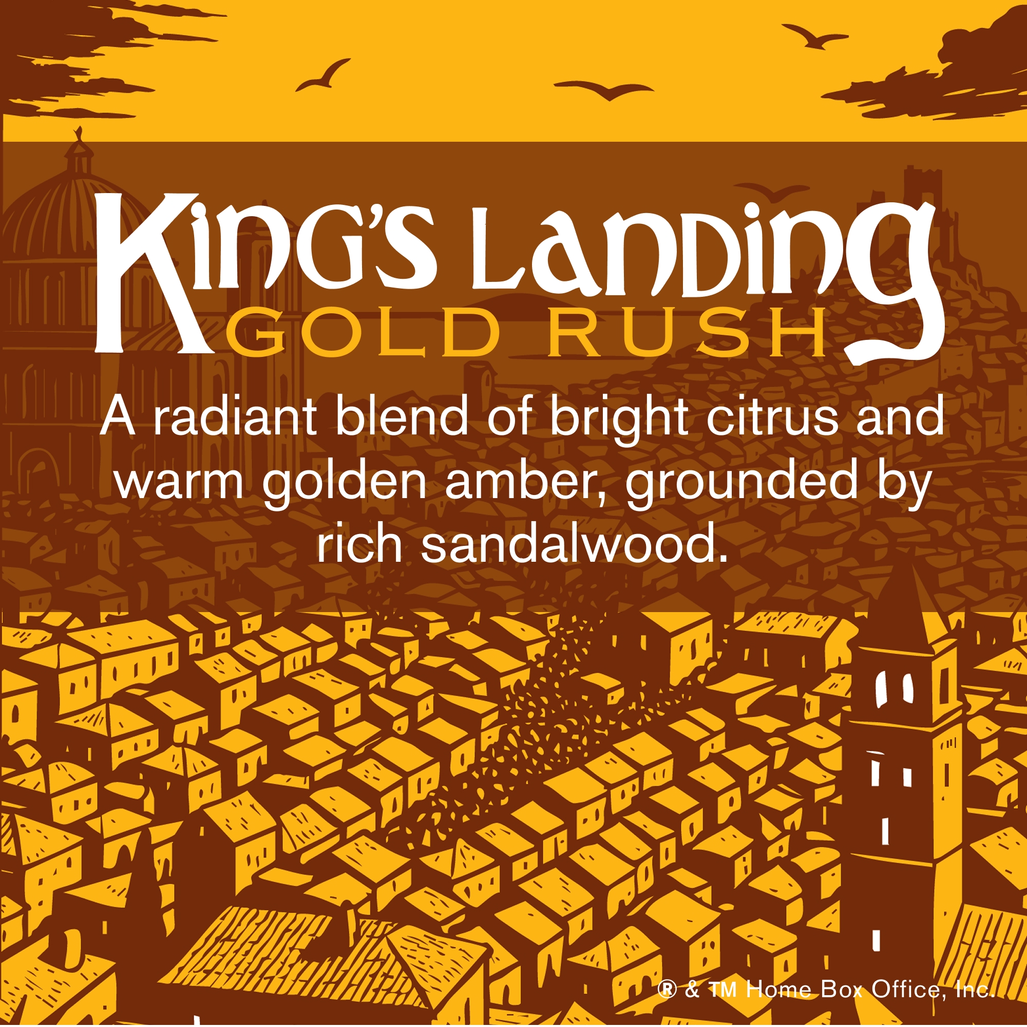 | Bullet Point 3 | SMELL LIKE KING’S LANDING: Shower with a radiant blend of bright citrus and warm golden amber, grounded by rich sandalwood. It’s a powerful scent inspired by the home of the Iron Throne itself. |