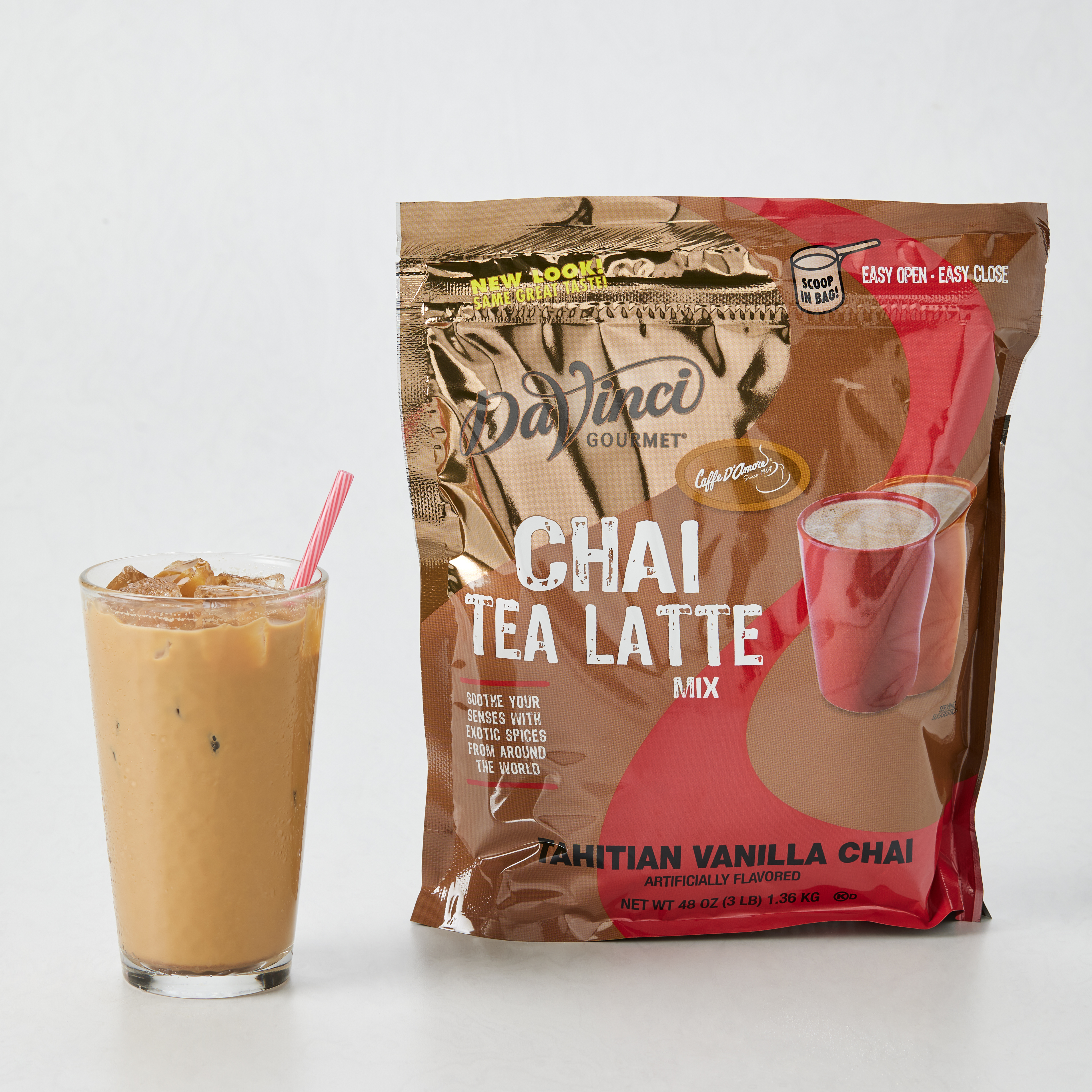 - Taste sweet vanilla and experience serenity in every sip of our delicious chai latte mix. DaVinci Gourmet Serenity Vanilla Chai Latte Mix is a mildly spiced version of our Serenity Spice Chai Latte Mix, with a pronounced vanilla flavor. Invigorating black tea and chai flavors deliver authentic taste. Our creamy chai latte base made with real sugar and a blend of high-quality ingredients ensures smooth texture. At DaVinci Gourmet, we craft distinctive flavor experiences in every cup. Baristas worldwide trust us to source and carefully blend high-quality ingredients to help create premium beverages. With chai latte mixes from DaVinci Gourmet, preparing delicious drinks is quick and easy. Use the scoop conveniently included in each bag for a perfect measurement every time. Customize and get creative with one of our many flavored syrups, or top with whipped cream for an indulgent dessert-like drink.Our Tahitian Vanilla Chai Latte Mix contains 0 grams of trans fats per serving.