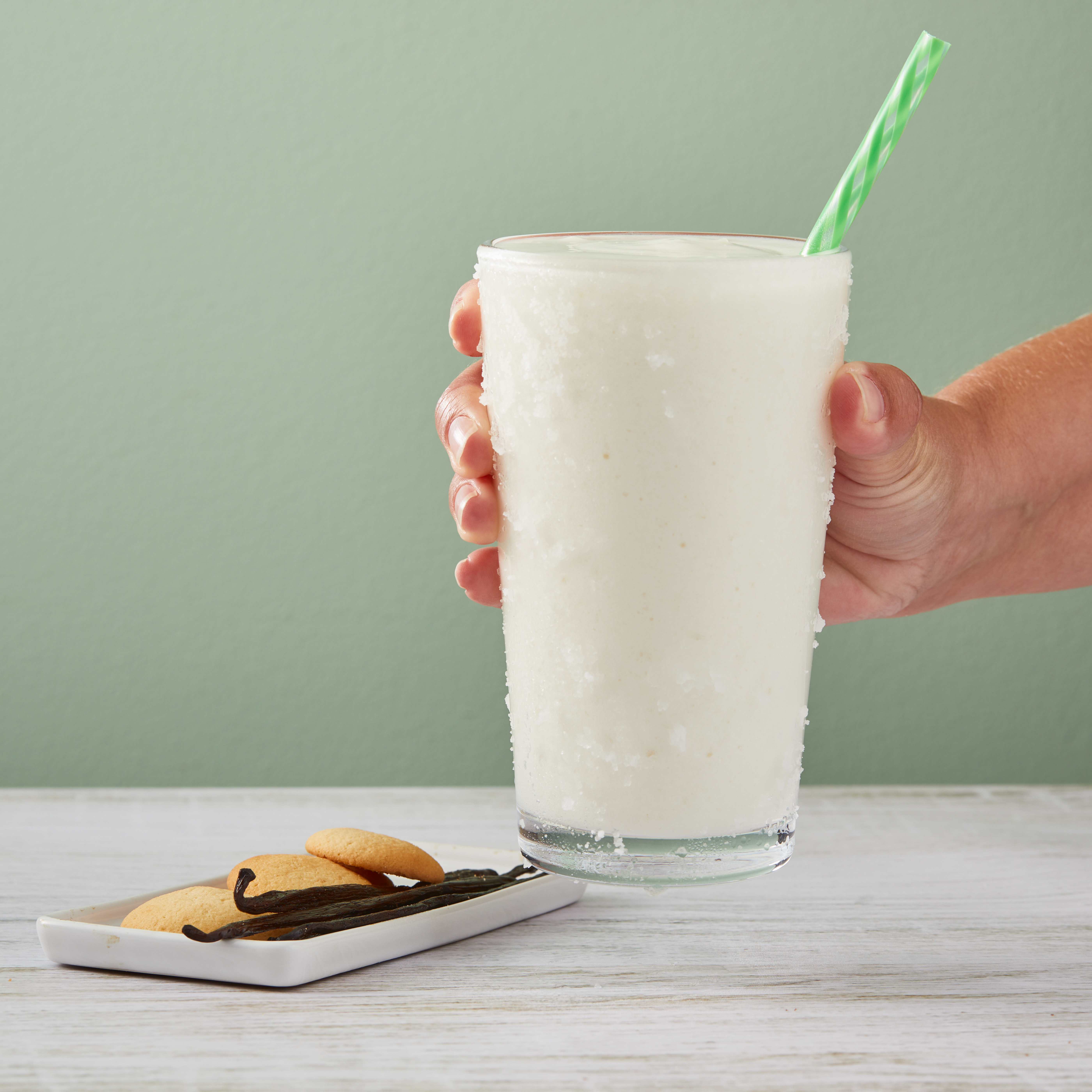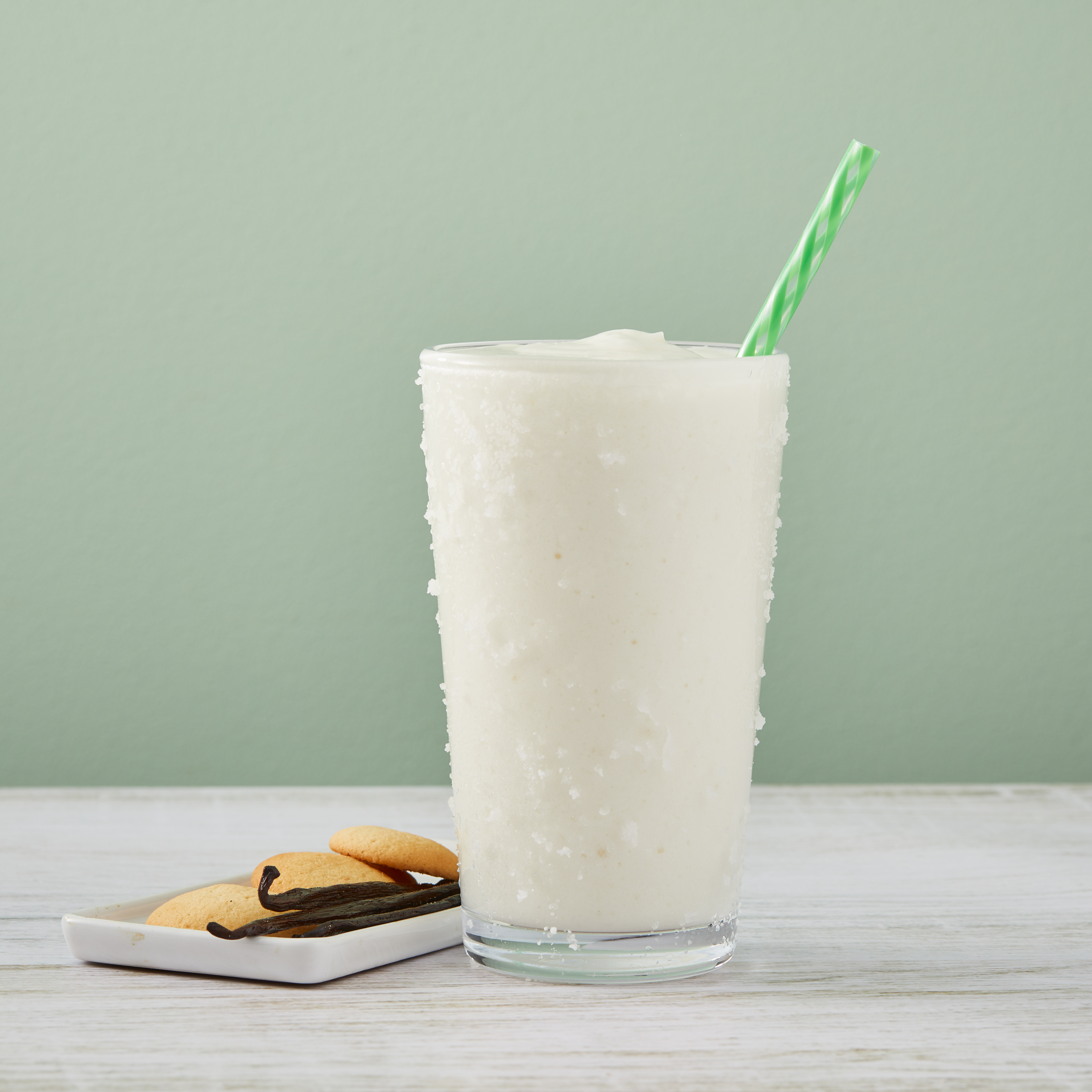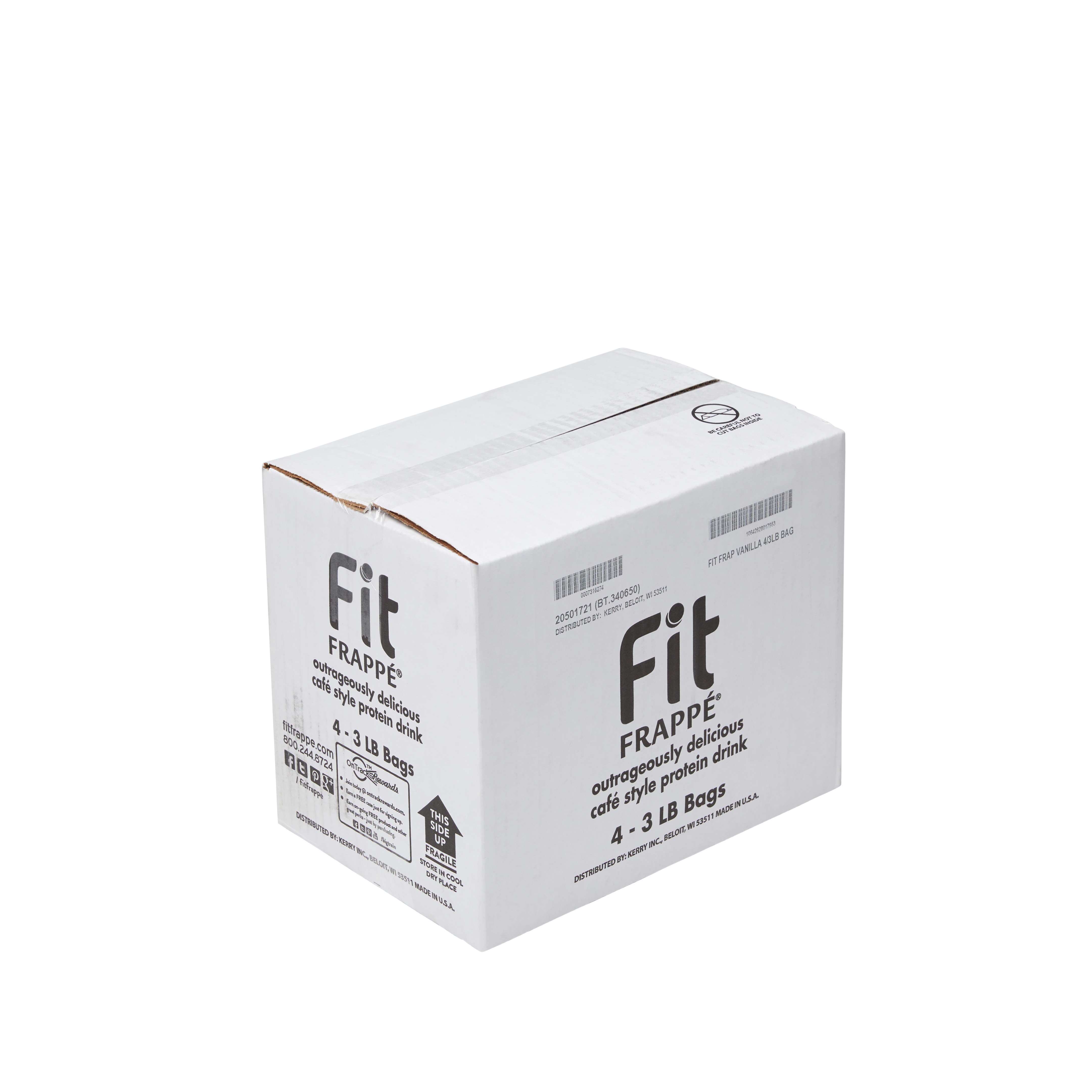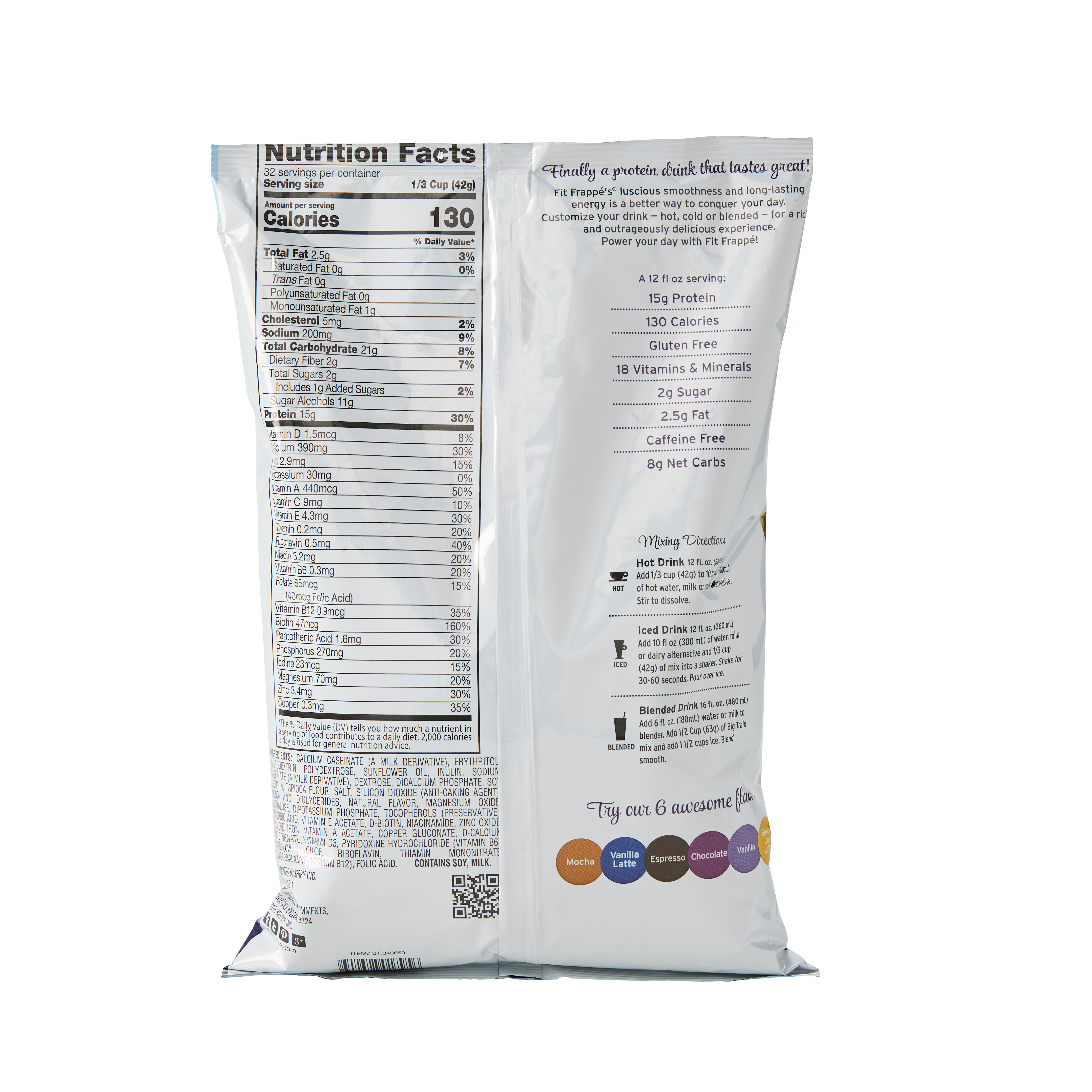 - Big Train Fit Frappe Vanilla Protein Frappe Mix combines sweet vanilla taste, vital nutrients and protein to satisfy for hours. We've carefully blended Fit Frappe with calcium caseinate, a slow-releasing protein your body can use throughout the day. Fit Frappe is loaded with 20 grams of protein, and contains only 130 calories and less than 1 gram of sugar per 16 oz. serving. Whether you drink it as an on-the-go meal replacement, filling snack or use as a base for your favorite smoothie recipe, with Fit Frappe, you can feel good about what you put in your body. Our powerhouse Fit Frappe Vanilla Protein Drink Mix is packed with vitamins, minerals and protein. It's also gluten-free and contains no added sugars. Serve hot, iced, or blended.