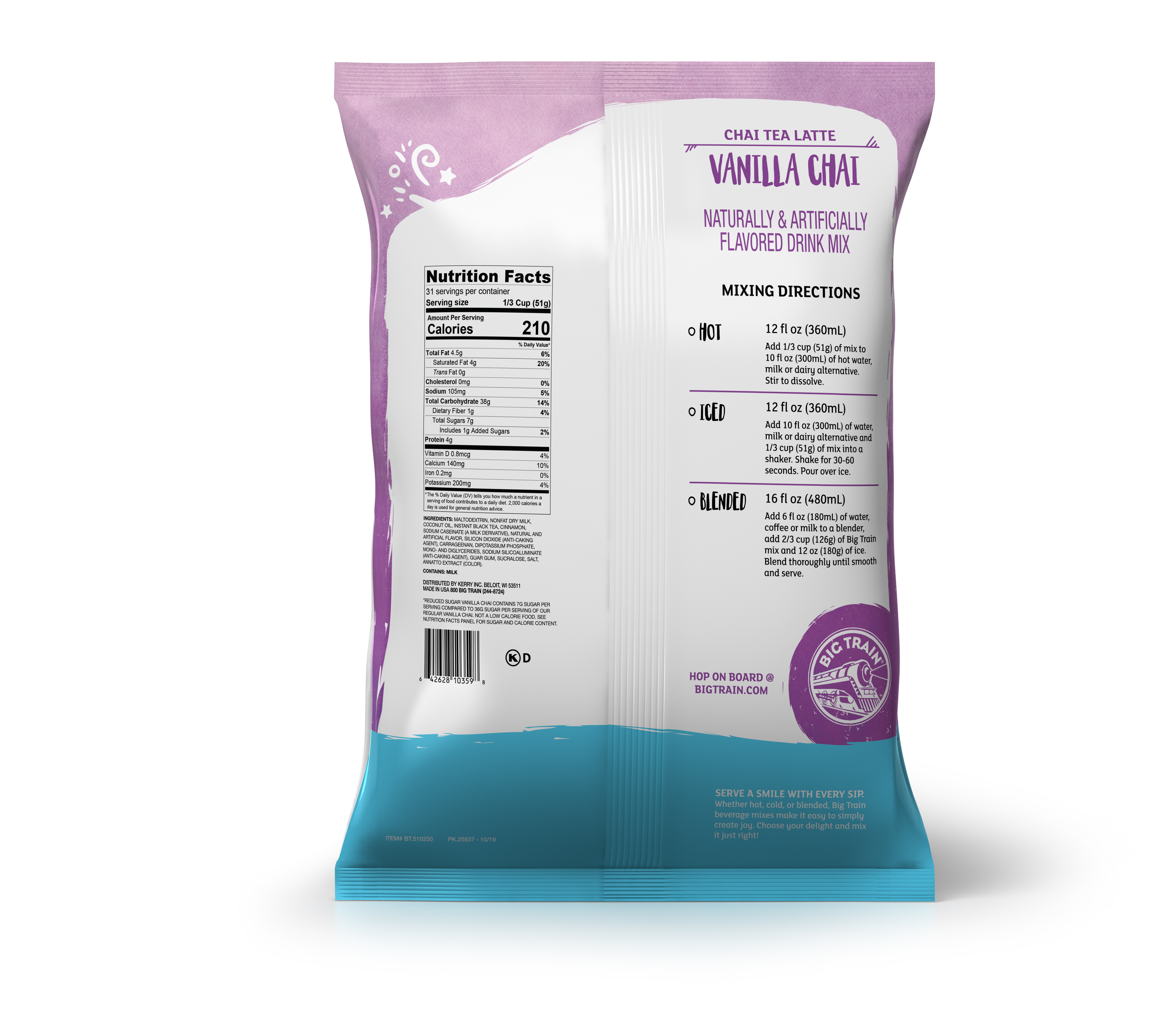- Like our original Big Train Vanilla Chai Tea Latte Mix, we infuse our mix with warming cinnamon and smooth vanilla for mellow flavor and a touch of spice, without added sugar!. Let our No Sugar Added Vanilla Chai Tea Latte Mix indulge your taste buds with a blend of exotic and familiar flavors that are never ordinary. Serve hot, over ice or blended for a classic frappe. Customers will keep coming back for drinks made with this sugar free chai mix.