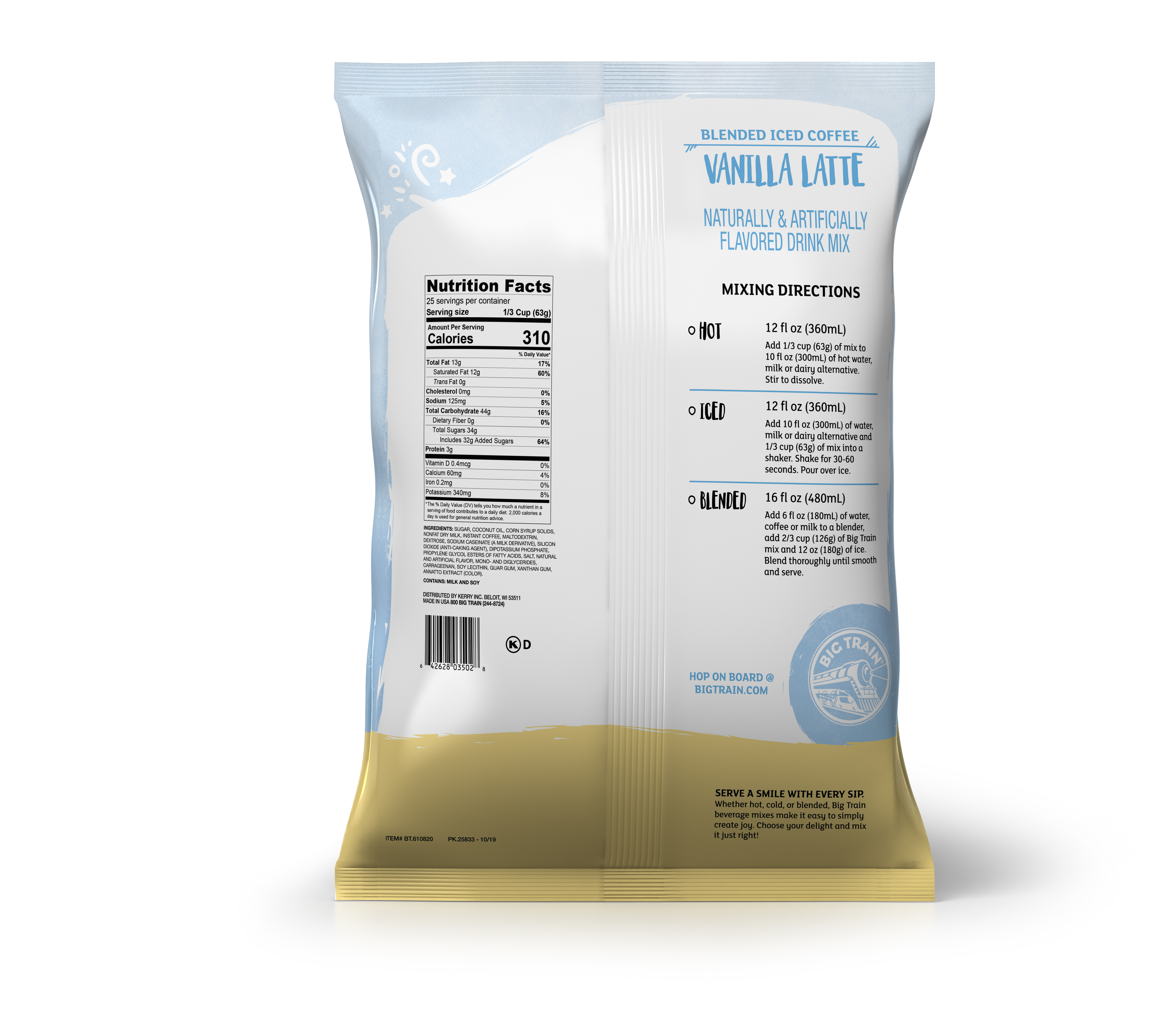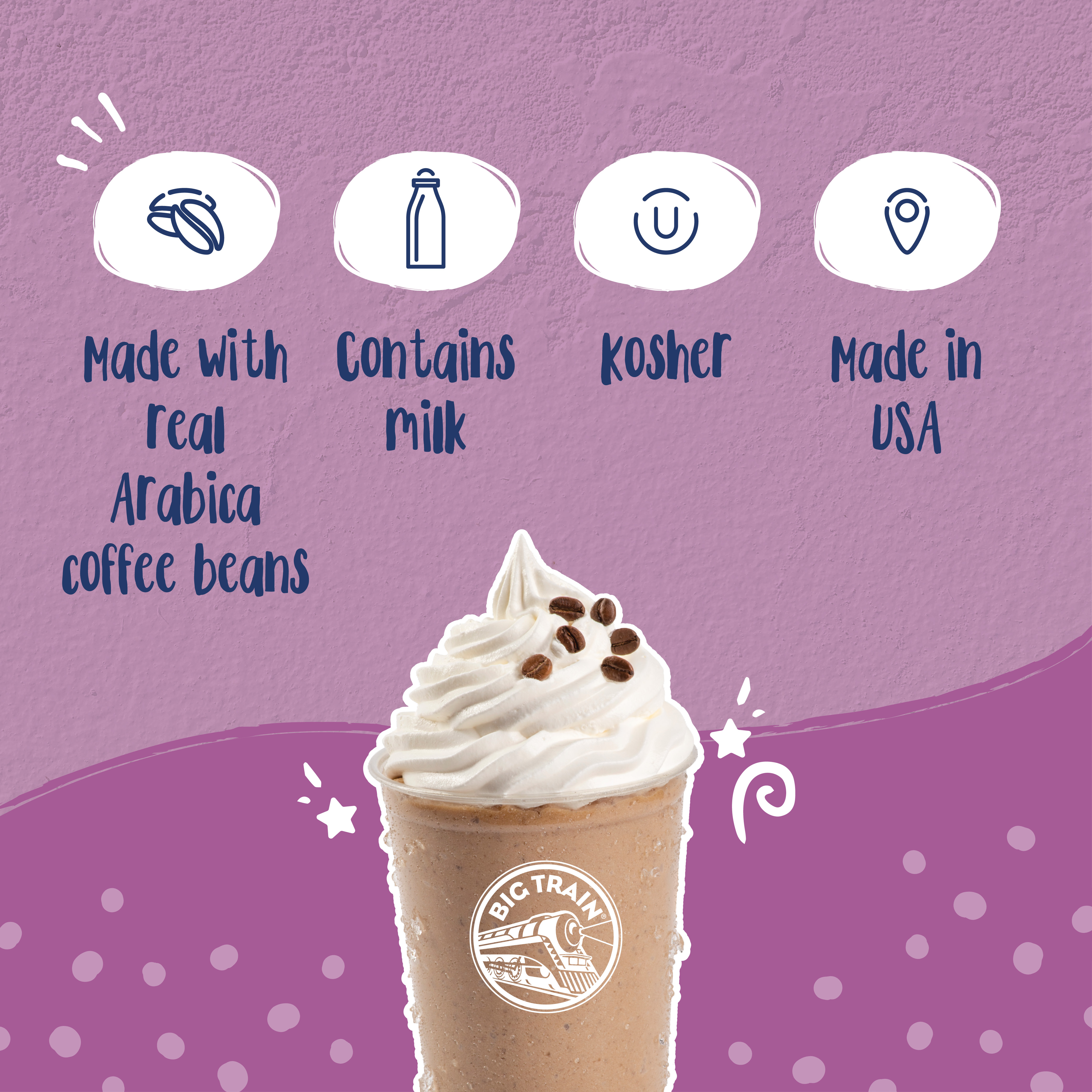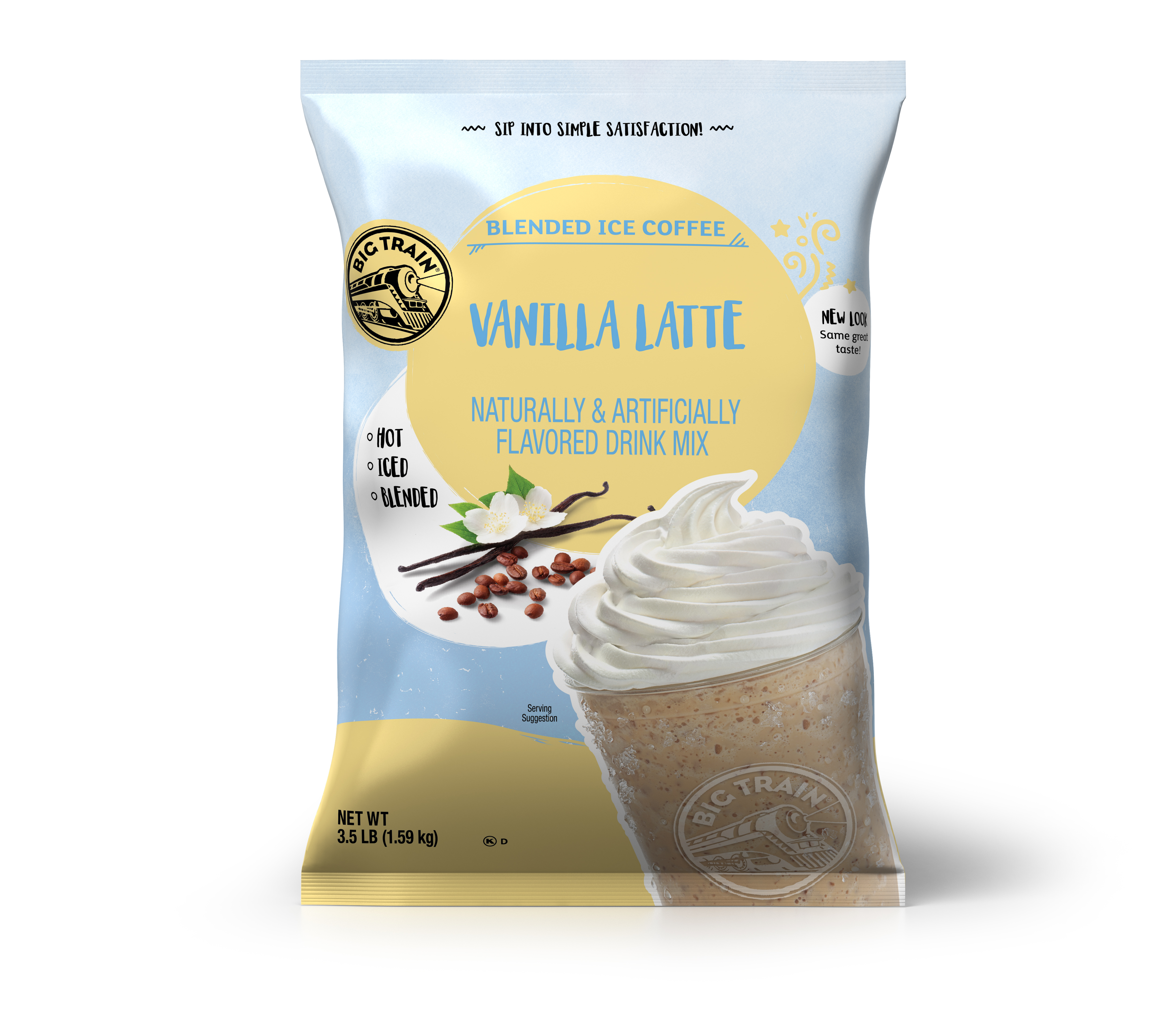 - Invigorate your senses and enjoy the sweet vanilla indulgence of Big Train's classic Vanilla Latte Blended Ice Coffee mix, perfect for coffee lovers who like a little bit of sweet and rich vanilla flavor. Our sweet, creamy drink mix refreshes with aromatic, full-bodied Arabica coffee and the exotic yet familiar flavor of Madagascar vanilla bean. Serve hot, over ice or blended for a classic frappe. Customers will keep coming back for drinks made with this Big Train frappe mix.