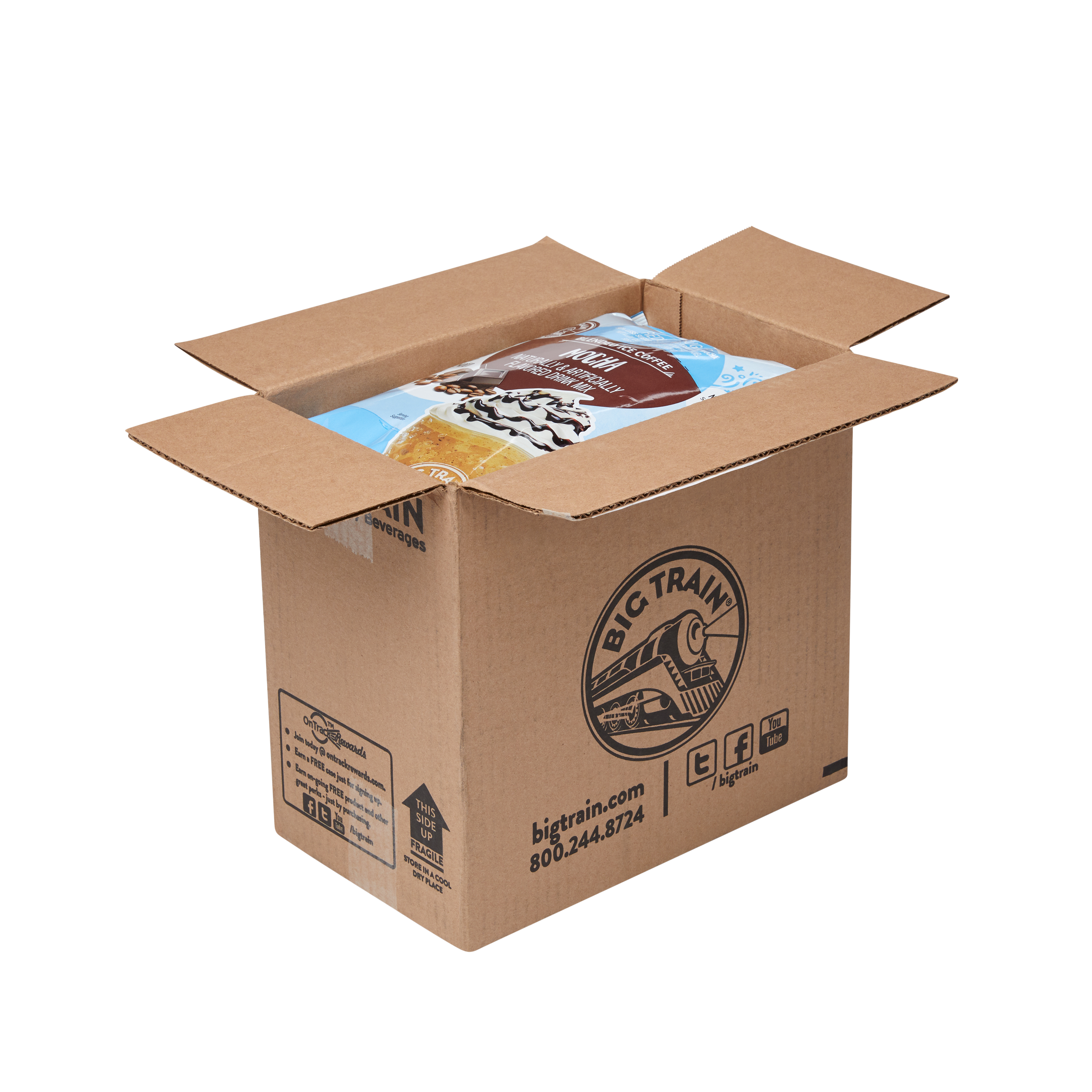 - Just like our original Big Train Mocha Blended Ice Coffee Frappe Mix, this rich-tasting, reduced sugar version delivers creamy, consistent texture. Hot or iced, this reduced sugar mocha mix is sure to please coffee lovers in search of something a little different. For a sweet twist, customize with add-ins like flavored sugar-free syrups. Our Reduced Sugar Mocha Blended Ice Coffee Mix is full of rich chocolate flavor. Serve, hot, iced or blend with ice for a delicious Big Train frappe.