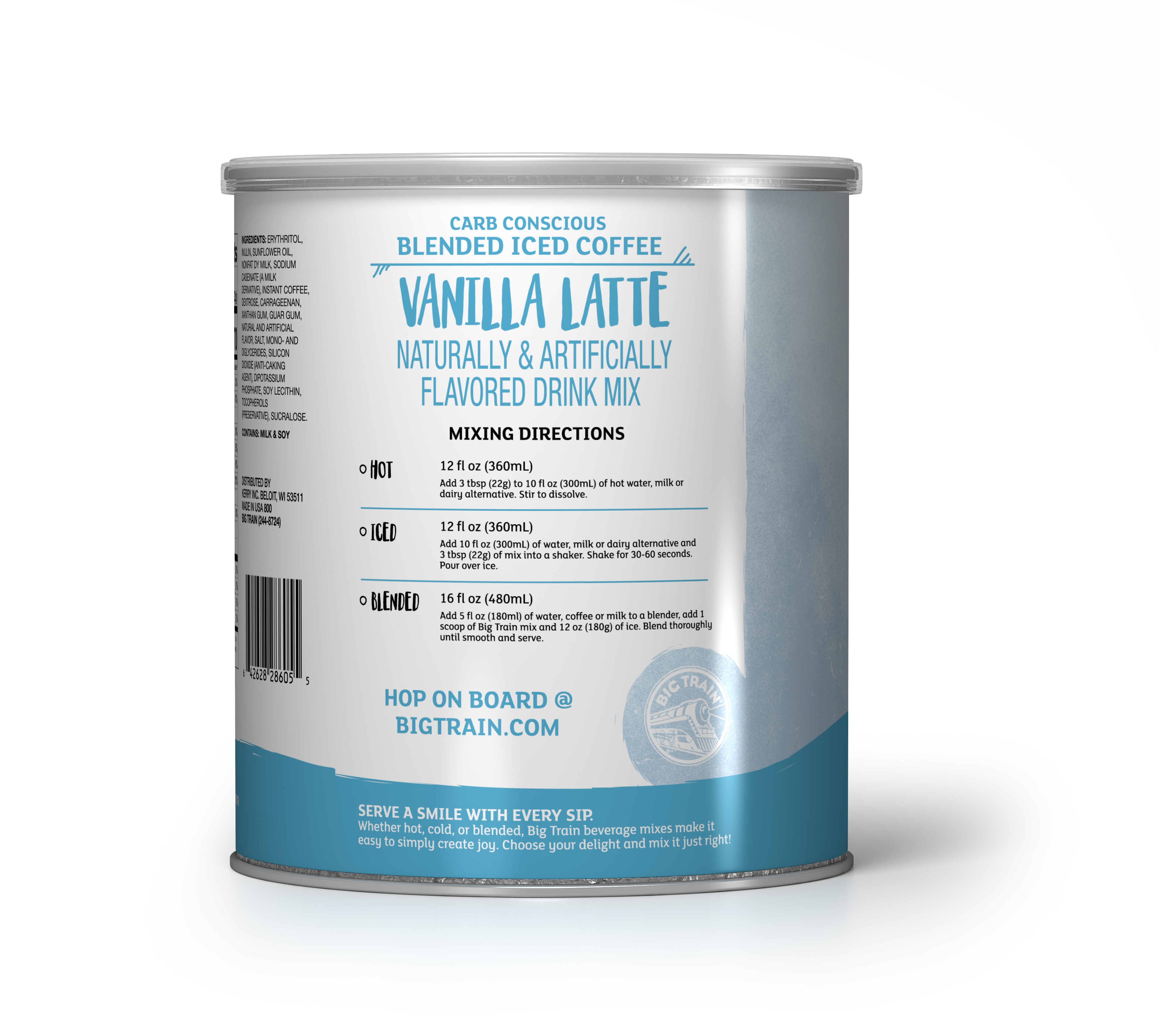 | Bullet 3 | Blend, Pour, Serve: Big Train mixes make it easy to serve up delicious drinks. From our just-add-water chai, to our blended crème and coffee frappes, Big Train provides quick to prepare beverage solutions for home kitchens, coffee shops, & restaurants. |