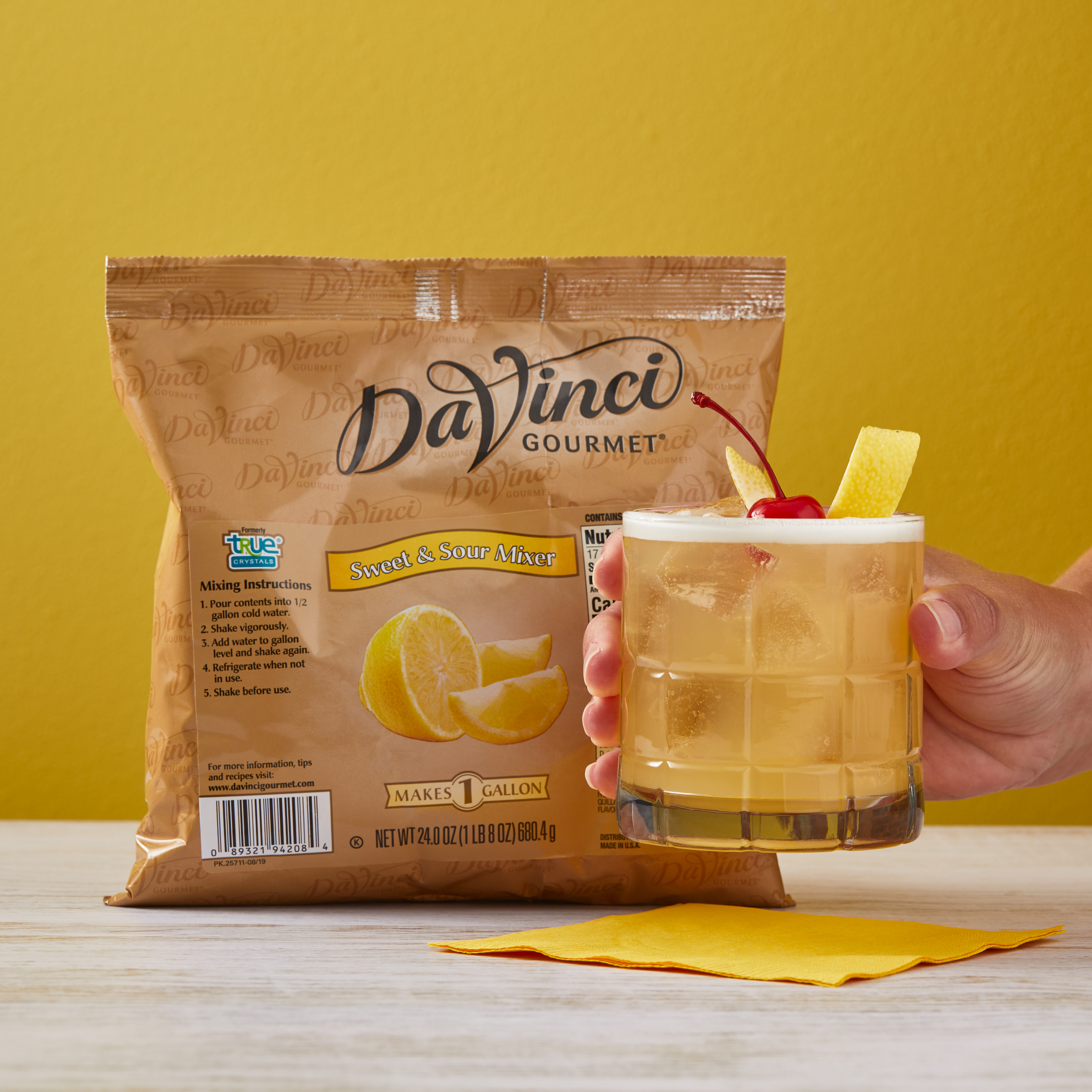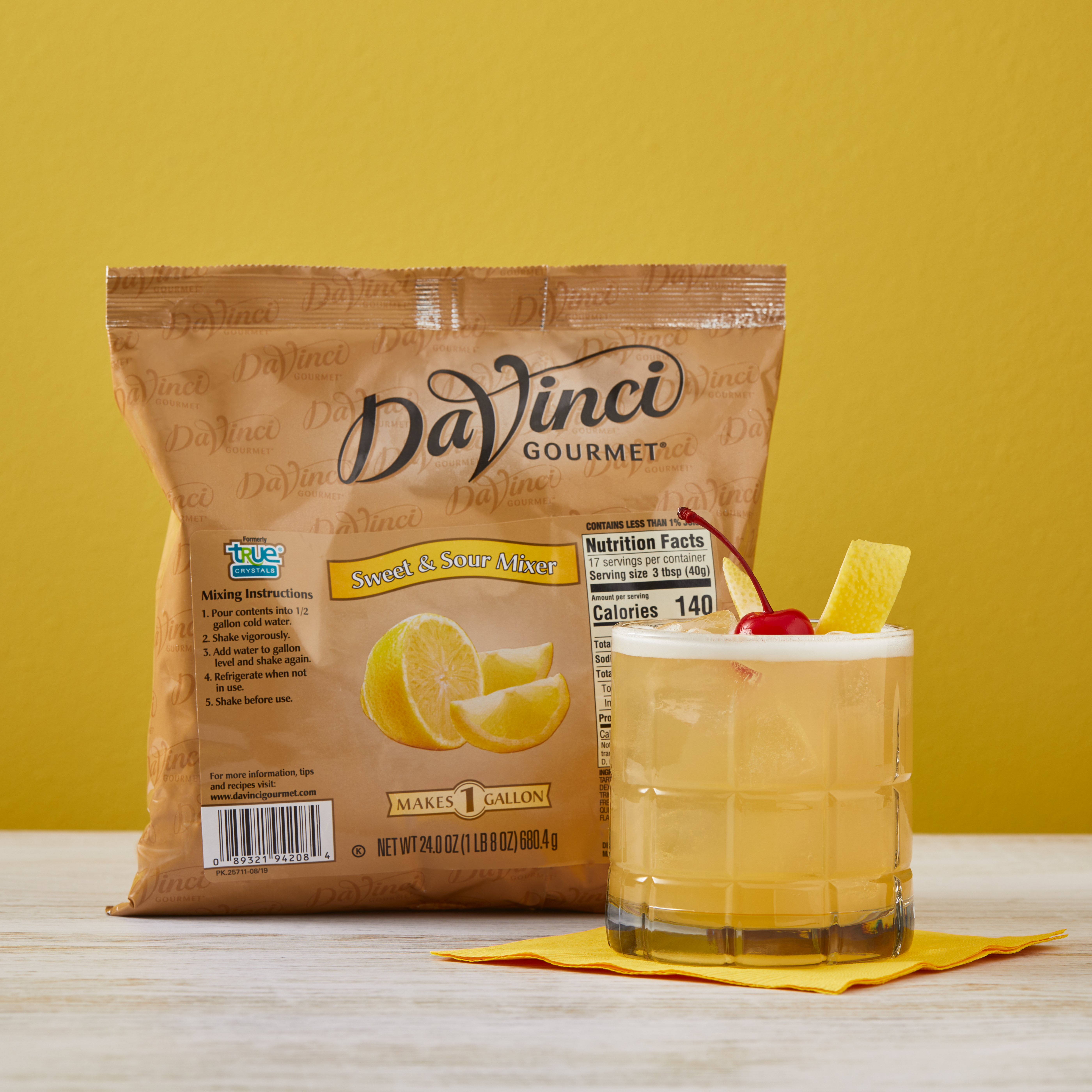 - Make a multitude of classic cocktails and mocktails the easy way without sacrificing flavor when you reach for this sweet and sour mix from DaVinci Gourmet. Keep our versatile sweet and sour mixer on hand to create delicious mocktails and cocktails for made-from-scratch taste without squeezing lemons. From Amaretto Sours to Mai Tais and beyond, our sweet-tart drink mix delivers fresh taste that’s easy to mix and store. Our Sweet and Sour Mixer is specially formulated with fast-dissolving crystals and high-quality ingredients mixologists and bartenders trust for creating consistently delicious beverages. This sweet and sour drink mix powder is fat-free and nonalcoholic. Our shelf-stable Sweet and Sour Mixer powder is available in a 24 oz. bulk bag.