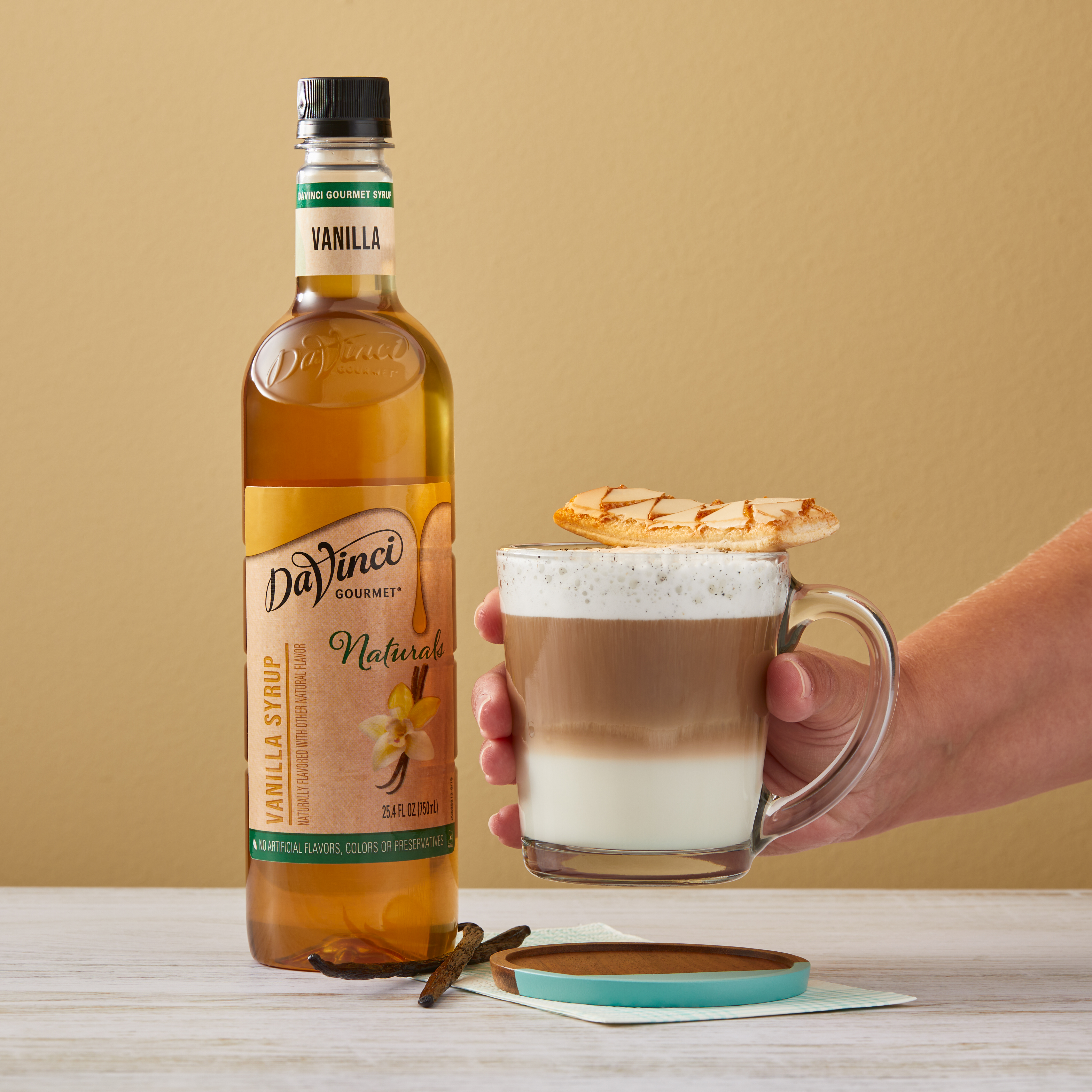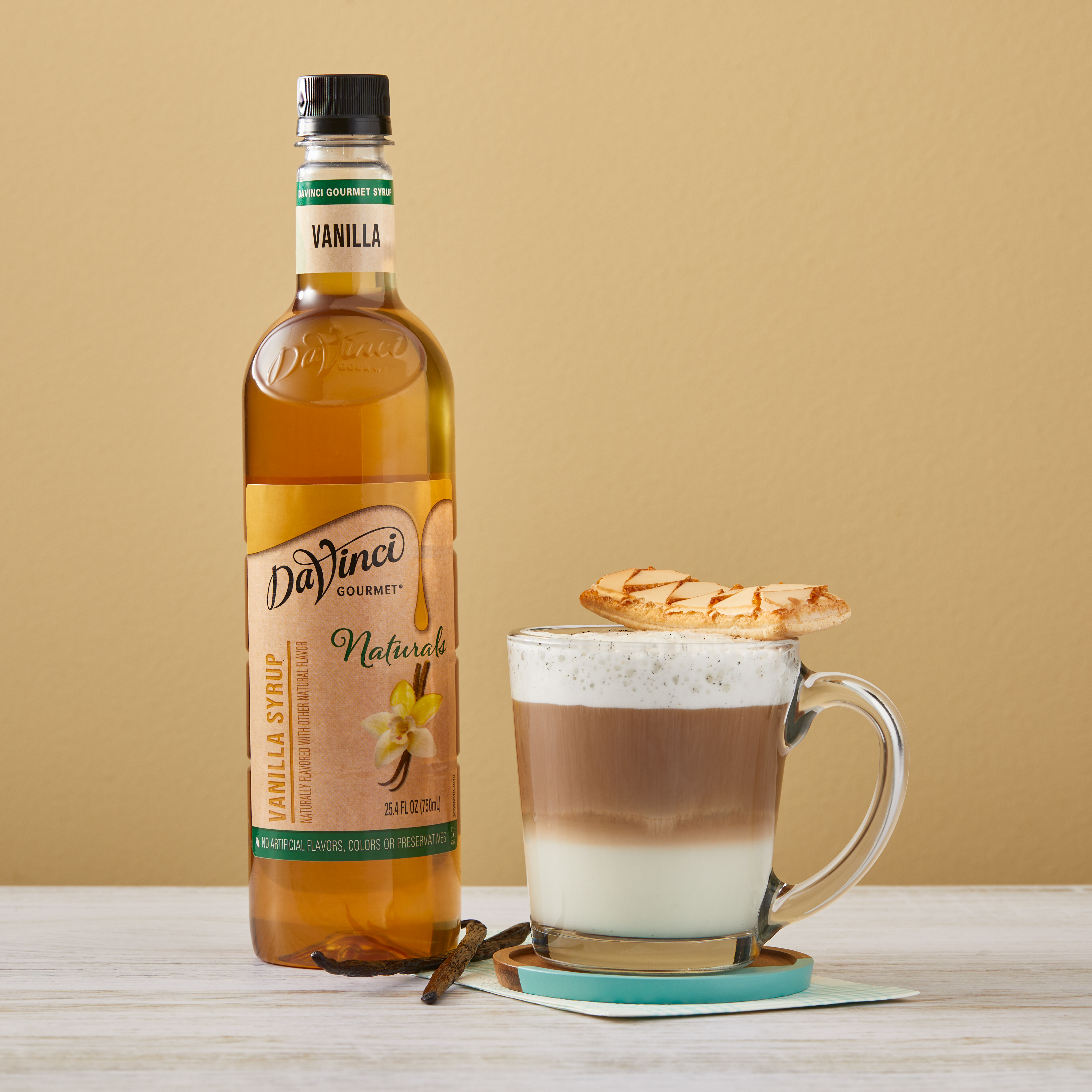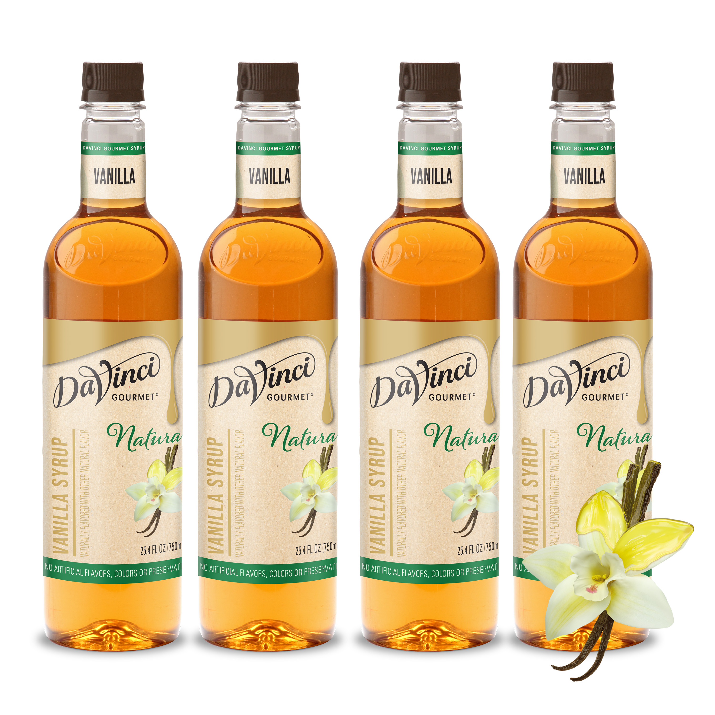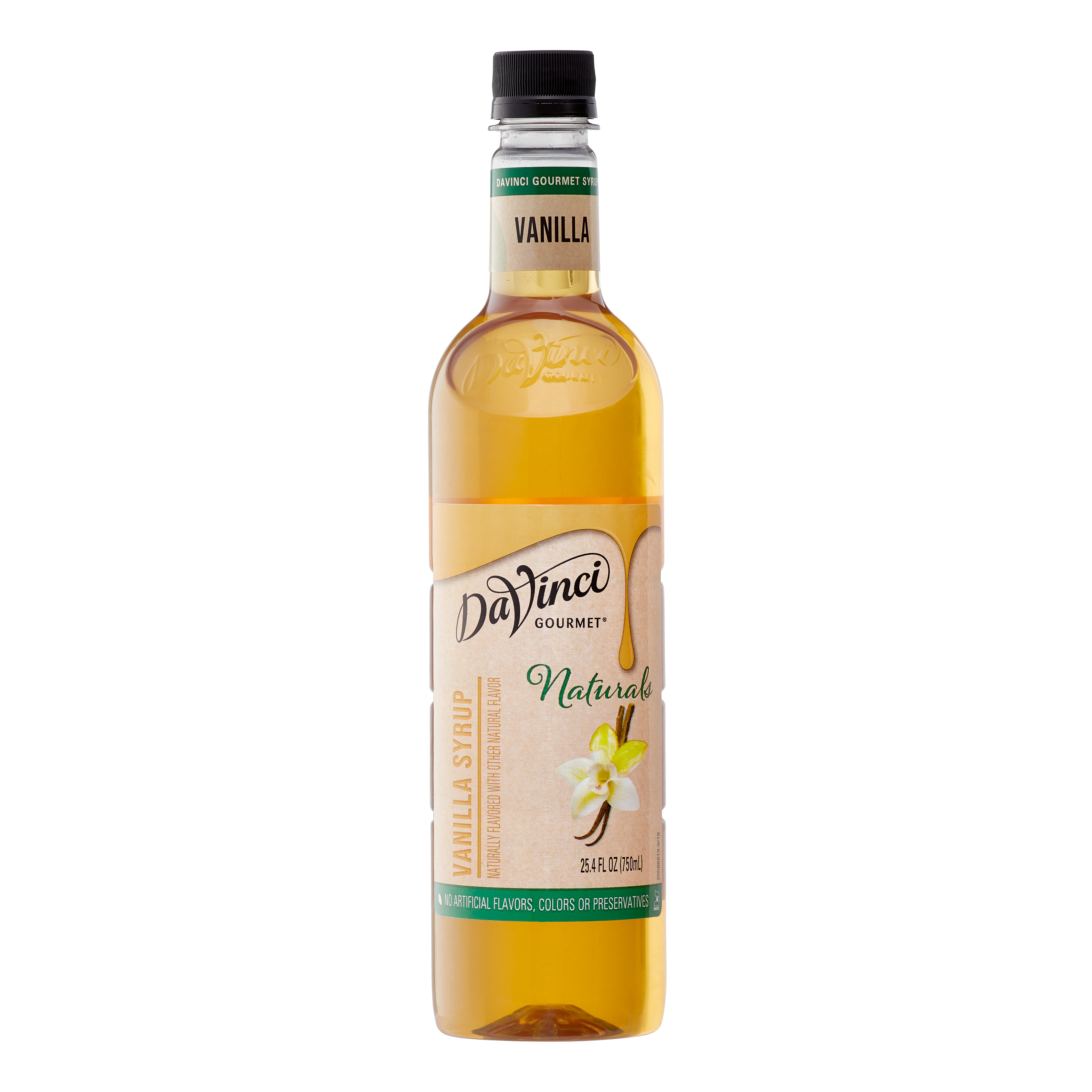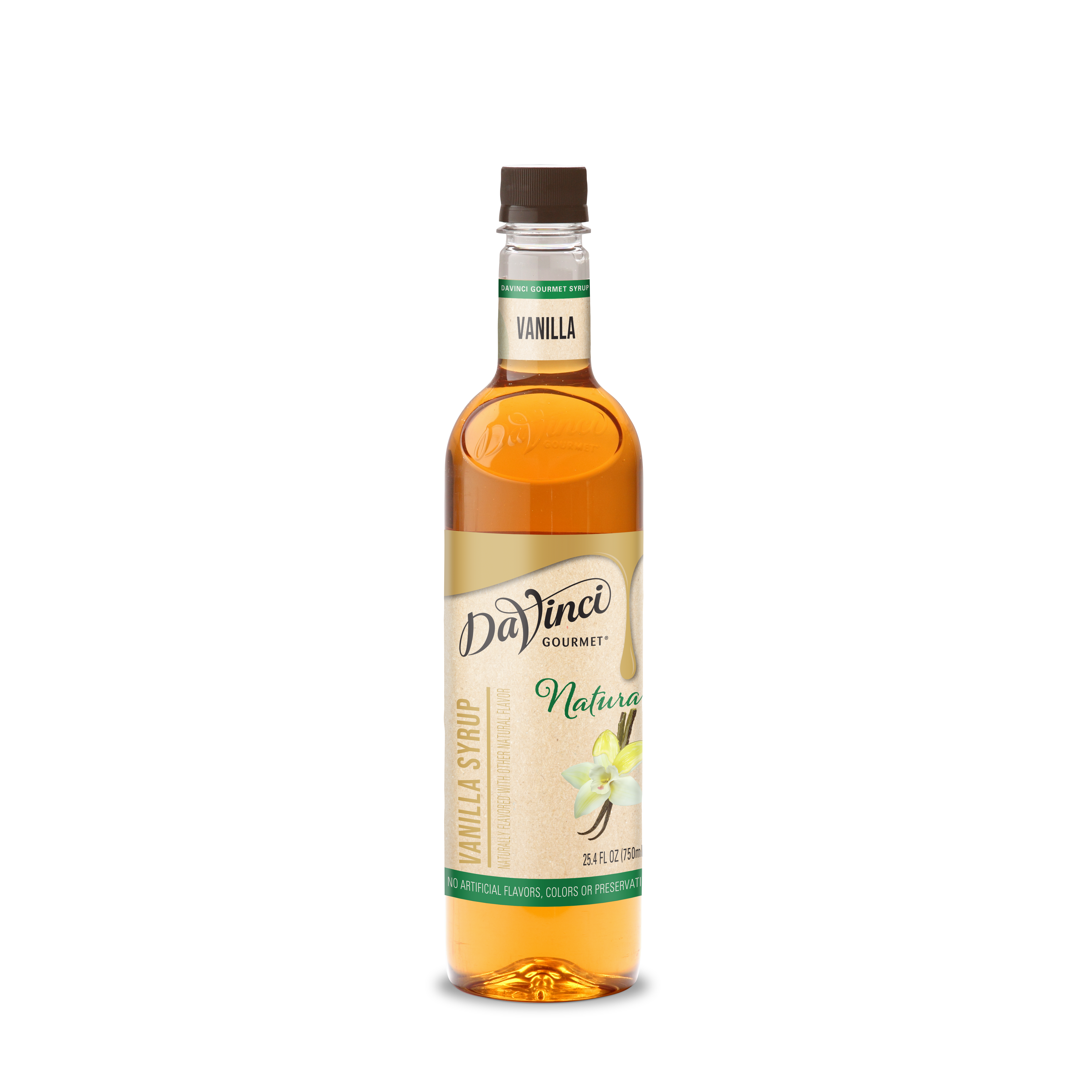 - Sweet, familiar, never plain, DaVinci Gourmet’s natural vanilla flavored syrup makes a delectable addition to nearly any flavor profile. At DaVinci Gourmet, we craft our Naturals line of syrups with only the highest-quality ingredients. We extract intense flavor from plump vanilla beans and sweeten it with pure cane sugar for unadulterated taste. Hot or cold, DaVinci Gourmet’s versatile vanilla flavored syrup pairs perfectly with a wide variety of beverage and culinary applications. Try this delicious syrup in coffee drinks or hot cocoa, or drizzle into milkshakes or on desserts for a sweet, aromatic addition. Or combine with syrups from our wide selection of Classic, Naturals and Fruit Innovations products to create unique custom flavors for all your signature drinks. Our Naturals Vanilla syrup contains no artificial colors, flavors or preservatives. This DaVinci Gourmet Naturals flavored syrup is available in a 750mL plastic bottle.