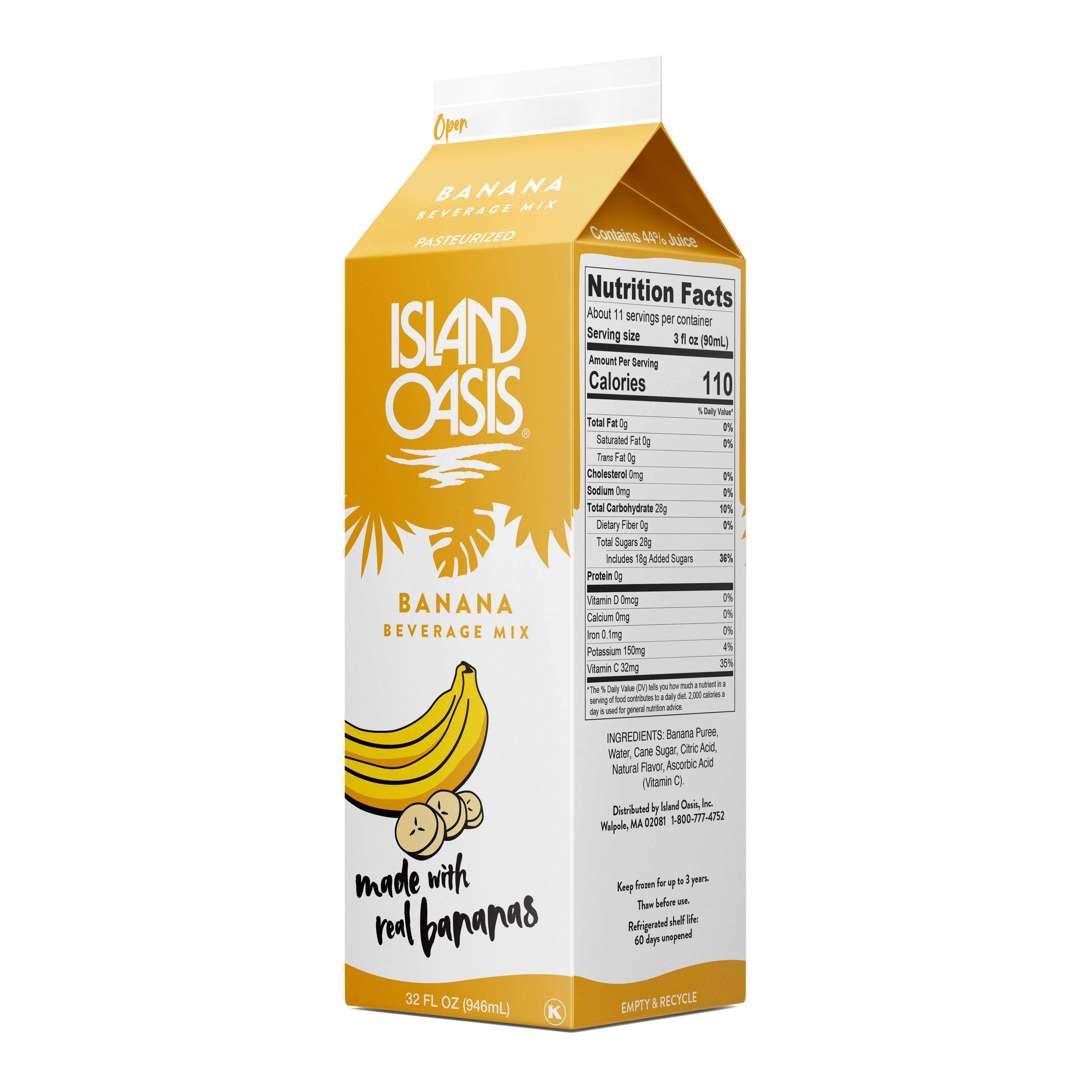 - Pucker up for the sweet-tart flavor in this natural frozen Lemonade Mix from Island Oasis! At Island Oasis, we know the best-tasting beverages are made with the finest ingredients, free of fillers and fluff. We make our great-tasting premium Lemonade Mix pure and simple, with a blend of fresh-tasting lemon and orange juices. Then we enhance it with a dose of real sugar for balanced flavor. For an extra boost, we fortify it with enough vitamin C to meet 100% of the recommended daily value in just one serving. Try our mix for lemonade made super easy. Just thaw in the fridge and experience fresh-squeezed taste without the hassle. From frozen lemonades to lemon-based cocktails and everything in between, our mix helps make citrusy beverages in a flash. For a classic frozen lemonade, blend our tangy mix with ice. Or combine with another premium frozen Island Oasis mix to create a custom fruity lemonade flavor. No matter how you choose to serve it or sip it, our mix keeps fresh lemony taste within easy reach. This gluten-free, natural Island Oasis Lemonade Mix contains no artificial flavors, colors or preservatives, high fructose corn syrup, or trans fats. Kosher certified. Island Oasis Lemonade Mix ships frozen and is available in 1 quart cartons. Each carton makes 5 16 oz. smoothie servings or 8 12 oz. cocktail servings .