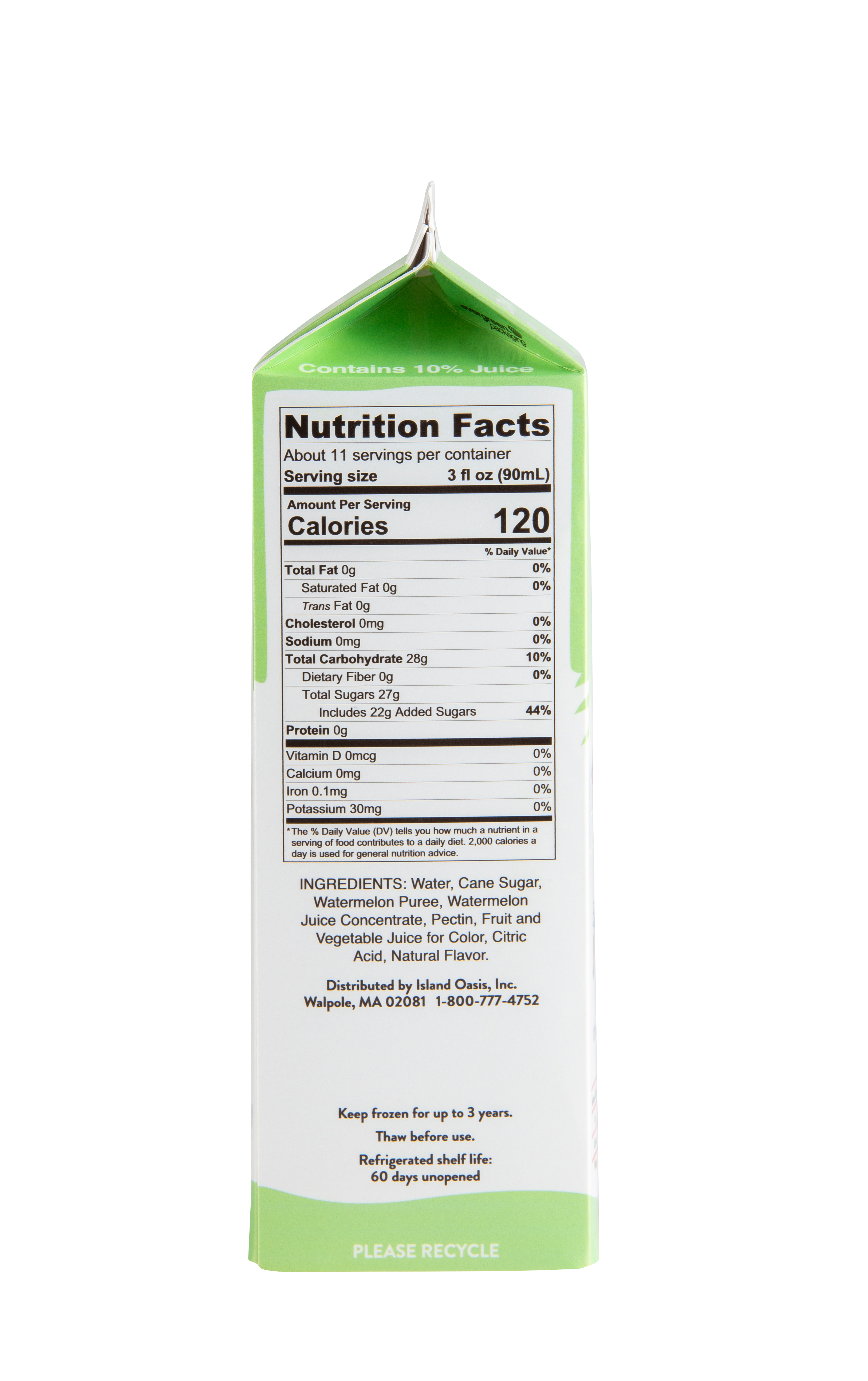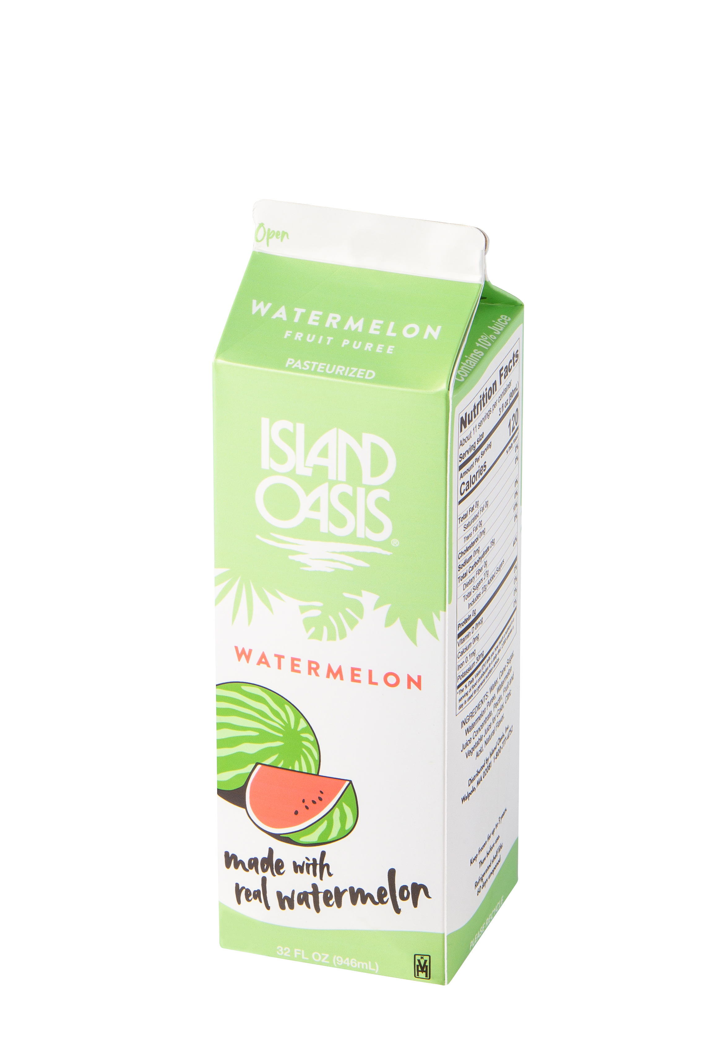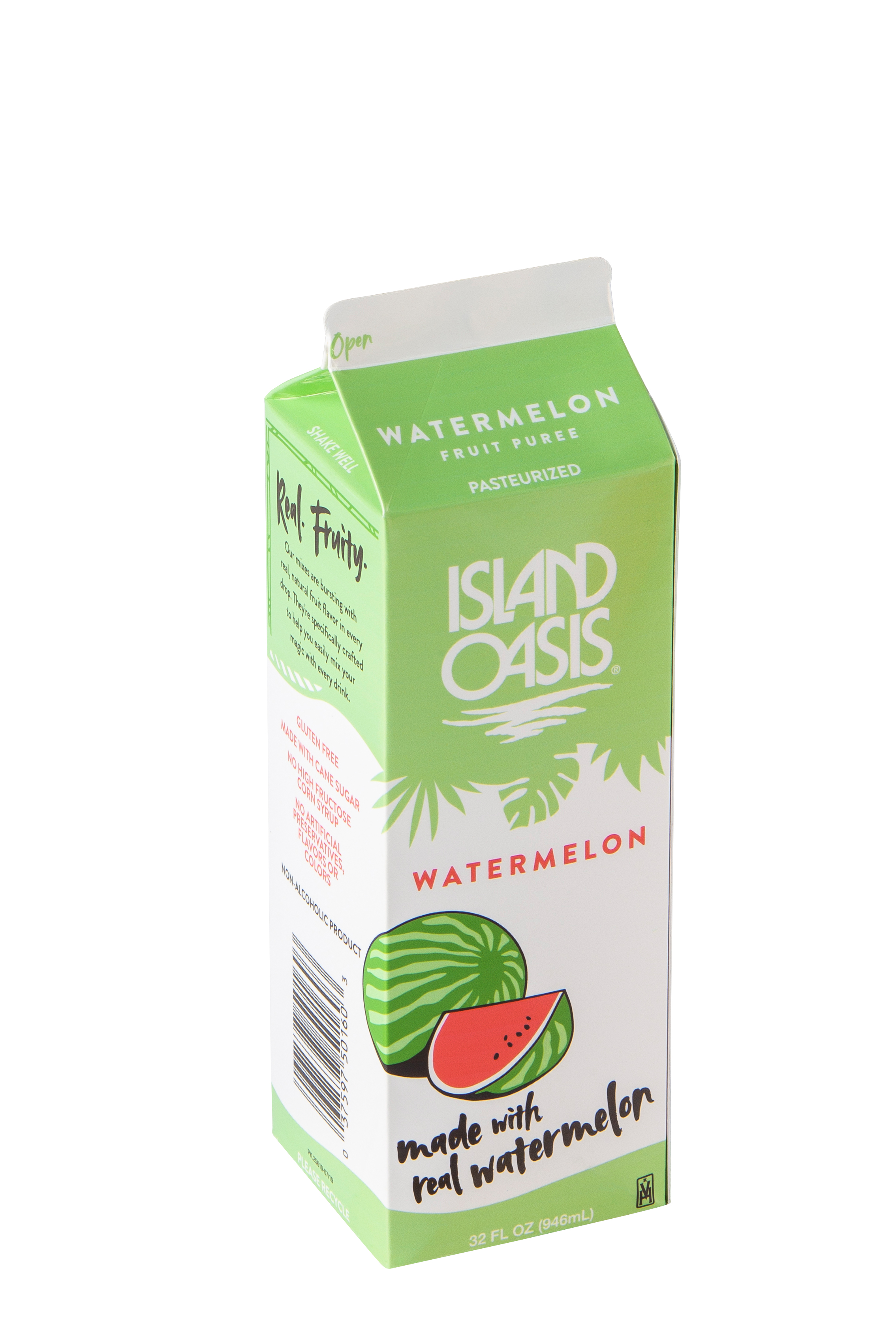 - Enjoy the farm fresh Island Oasis® new Watermelon flavor. The product is gluten free, has no artificial flavors or high fructose corn syrup, includes less added sugar, and is the first such frozen product in the foodservice industry. With its versatile flavor and formulation, Watermelon extends seamlessly to on the rocks applications, such as cocktails and aguas frescas, allowing for the penetration of non-commercial accounts such as Colleges and Universities, while also continuing the Island Oasis tradition of flavors that create great tasting smoothies and frozen cocktails. Island Oasis Watermelon ships frozen and is available in 1 quart cartons. Each carton makes 5 16 oz. smoothie servings or 8 12 oz. cocktail servings.